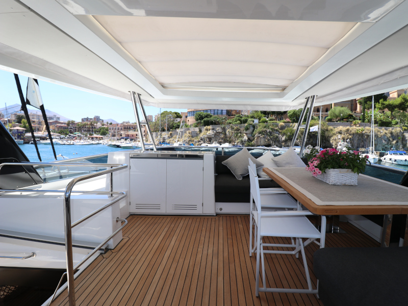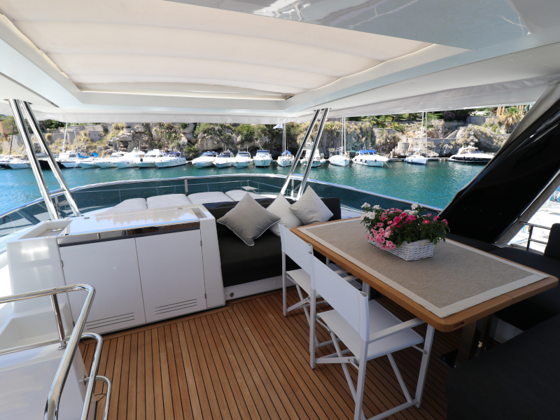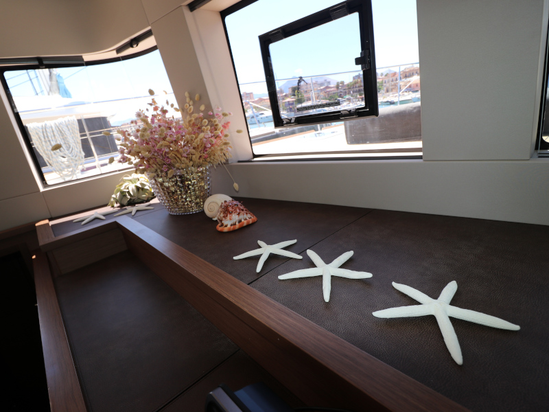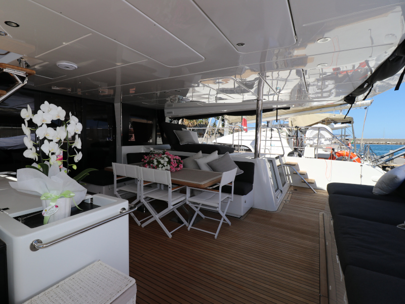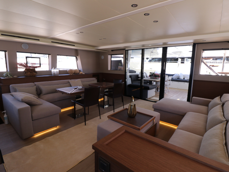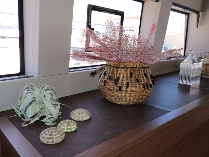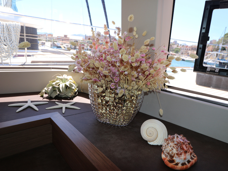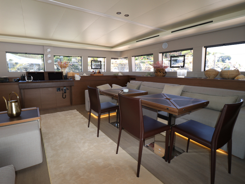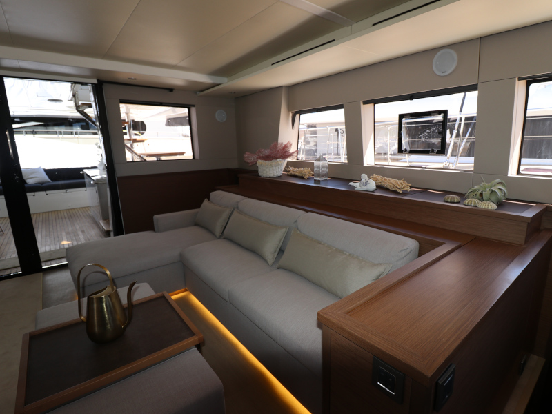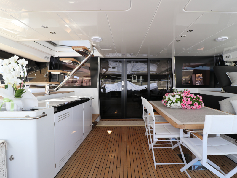 | Inside | Eiswürfelmaschine, Kaffeemaschine, Klimaanlage (ohne Landstrombedarf), Pantryausstattung, TV, USB Steckdosen in den Kabinen, Waschmaschine mit Trockner, Watermaker, Weinkühlschrank |