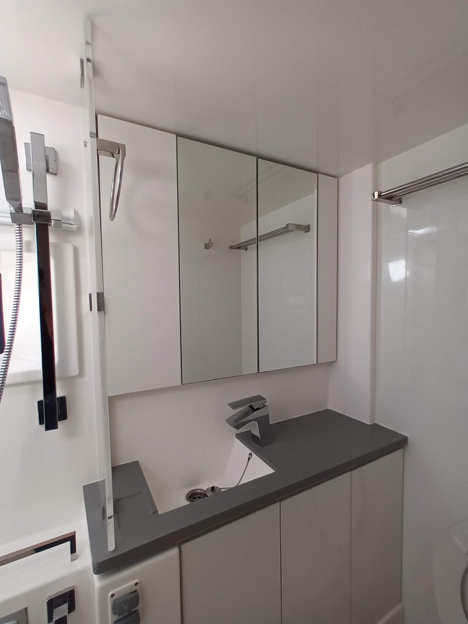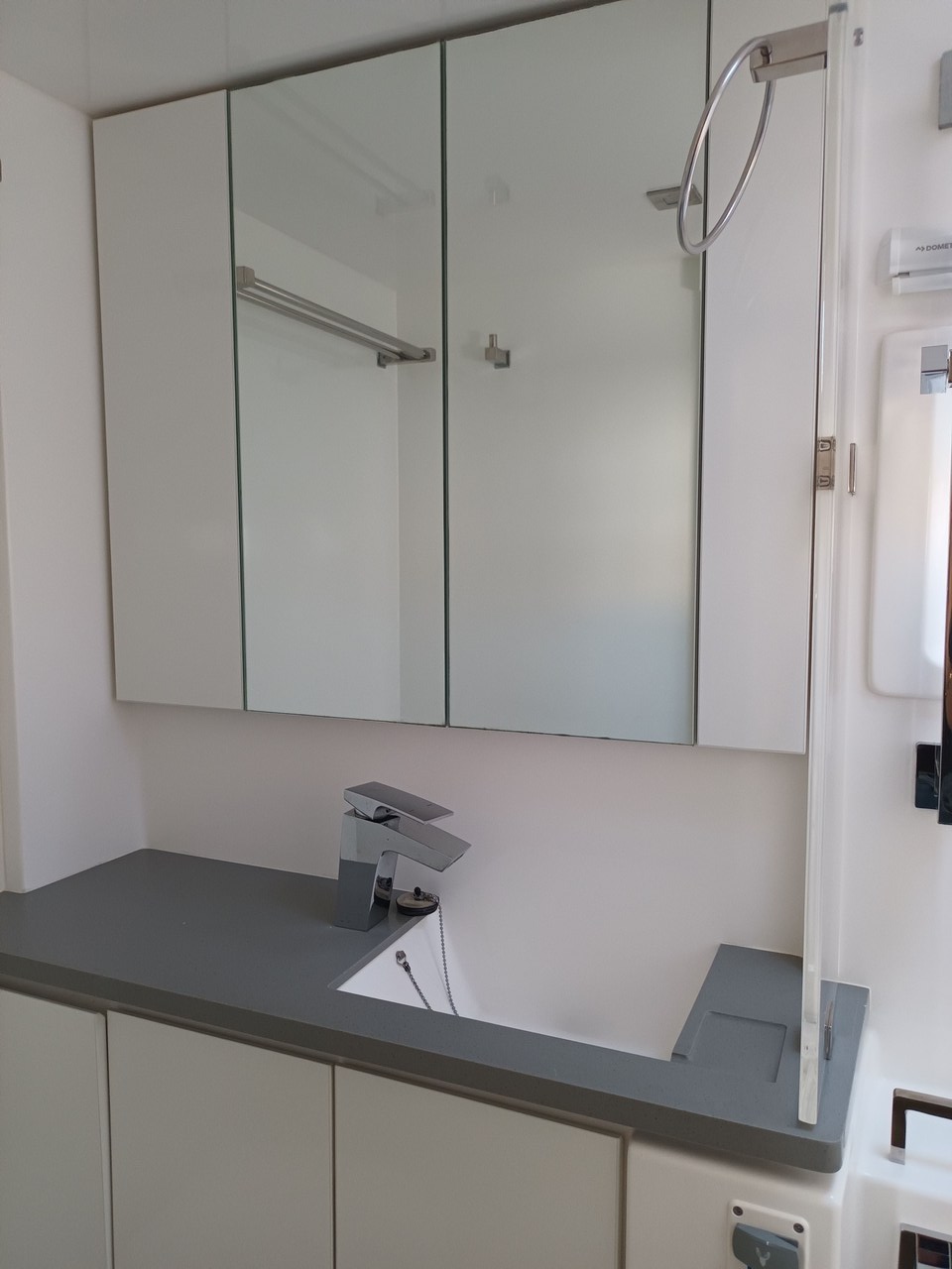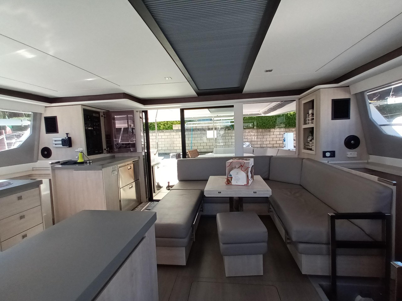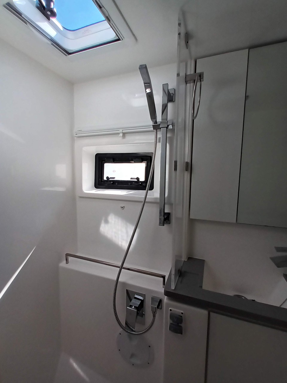 | Inside | Borduhr, CD-Player, Gasherd mit Backofen, Generator, Inverter 12V/220V, Kaffeemaschine, Klimaanlage (ohne Landstrombedarf), Kühlschrank, Pantryausstattung, Salontisch absenkbar, Trichter, Warmwasser, Watermaker |