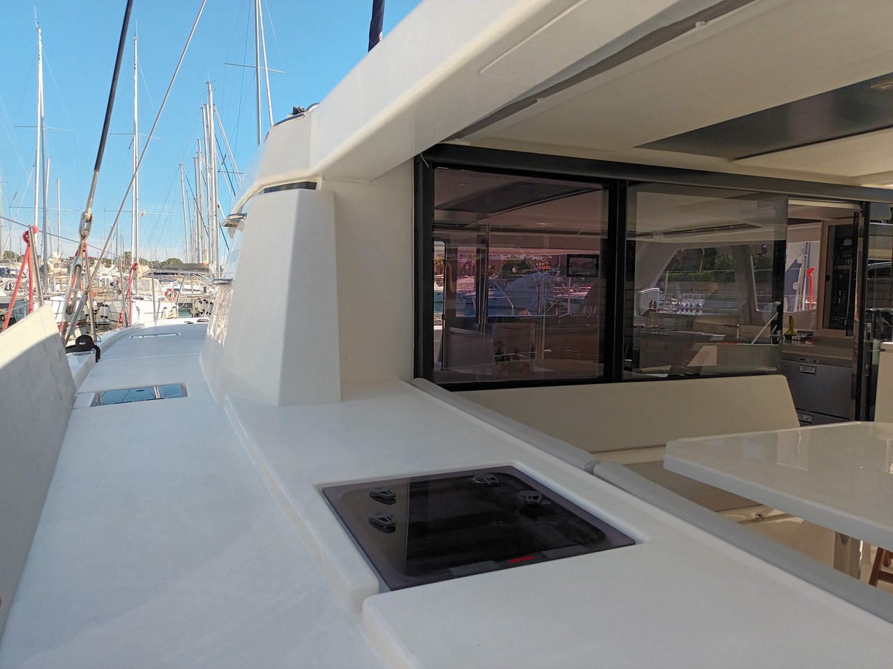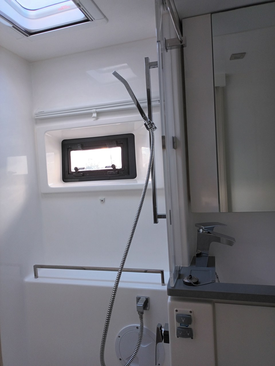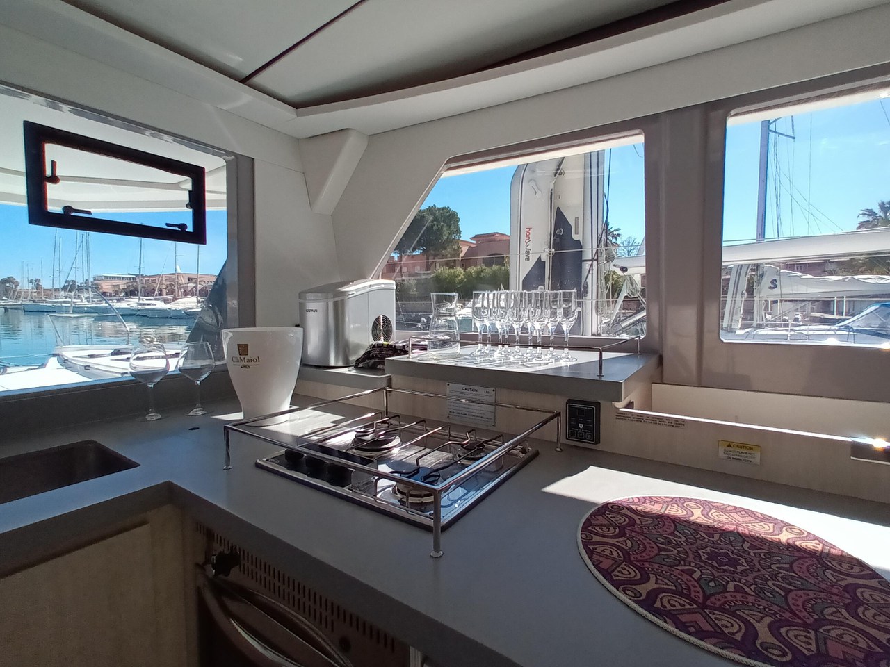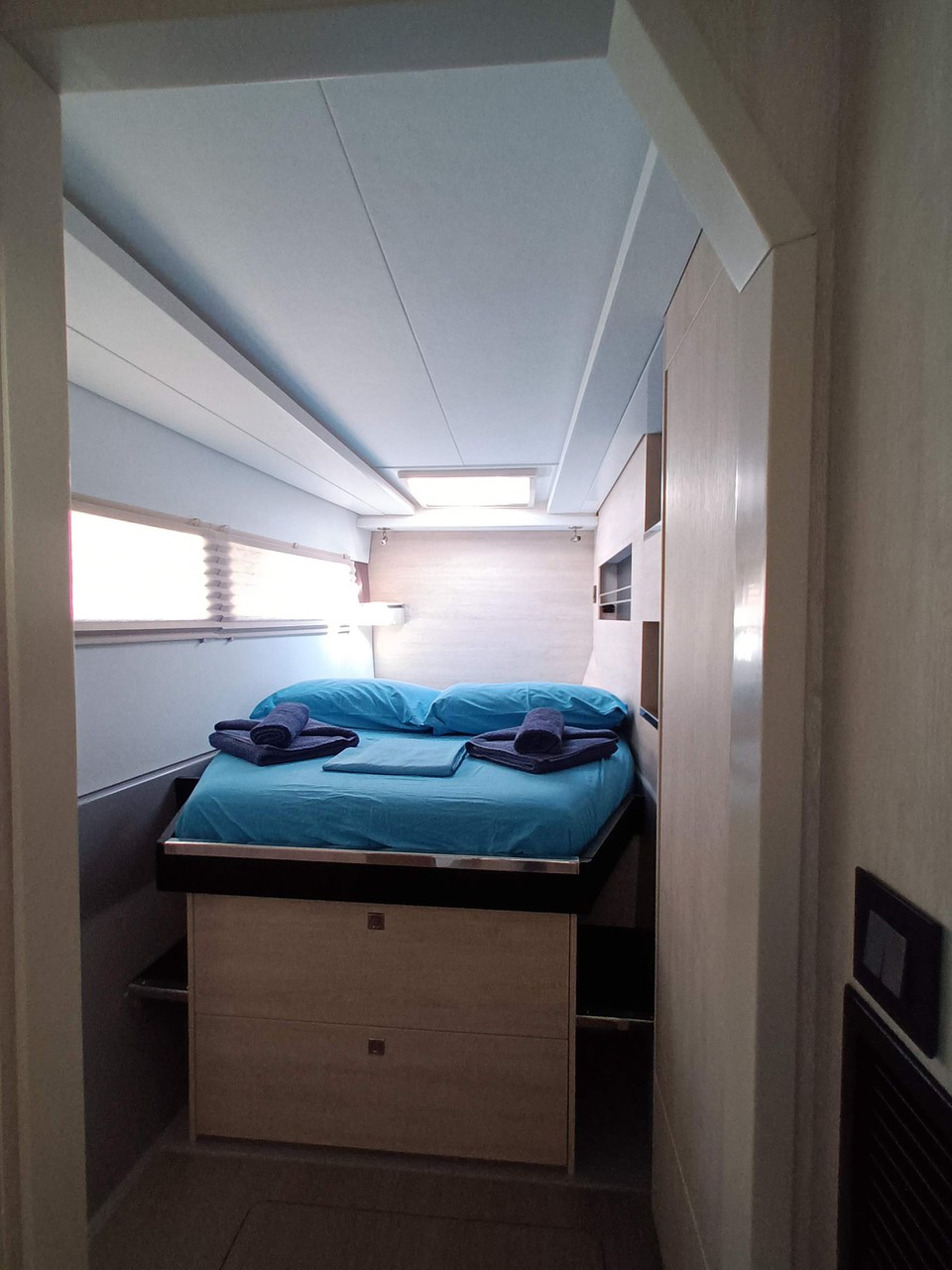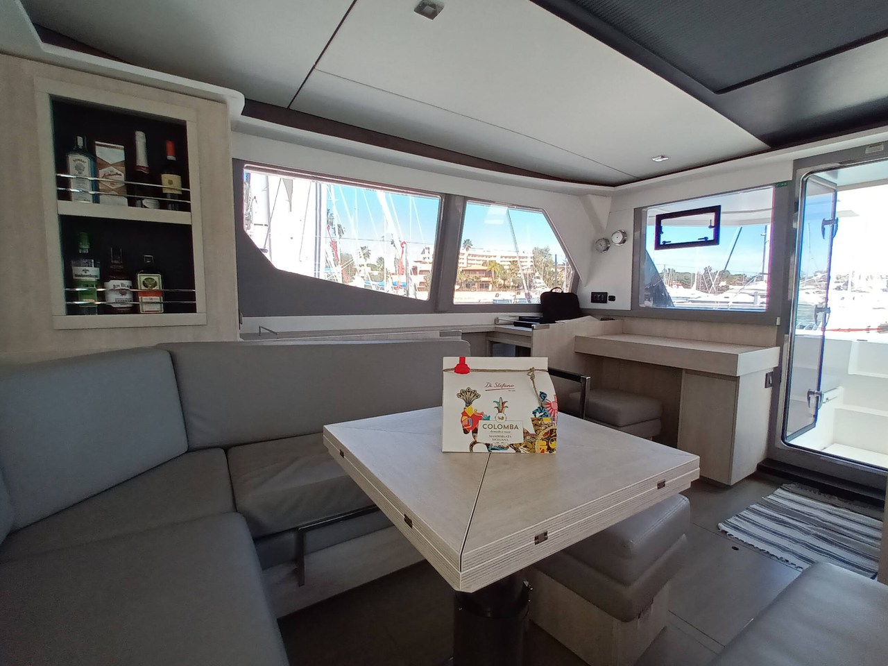 | Inside | Borduhr, CD-Player, Gasherd mit Backofen, Generator, Inverter 12V/220V, Kaffeemaschine, Klimaanlage (ohne Landstrombedarf), Kühlschrank, Pantryausstattung, Salontisch absenkbar, Trichter, Warmwasser, Watermaker |