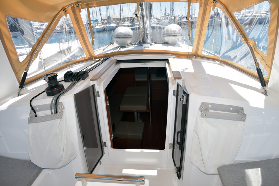 | Outside | Badeleiter, Biminitop, Cockpitdusche, Cockpitlautsprecher, Cockpitpolster, Cockpittisch, elektr. Ankerwinsch, Selbstholende Winschen, Sprayhood |