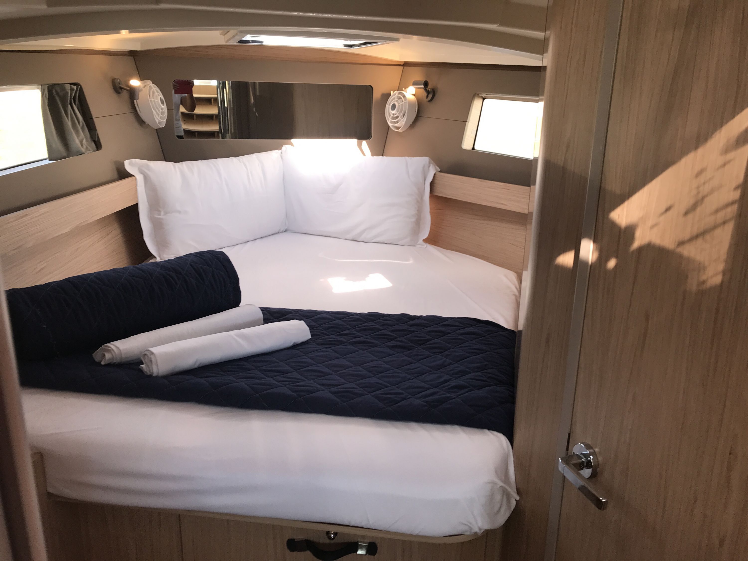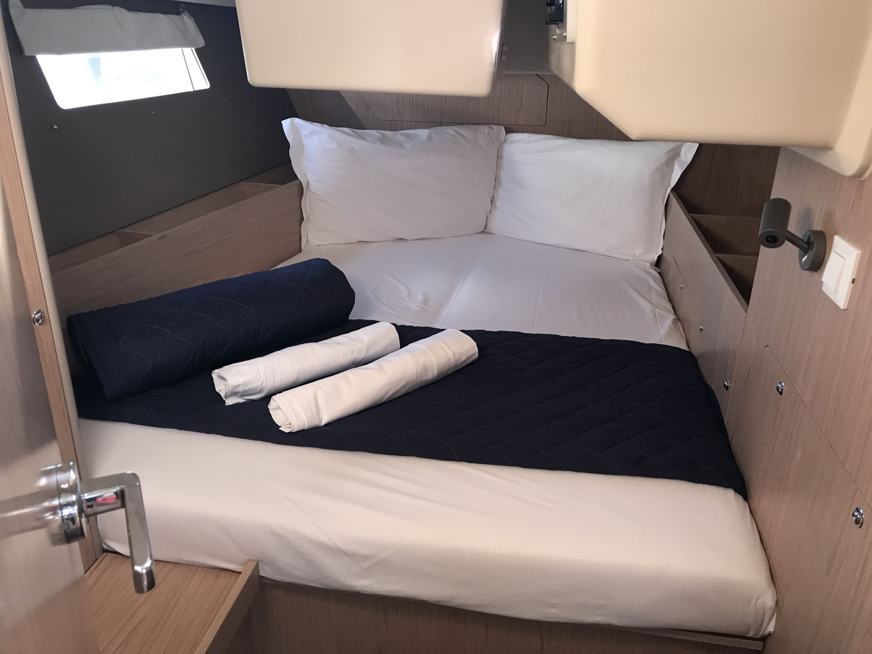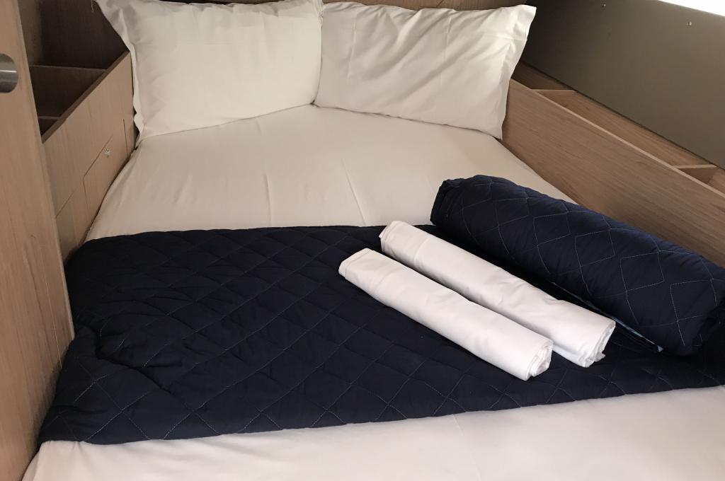 | Inside | Backofen, Inverter 12V/220V, Landstromkabel, Mikrowelle, Mokkakanne, Pantryausstattung, Radio, Salontisch absenkbar, USB Steckdosen in den Kabinen, Ventilator, Ventilatoren in Kabinen, Warmwasser, WC (elektr.) |