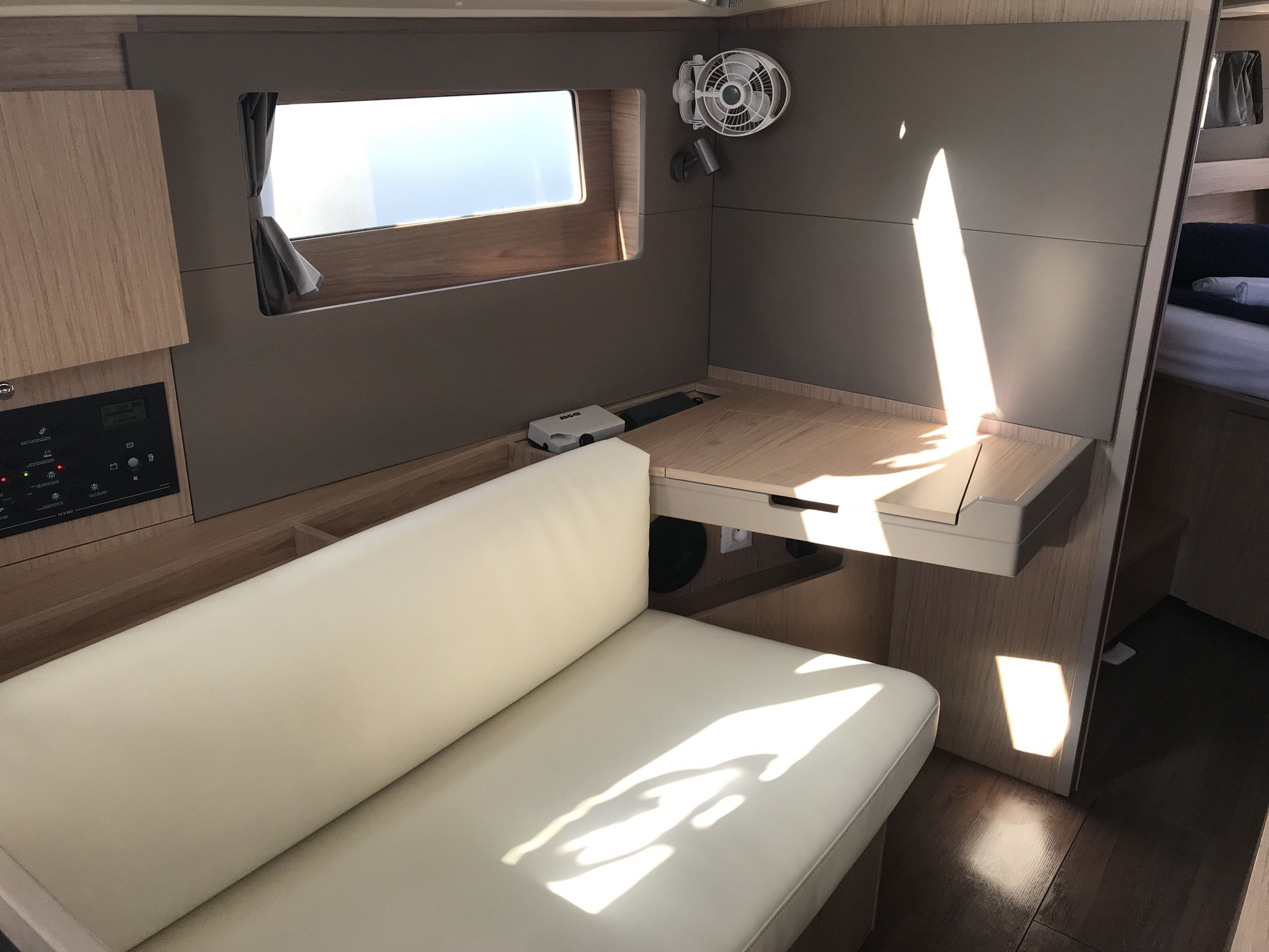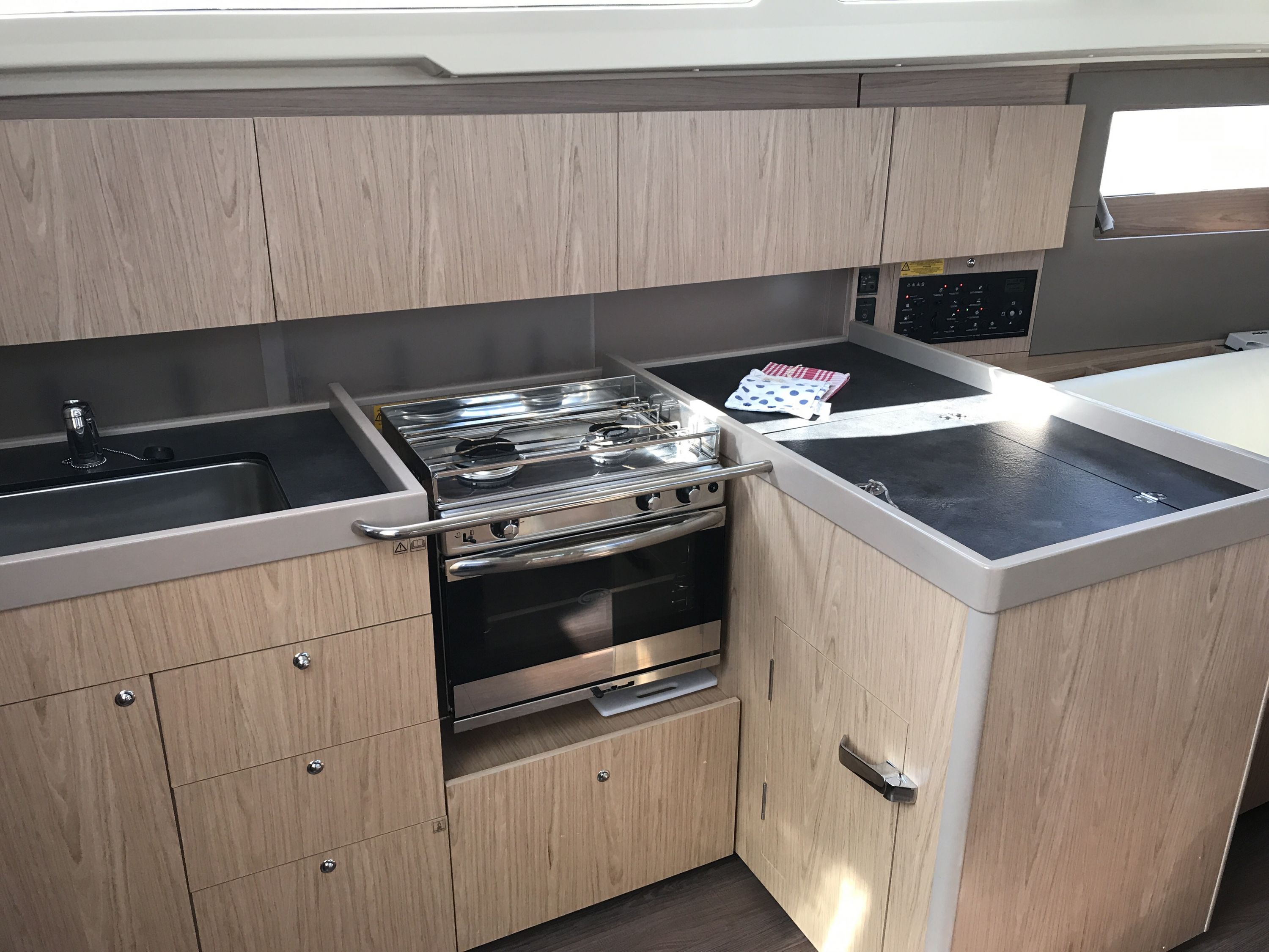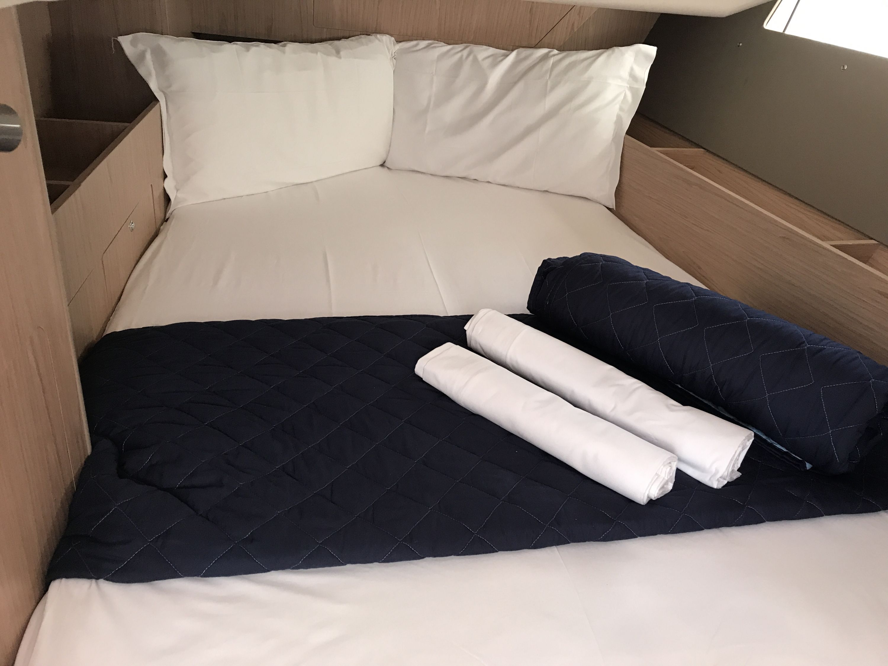 | Inside | Backofen, Inverter 12V/220V, Landstromkabel, Mikrowelle, Mokkakanne, Pantryausstattung, Radio, Salontisch absenkbar, USB Steckdosen in den Kabinen, Ventilator, Ventilatoren in Kabinen, Warmwasser, WC (elektr.) |