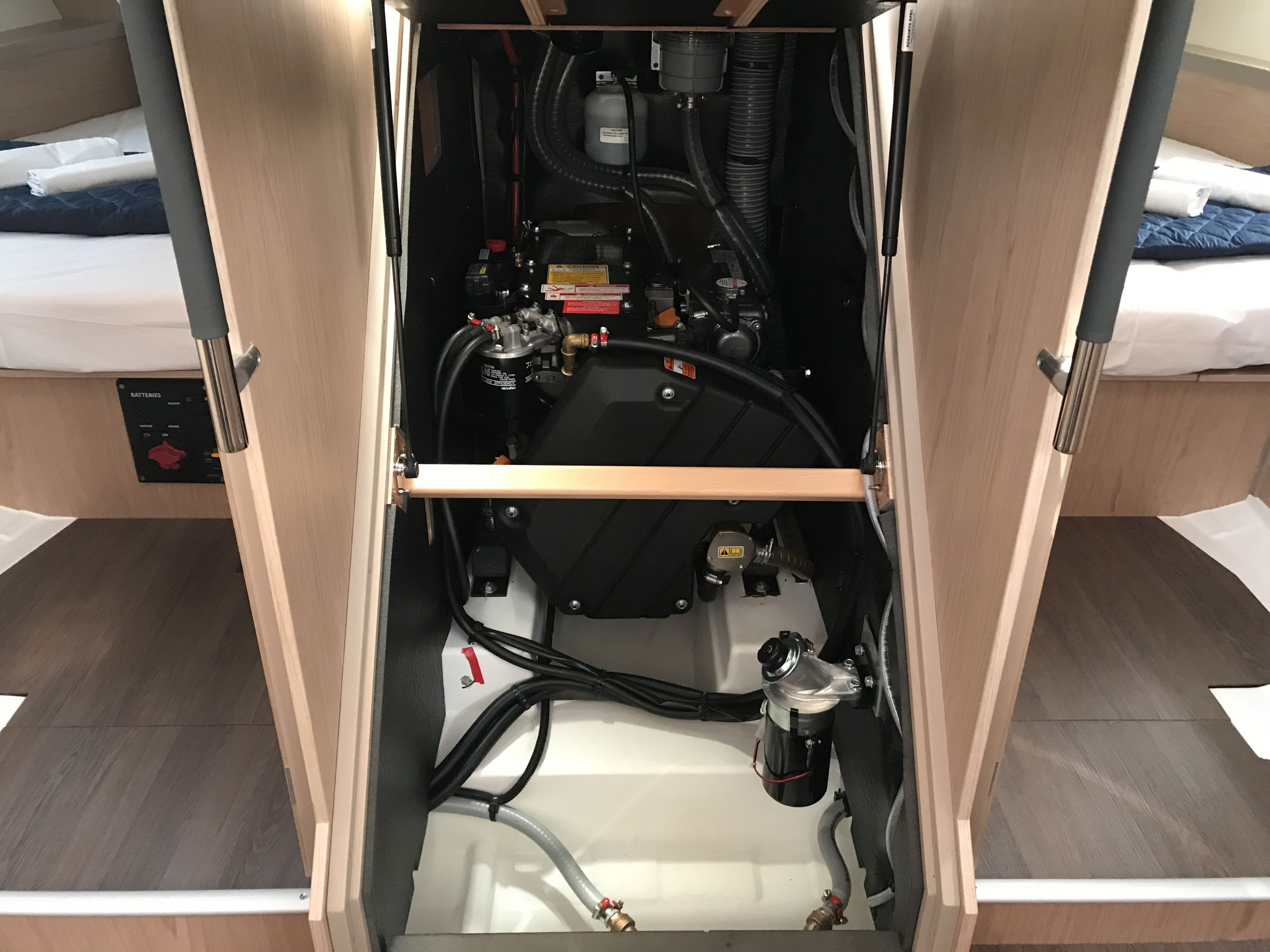 | Inside | Backofen, Landstromkabel, Mikrowelle, Mokkakanne, Pantryausstattung, Radio, Salontisch absenkbar, USB Steckdosen in den Kabinen, Warmwasser, WC (elektr.) |