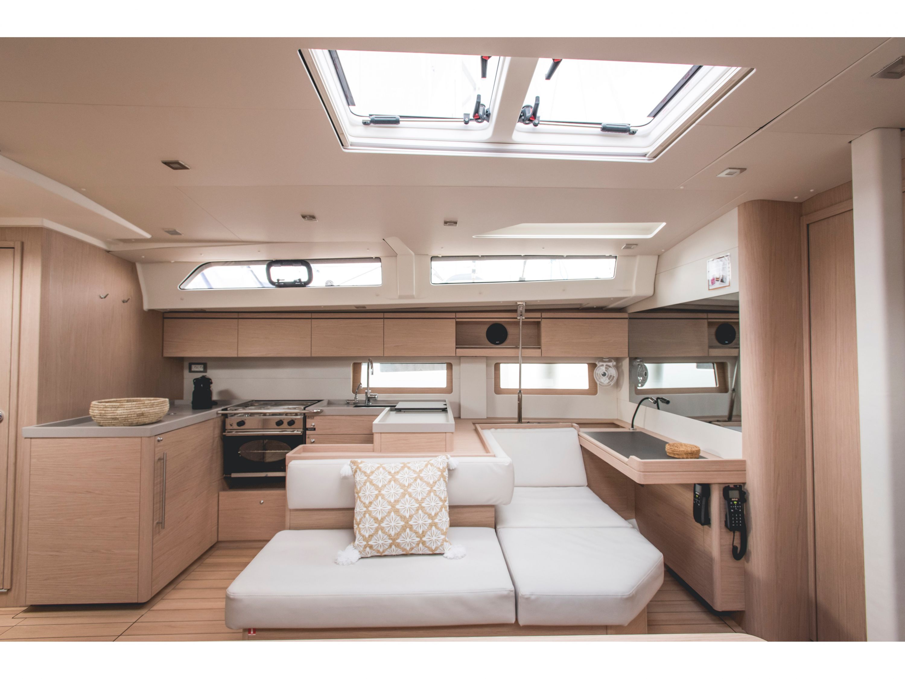 | Outside | Anker mit Kette, Badeplattform, Biminitop, Cockpitdusche, Cockpitlautsprecher, Cockpitpolster, elektr. Ankerwinsch, elektr. Winsch, Gangway, Teakdeck |
