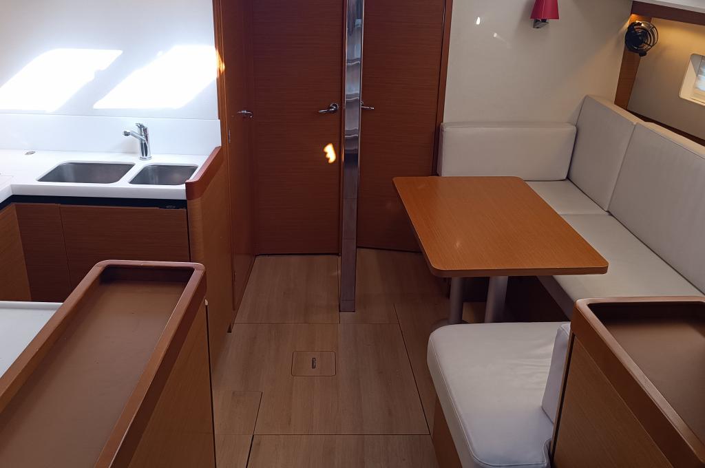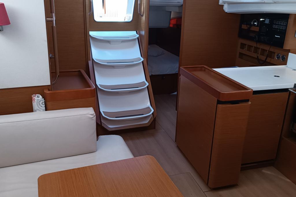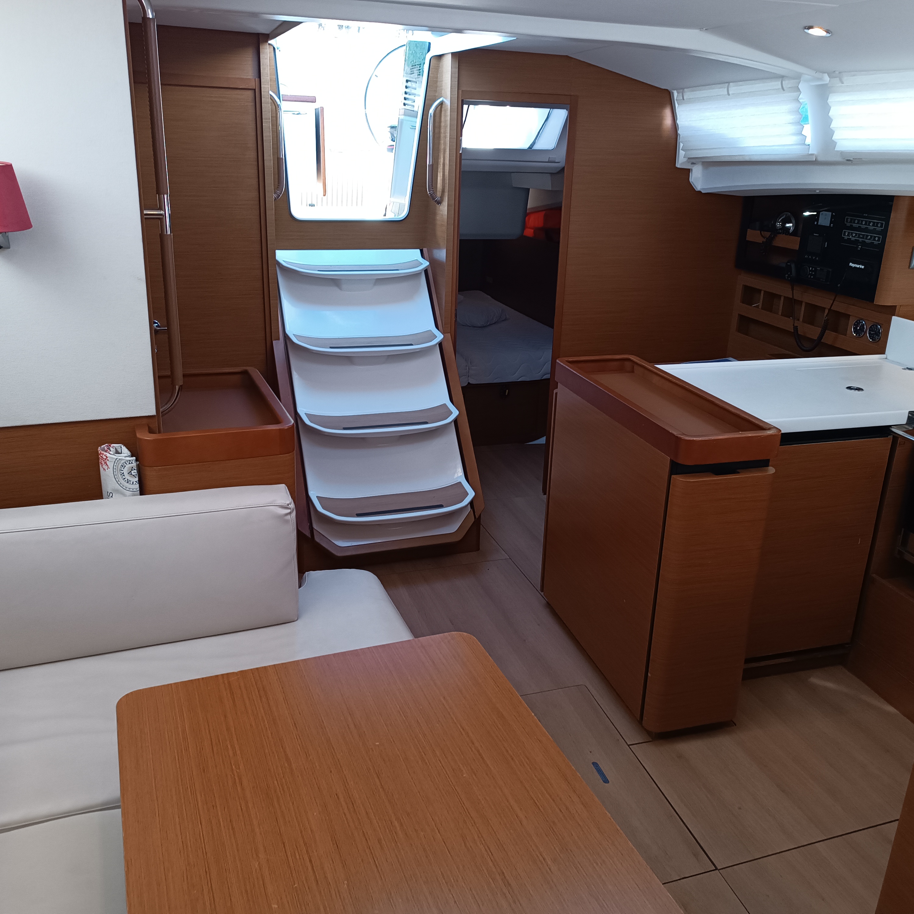 | Navigation | Barometer, Echolot, Fernglas, GPS mit Kartenplotter im Cockpit, Hafenhandbücher, Handpeilkompass, Kompass, Sumlog, Windmesser |