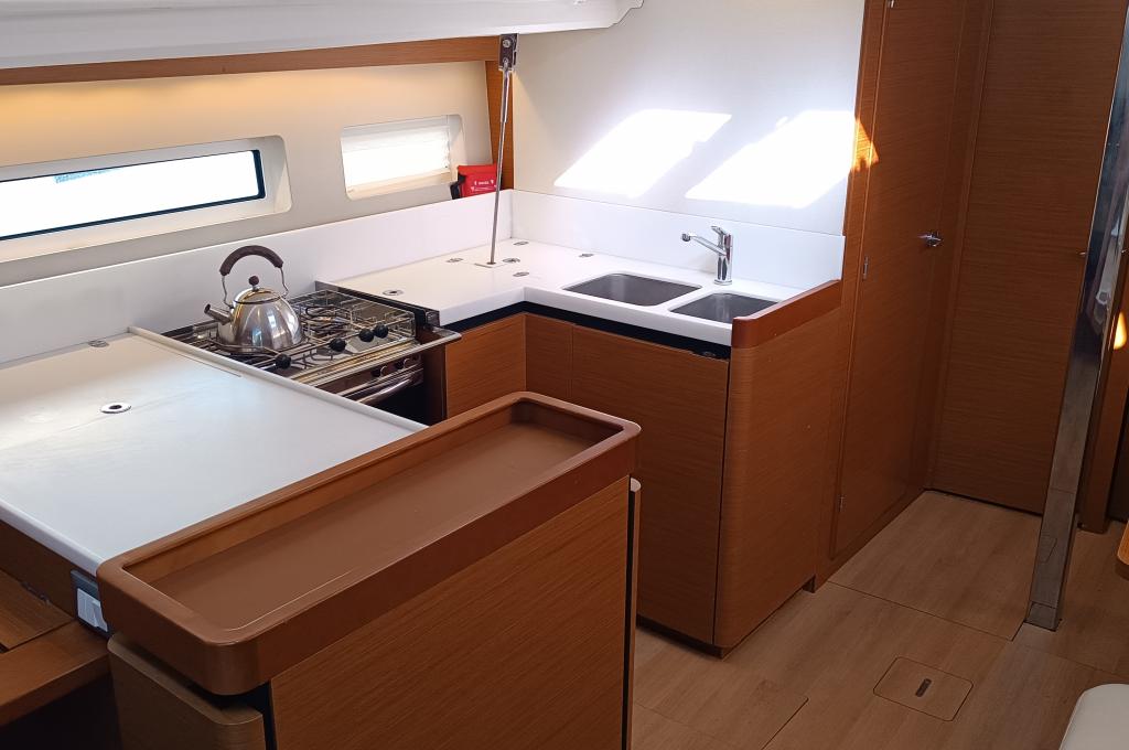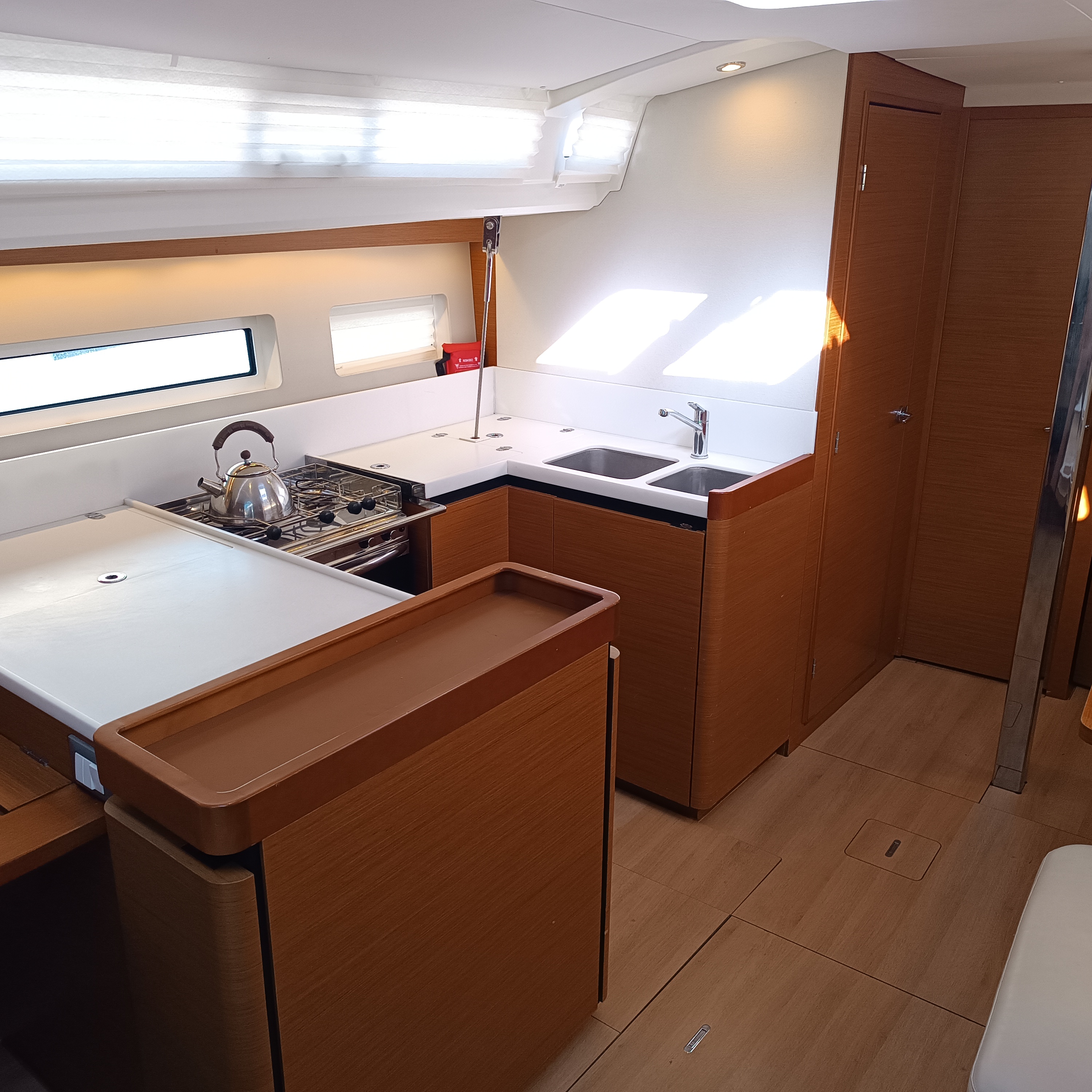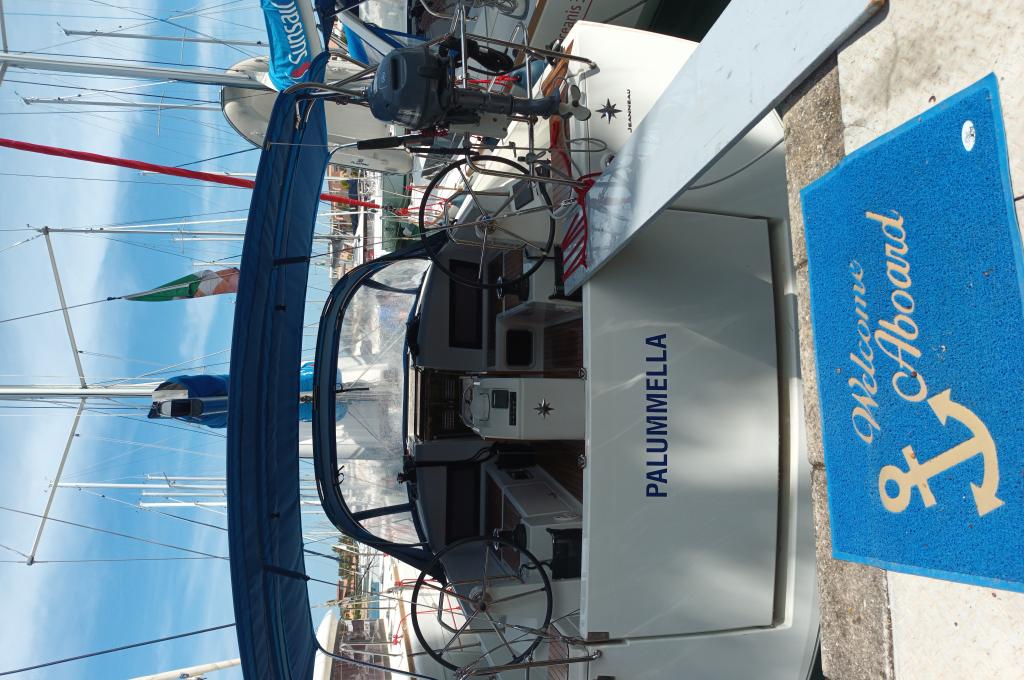 | Outside | Anker mit Kette, Badeleiter, Biminitop, Bootshaken, Cockpitdusche, Cockpitlautsprecher, Cockpitpolster, Deckbürste, elektr. Ankerwinsch, Fender, Festmacherleinen, Gangway, Kunststoff-Eimer (Pütz), Sprayhood, Wasserschlauch, Winschen |