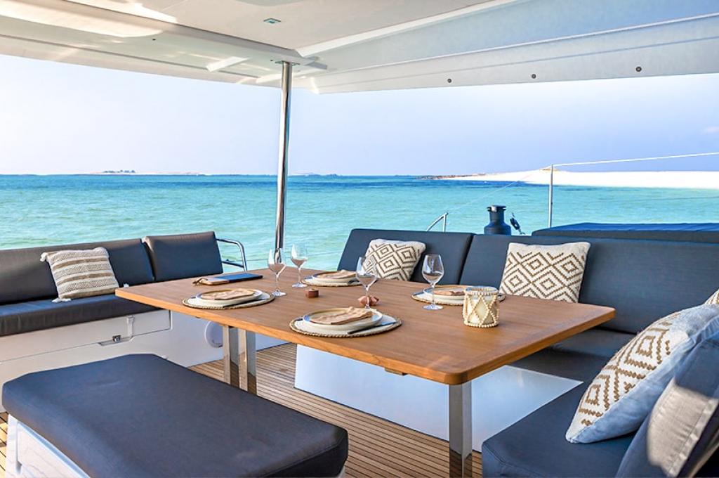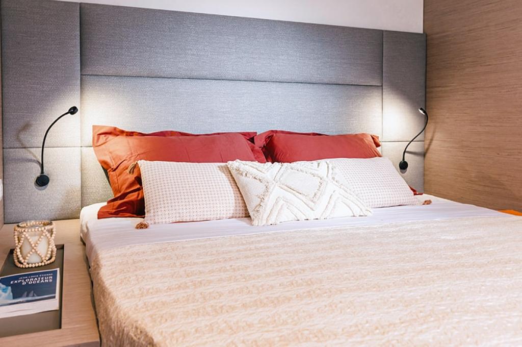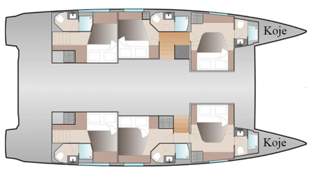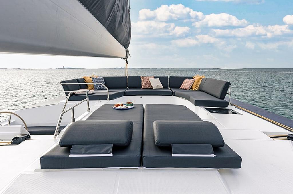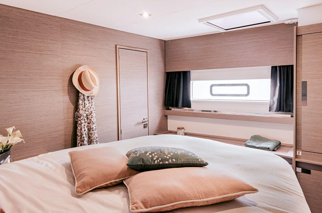 | Inside | Druckwasser, FUSION Sound System, Gasherd mit Backofen, Generator, Inverter 12V/220V, Klimaanlage (Landstrom), Kühlschrank, Ladegerät, Lattenrost, LED-Innenleuchten, Pantryausstattung, Ventilatoren in Kabinen, Warmwasser, Watermaker, WC (elektr.) |