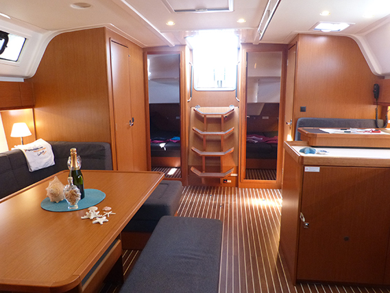 | Safety | Autopilot, Blitzboje, Bootsmannstuhl, Bordapotheke, Bordwerkzeug, Bugstrahlruder, elektr. Bilgepumpe, Feststoffschwimmwesten, Feuerlöscher, Lifebelts, Motor-Ersatzteile, Notpinne, Notsignale, Radarreflektor, Rettungsinsel, Taschenlampe, UKW-Funk |
