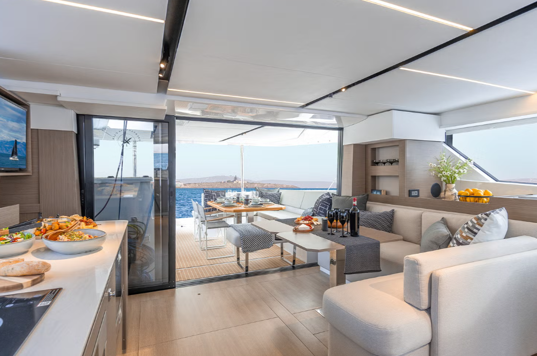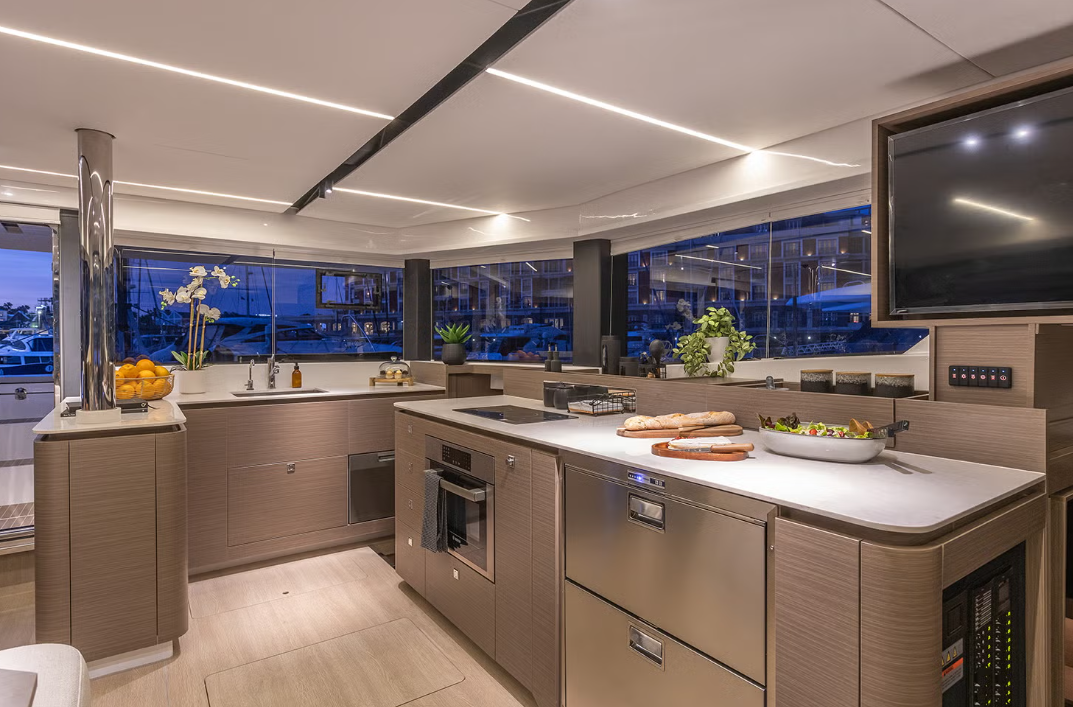 Inside Backofen, Borduhr, Gasherd, Generator, Inverter 12V/220V, Kaffeemaschine, Klimaanlage (ohne Landstrombedarf), Kühlschrank, Ladegerät, Landstromkabel, Pantryausstattung, Radio mit CD, Trichter, Ventilator, Warmwasser, Watermaker
