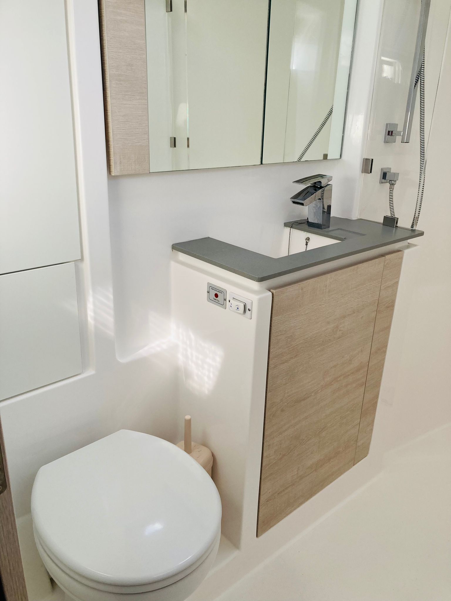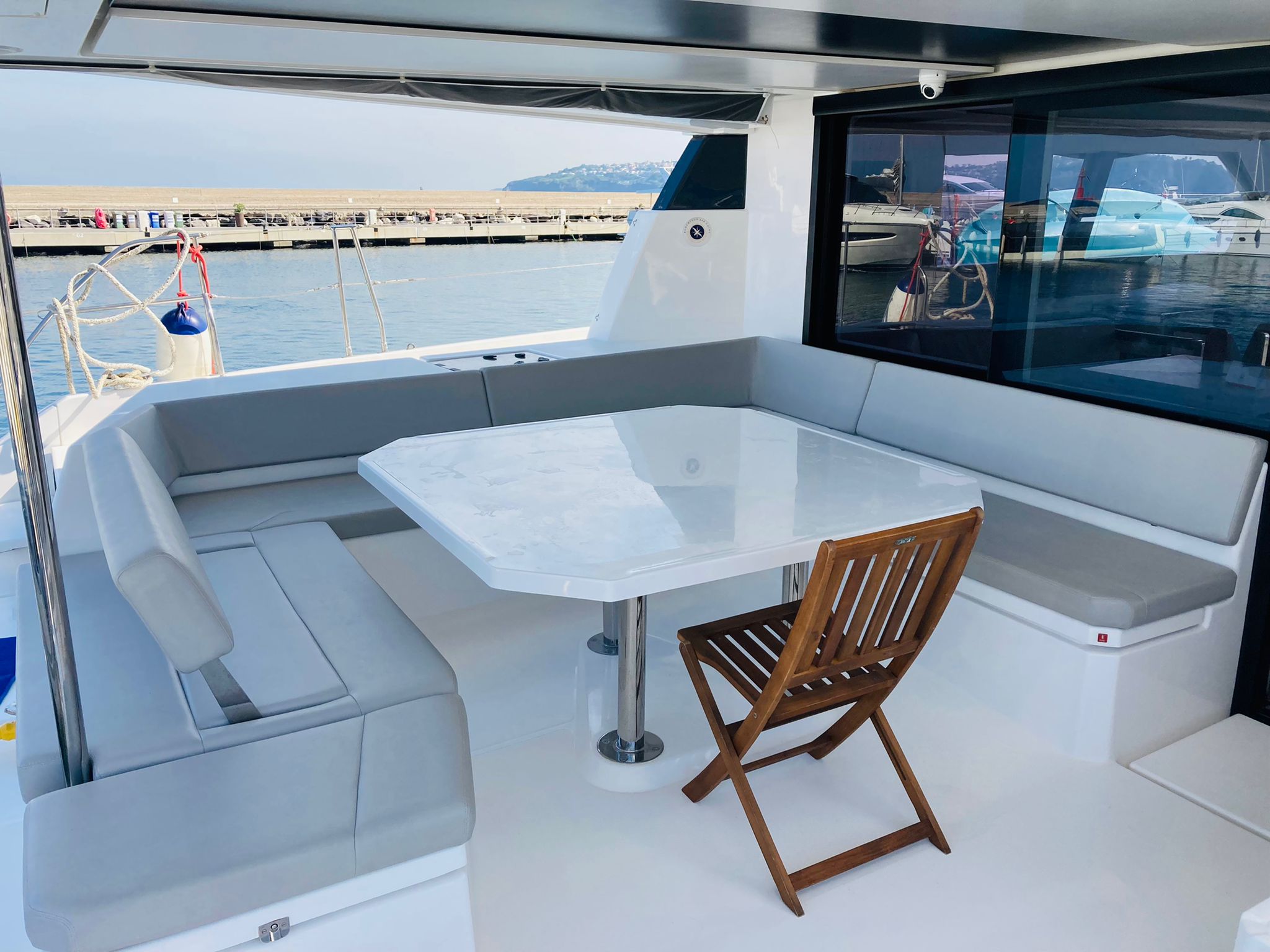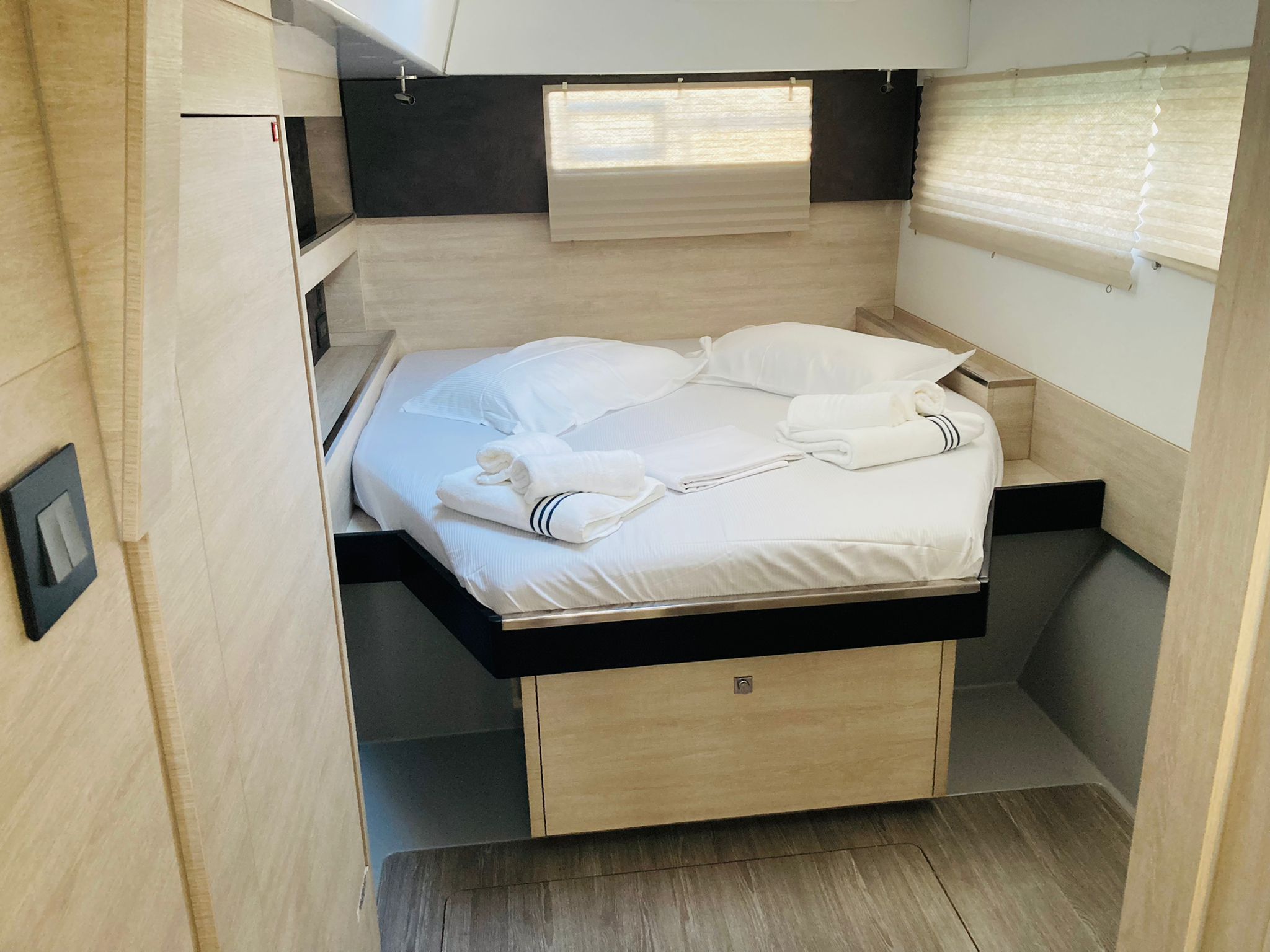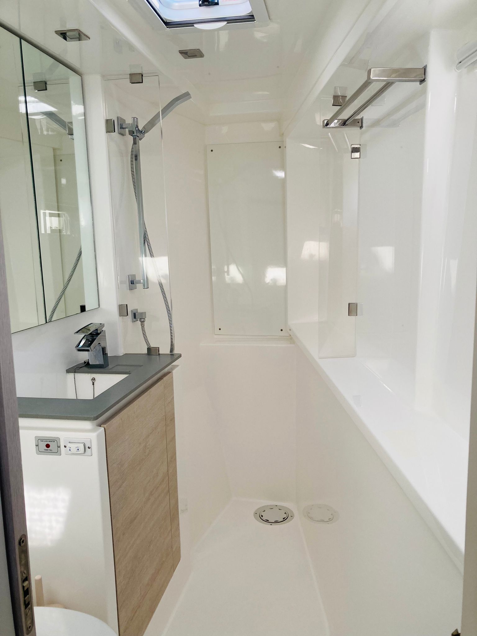 | Inside | Borduhr, CD-Player, Gasherd mit Backofen, Generator, Inverter 12V/220V, Kaffeemaschine, Klimaanlage (ohne Landstrombedarf), Kühlschrank, Pantryausstattung, Salontisch absenkbar, Trichter, Warmwasser, Watermaker |
