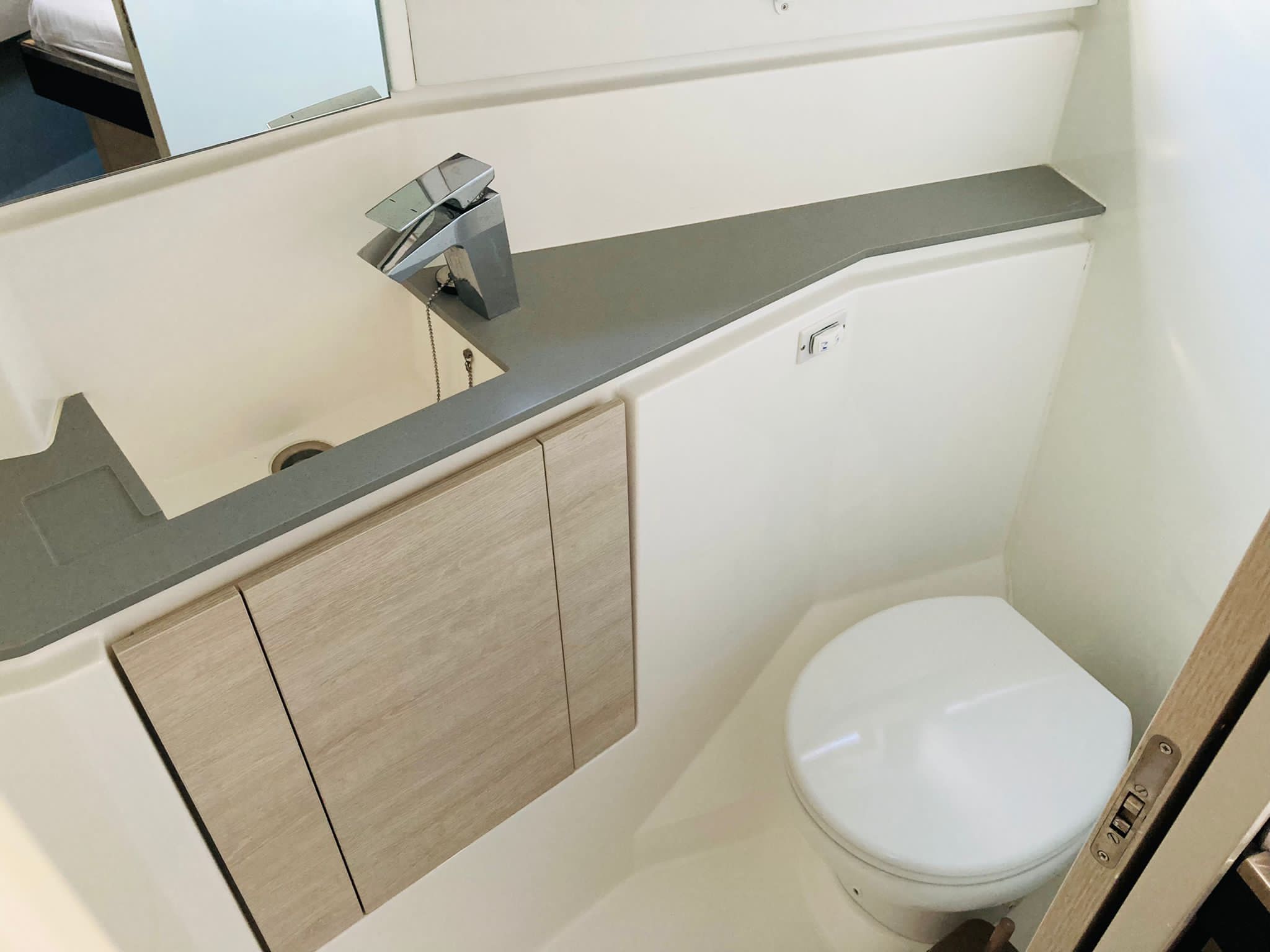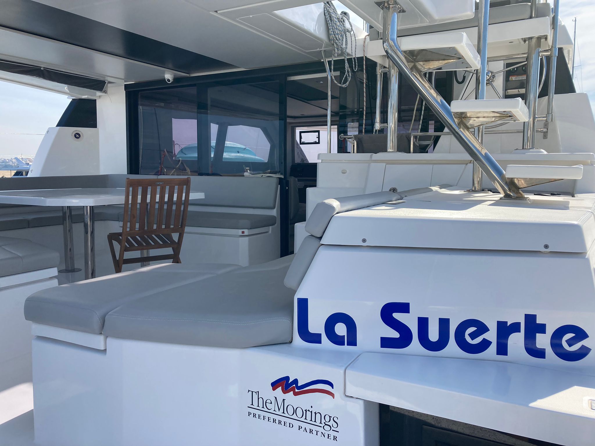 | Outside | Anker mit Kette, Badeleiter, Bootshaken, Cockpitlautsprecher, Cockpitpolster, Deckbürste, elektr. Ankerwinsch, elektr. Winsch, Fender, Festmacherleinen, Flybridge, Gangway, Grill, Hardtop, Kunststoff-Eimer (Pütz), Solaranlage, Wasserschlauch, Winschen |