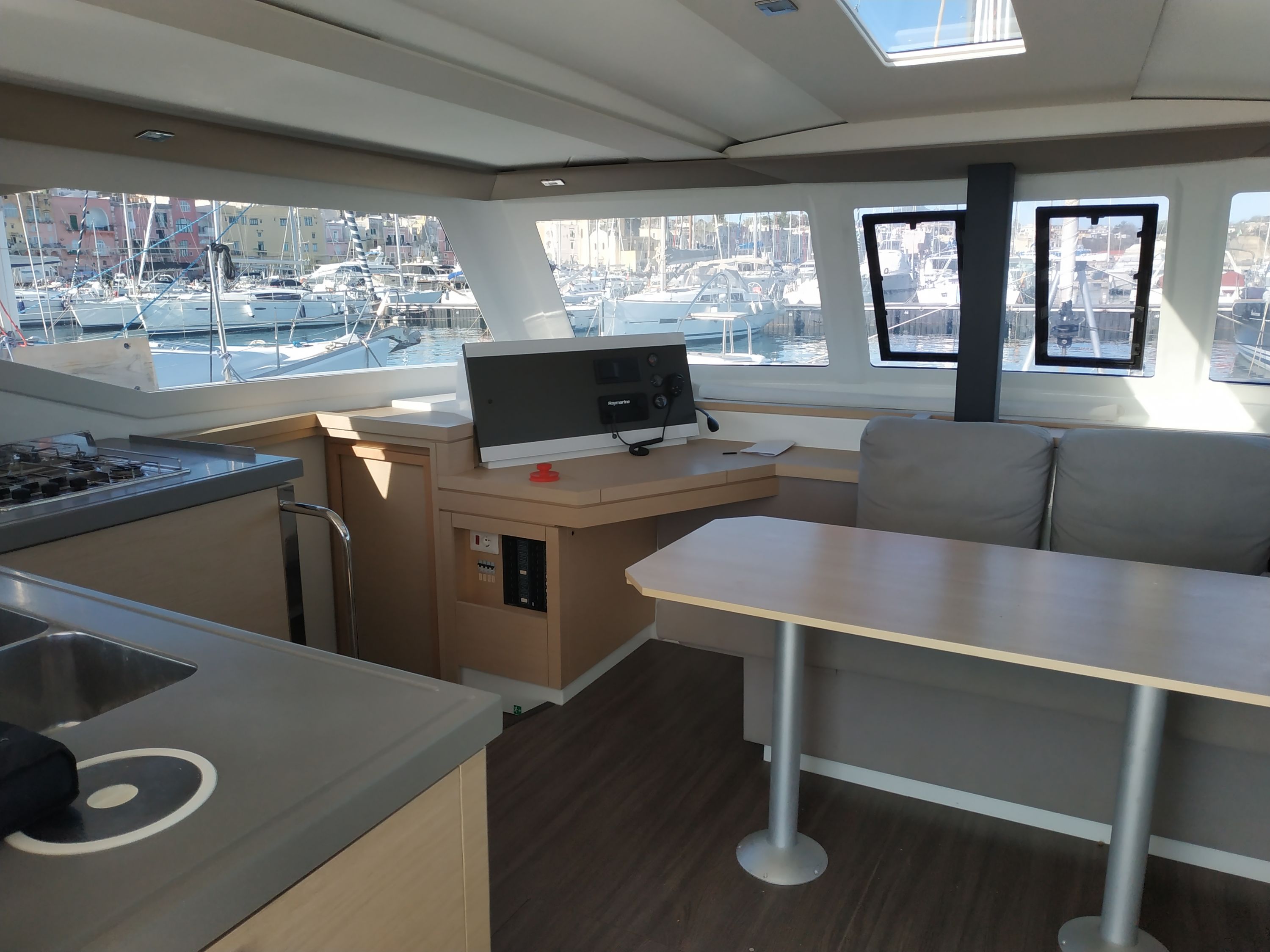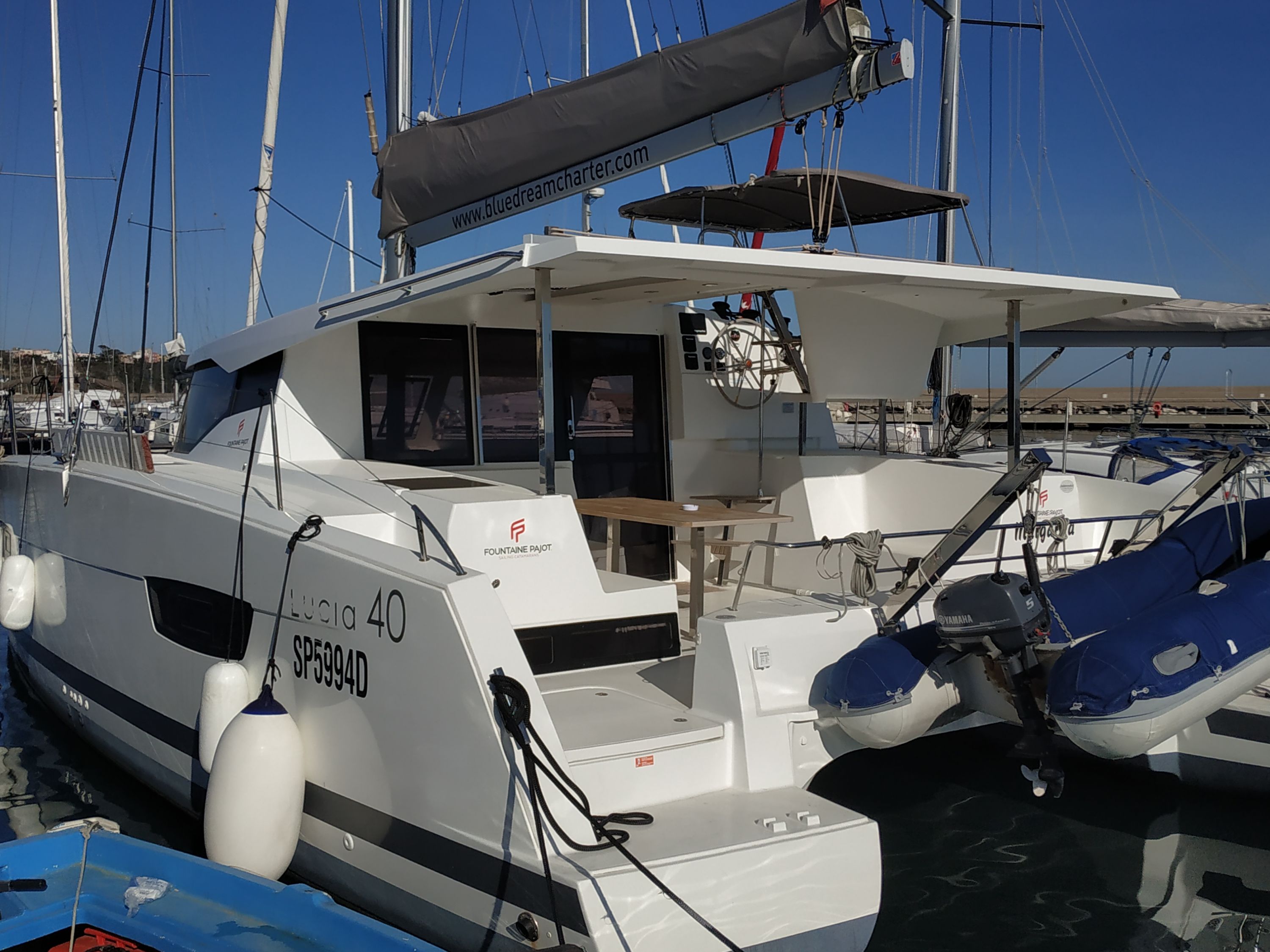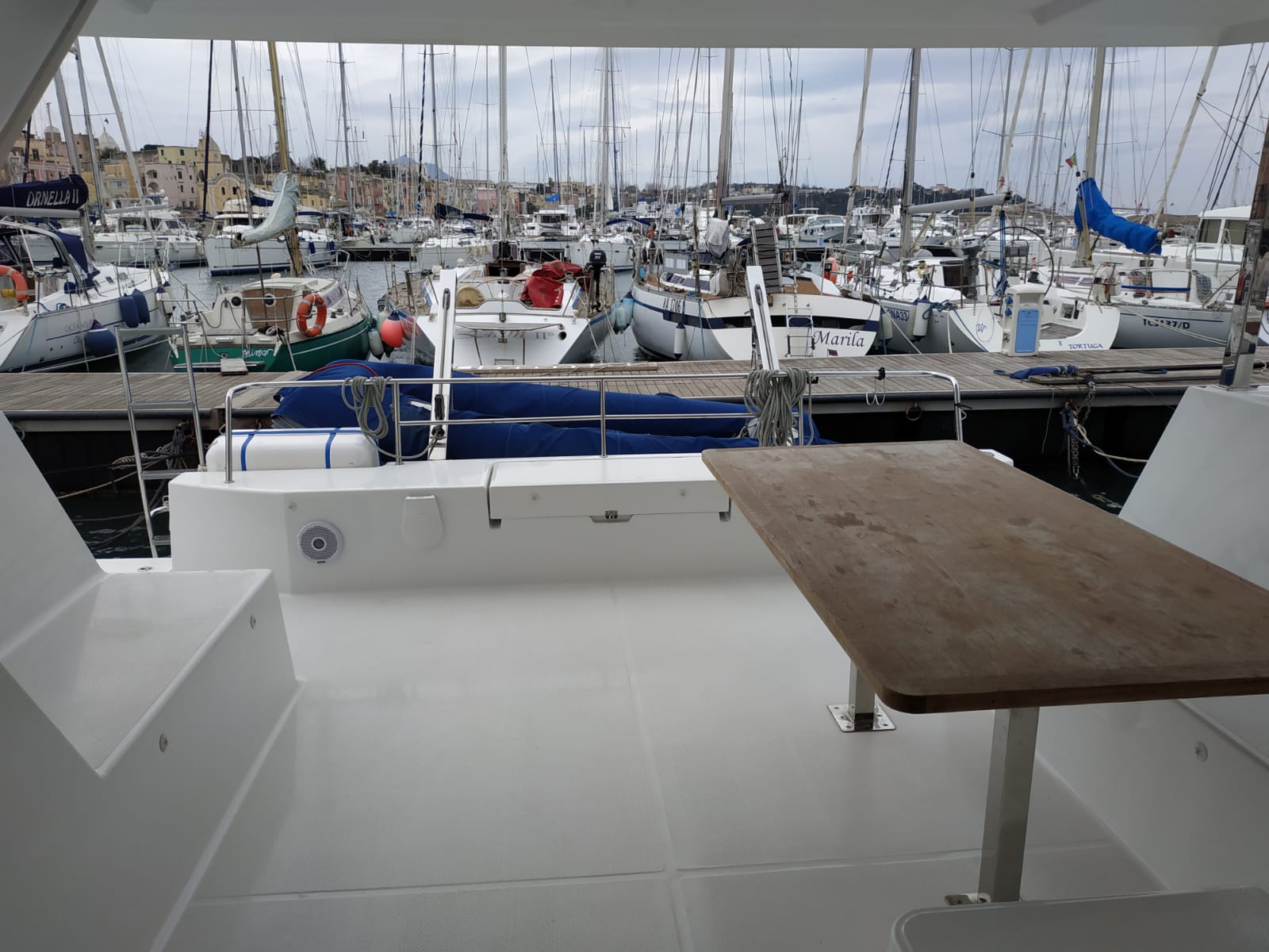 | Outside | 220 V Landstromkabel mit Ladegerät, 220 V-Landanschluss, Badeleiter, Badeplattform, Biminitop, Cockpitdusche, Cockpitlautsprecher, Cockpittisch, elektr. Ankerwinsch, Gangway, Segel-Flickwerkzeug, Sprayhood, Windex |
