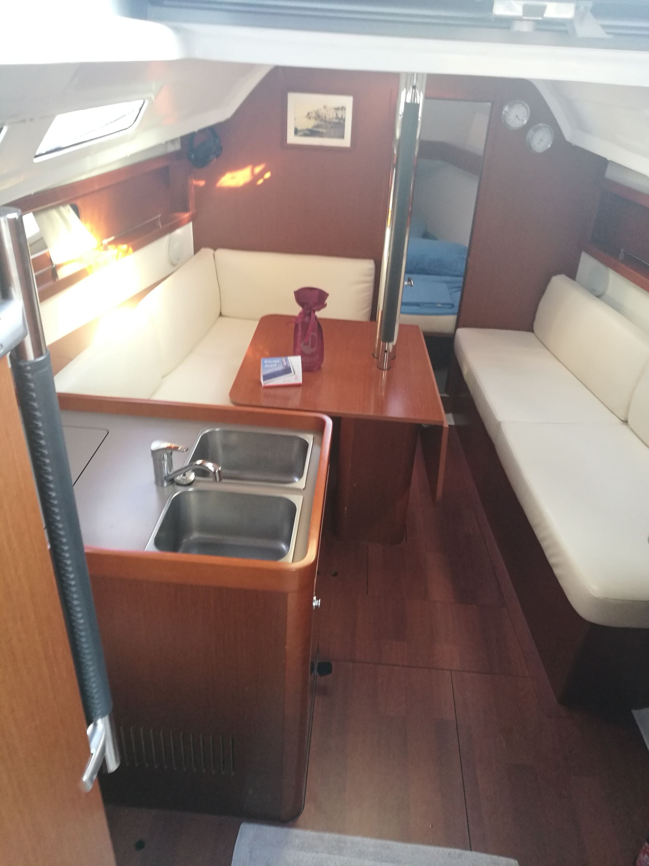 | Navigation | Barometer, Echolot, Fernglas, GPS mit Kartenplotter im Cockpit, Hafenhandbücher, Handpeilkompass, Kompass, Sumlog, Windmesser |