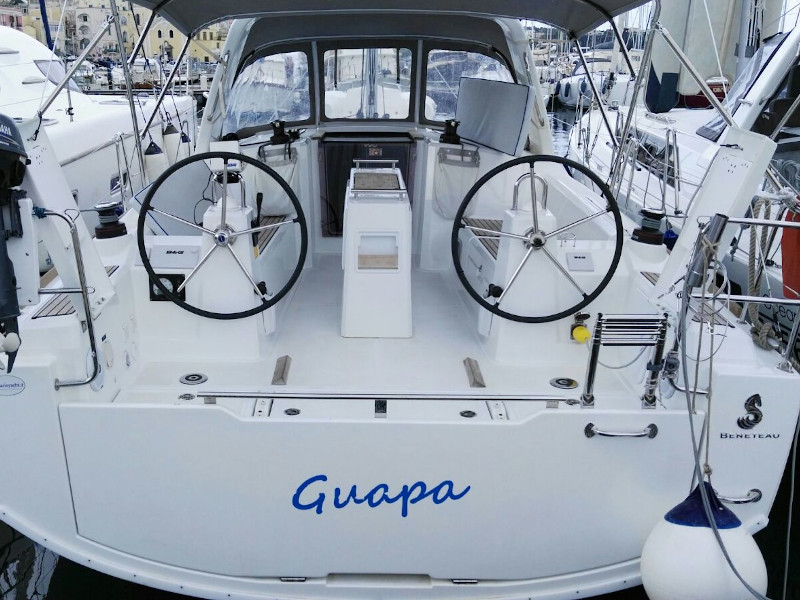 | Outside | 220 V-Landanschluss, Badeleiter, Badeplattform, Biminitop, Cockpitdusche, Cockpitlautsprecher, Cockpittisch, elektr. Ankerwinsch, Gangway, Segel-Flickwerkzeug, Sprayhood, Windex |