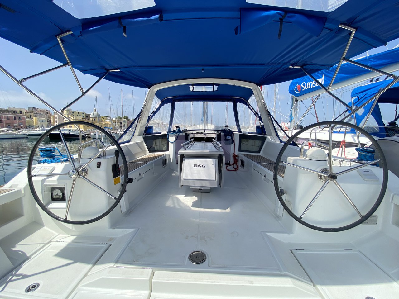 | Safety | Autopilot, Bootsmannstuhl, Bordapotheke, Bordwerkzeug, Bugstrahlruder, elektr. Bilgepumpe, Feststoffschwimmwesten, Feuerlöscher, Handbilgepumpe, Lifebelts, Nebelhorn, Notpinne, Notsignale, Radarreflektor, Rettungsinsel, Rettungskragen, Taschenlampe, UKW-Funk, Zweitanker |