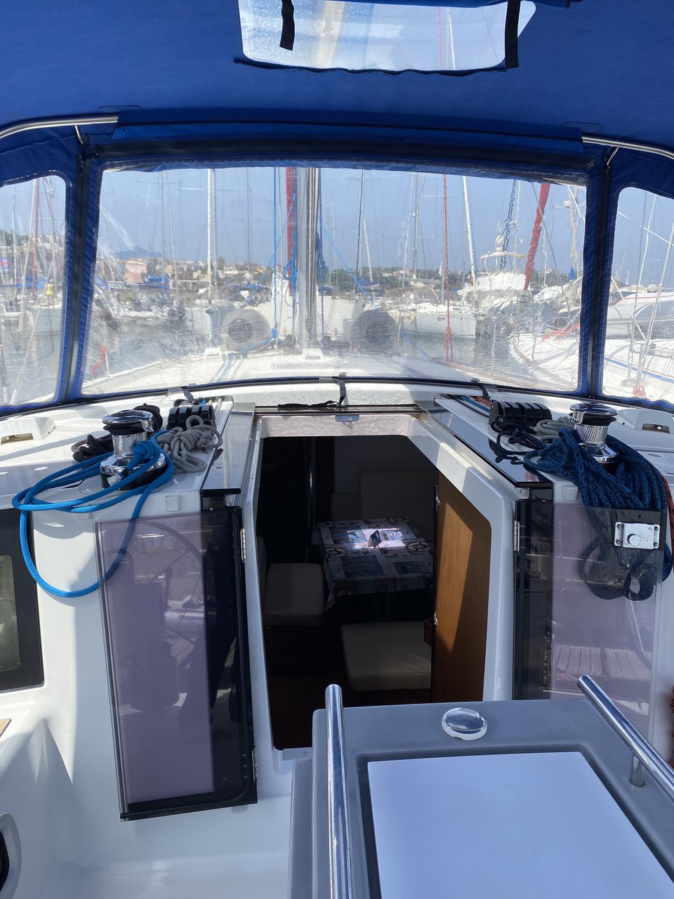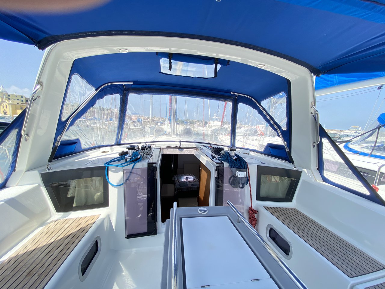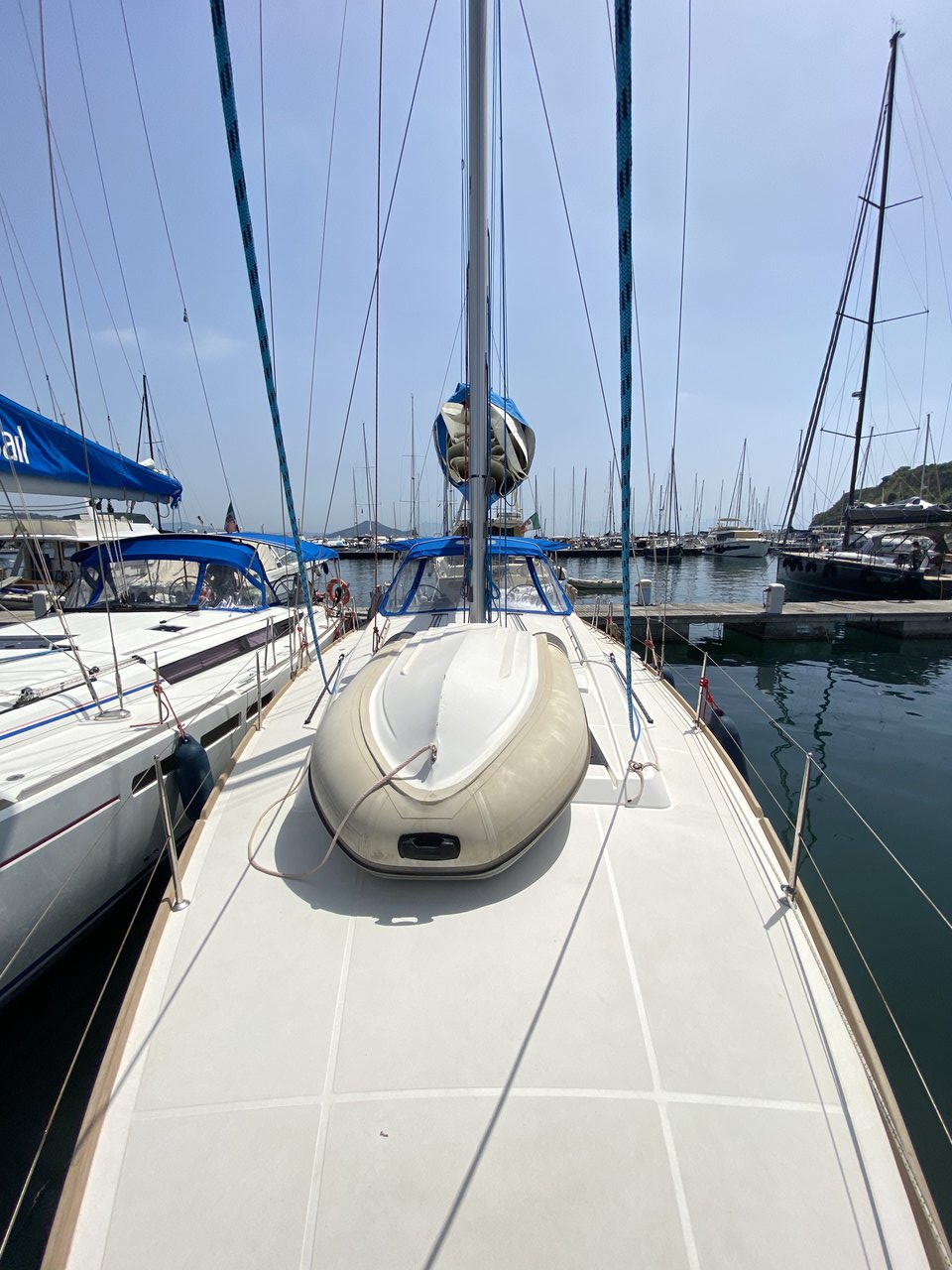 | Outside | Anker mit Kette, Badeleiter, Biminitop, Bootshaken, Cockpitdusche, Cockpitlautsprecher, Cockpitpolster, Deckbürste, elektr. Ankerwinsch, Fender, Festmacherleinen, Gangway, Kunststoff-Eimer (Pütz), Sprayhood, Wasserschlauch, Winschen |