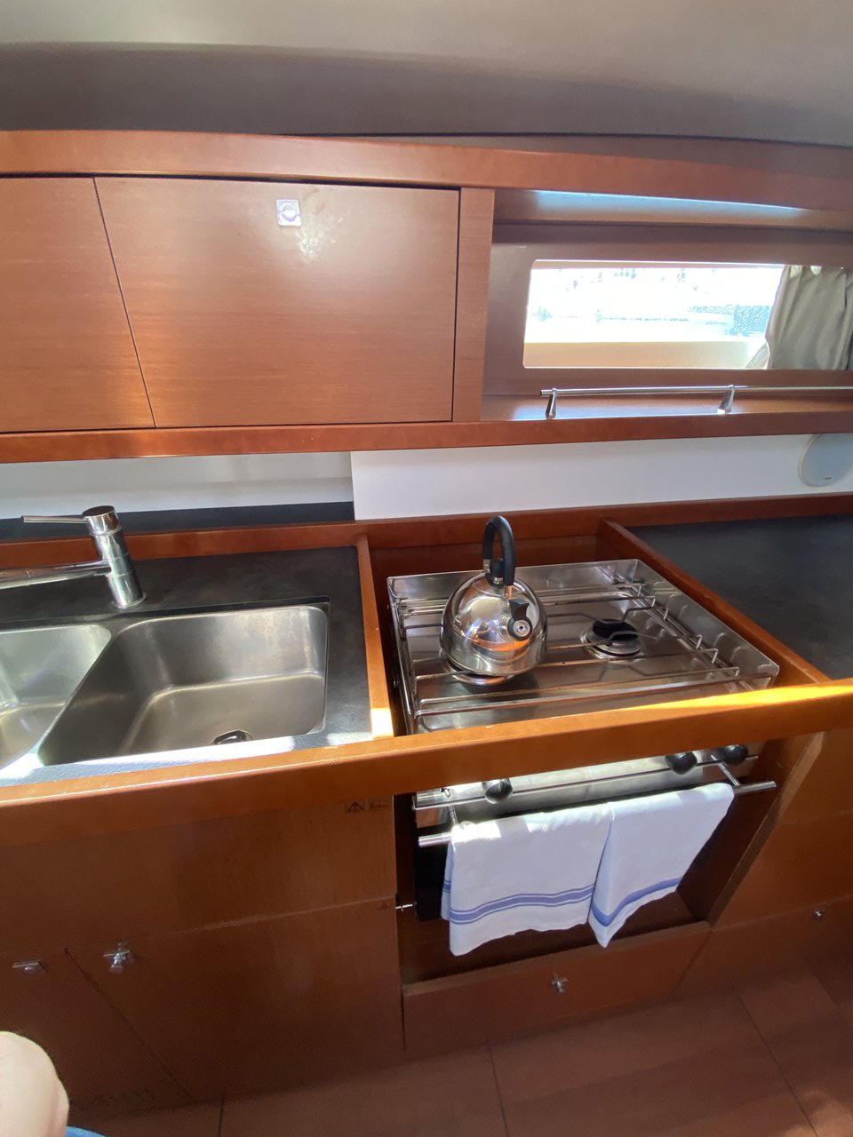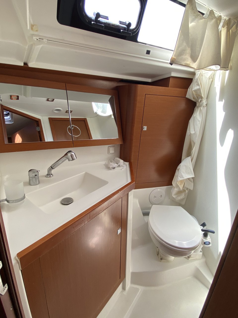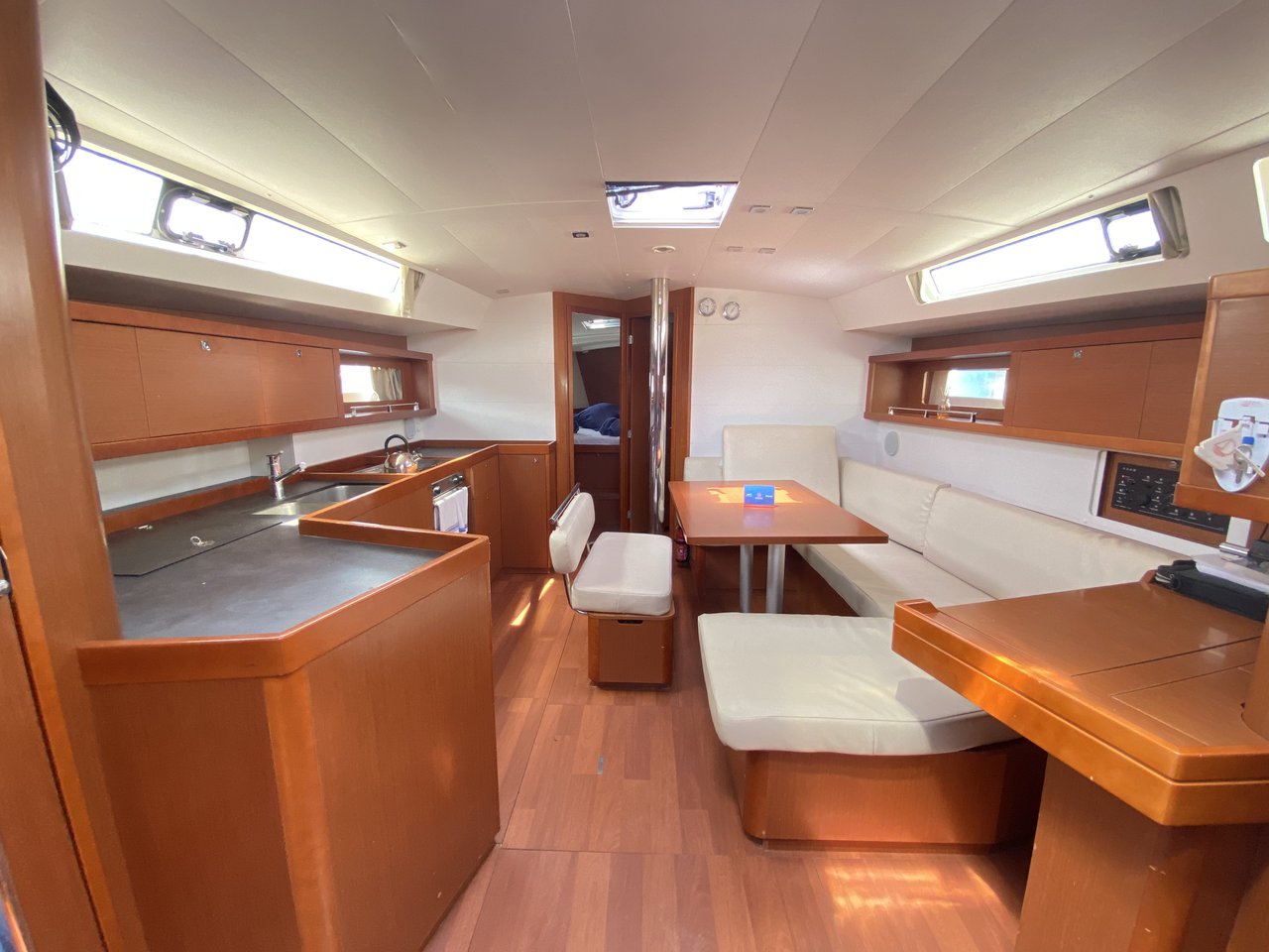 | Navigation | Barometer, Echolot, Fernglas, GPS mit Kartenplotter im Cockpit, Hafenhandbücher, Handpeilkompass, Kompass, Sumlog, Windmesser |