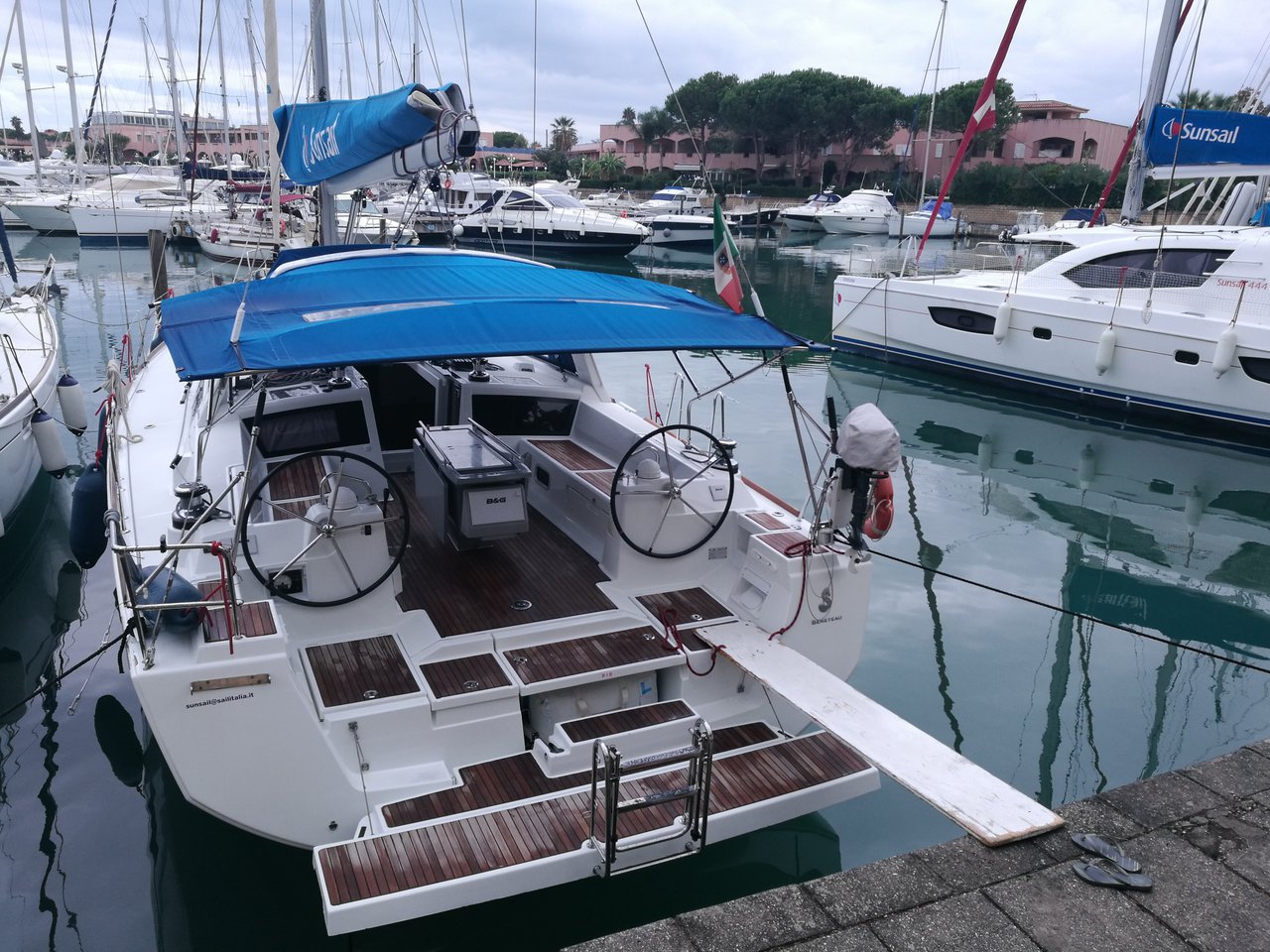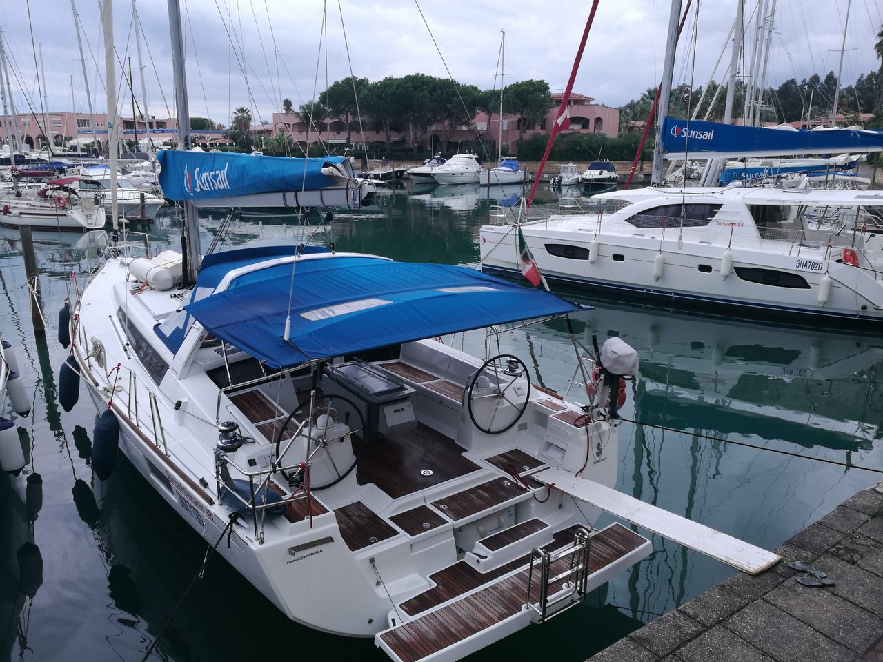 | Outside | Anker mit Kette, Badeleiter, Biminitop, Bootshaken, Cockpitdusche, Cockpitlautsprecher, Cockpitpolster, Deckbürste, elektr. Ankerwinsch, Fender, Festmacherleinen, Gangway, Kunststoff-Eimer (Pütz), Schnorchelausrüstung, Sprayhood, Wasserschlauch, Winschen |