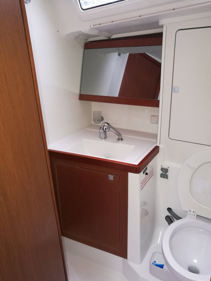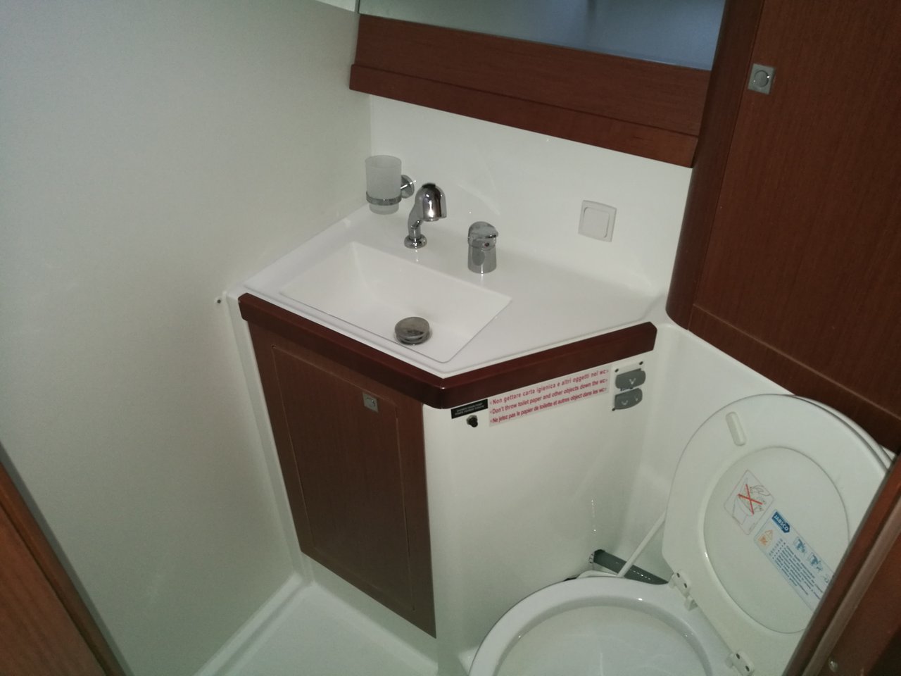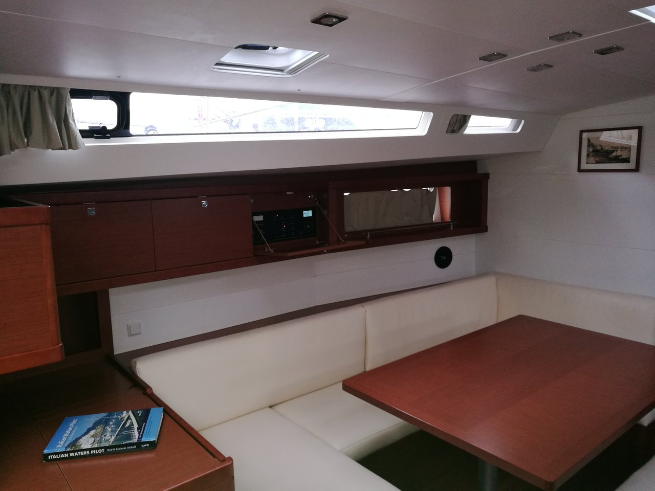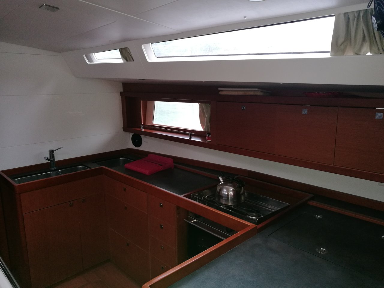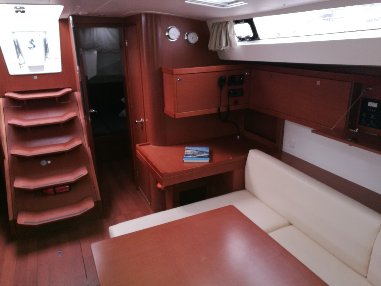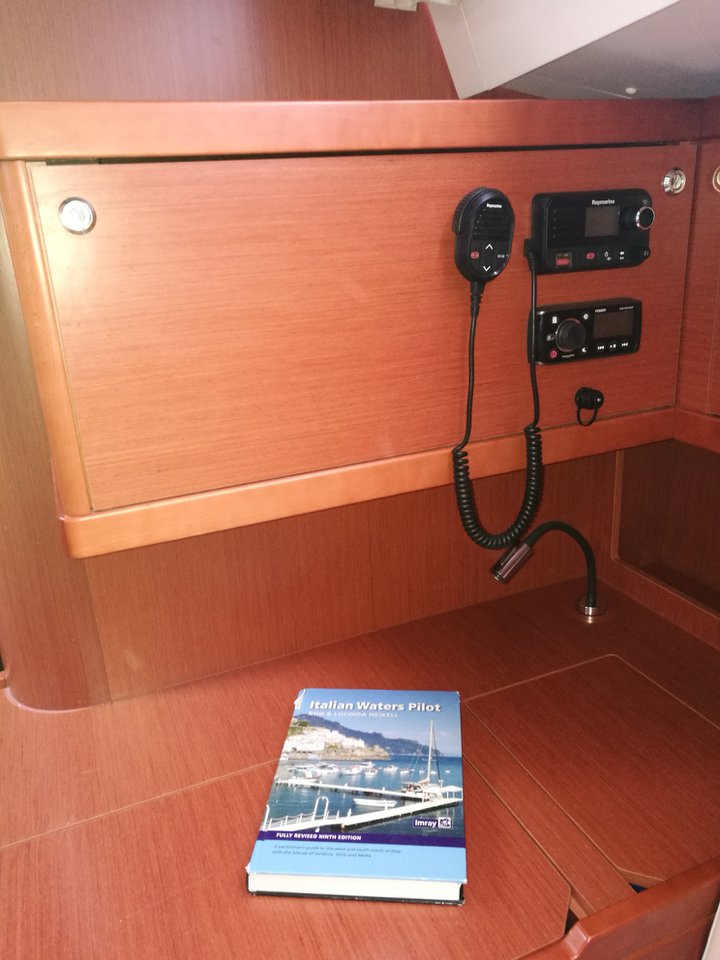 | Navigation | Barometer, Echolot, Fernglas, GPS mit Kartenplotter im Cockpit, Hafenhandbücher, Handpeilkompass, Kompass, Sumlog, Windmesser |