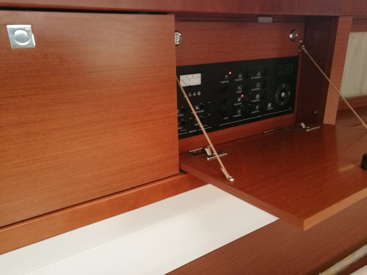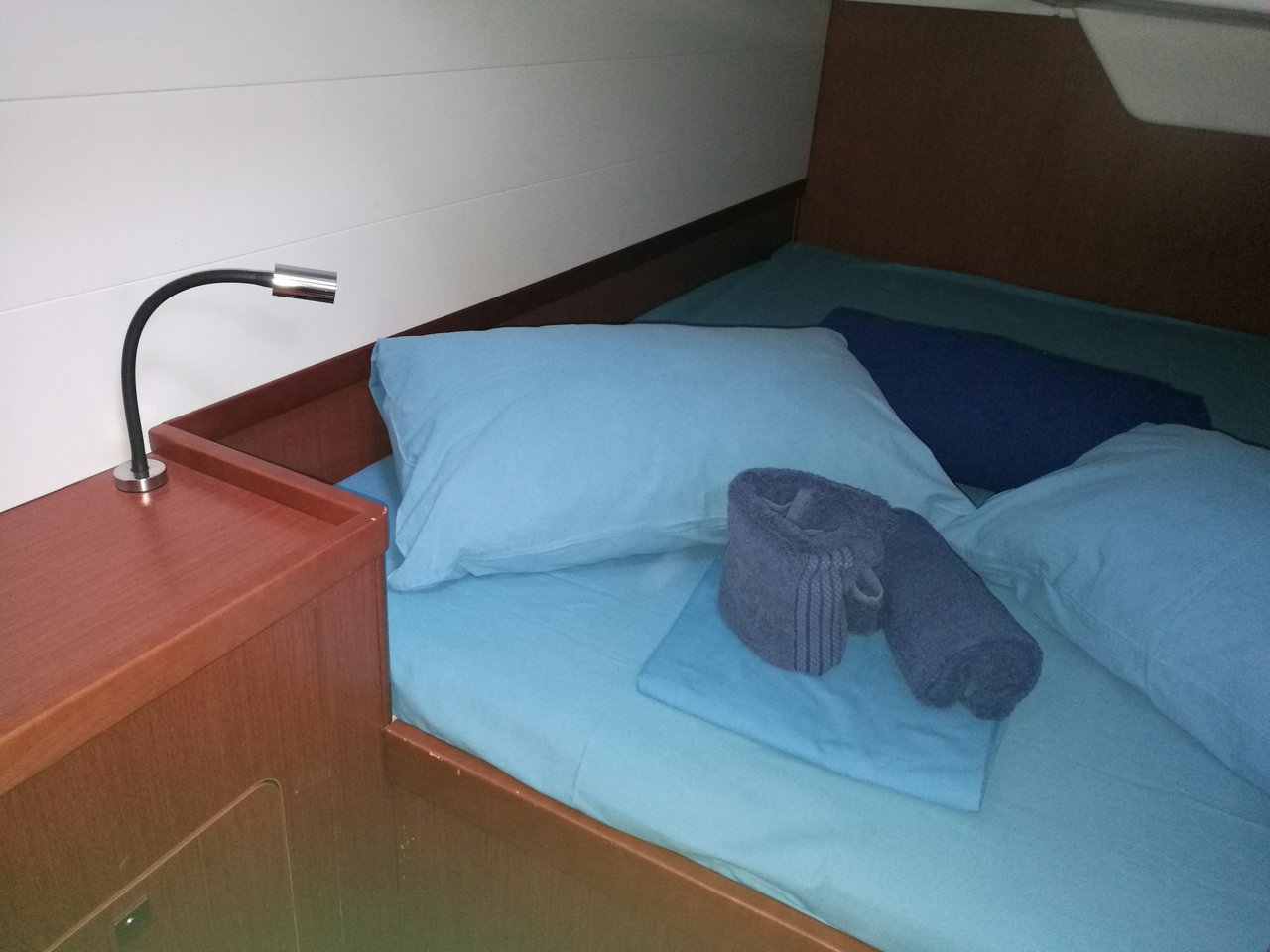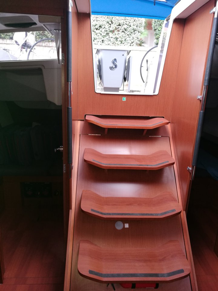 | Safety | Autopilot, Bootsmannstuhl, Bordapotheke, Bordwerkzeug, Bugstrahlruder, elektr. Bilgepumpe, Feststoffschwimmwesten, Feuerlöscher, Handbilgepumpe, Lifebelts, Nebelhorn, Notpinne, Notsignale, Radarreflektor, Rettungsinsel, Rettungskragen, Taschenlampe, UKW-Funk, Zweitanker |