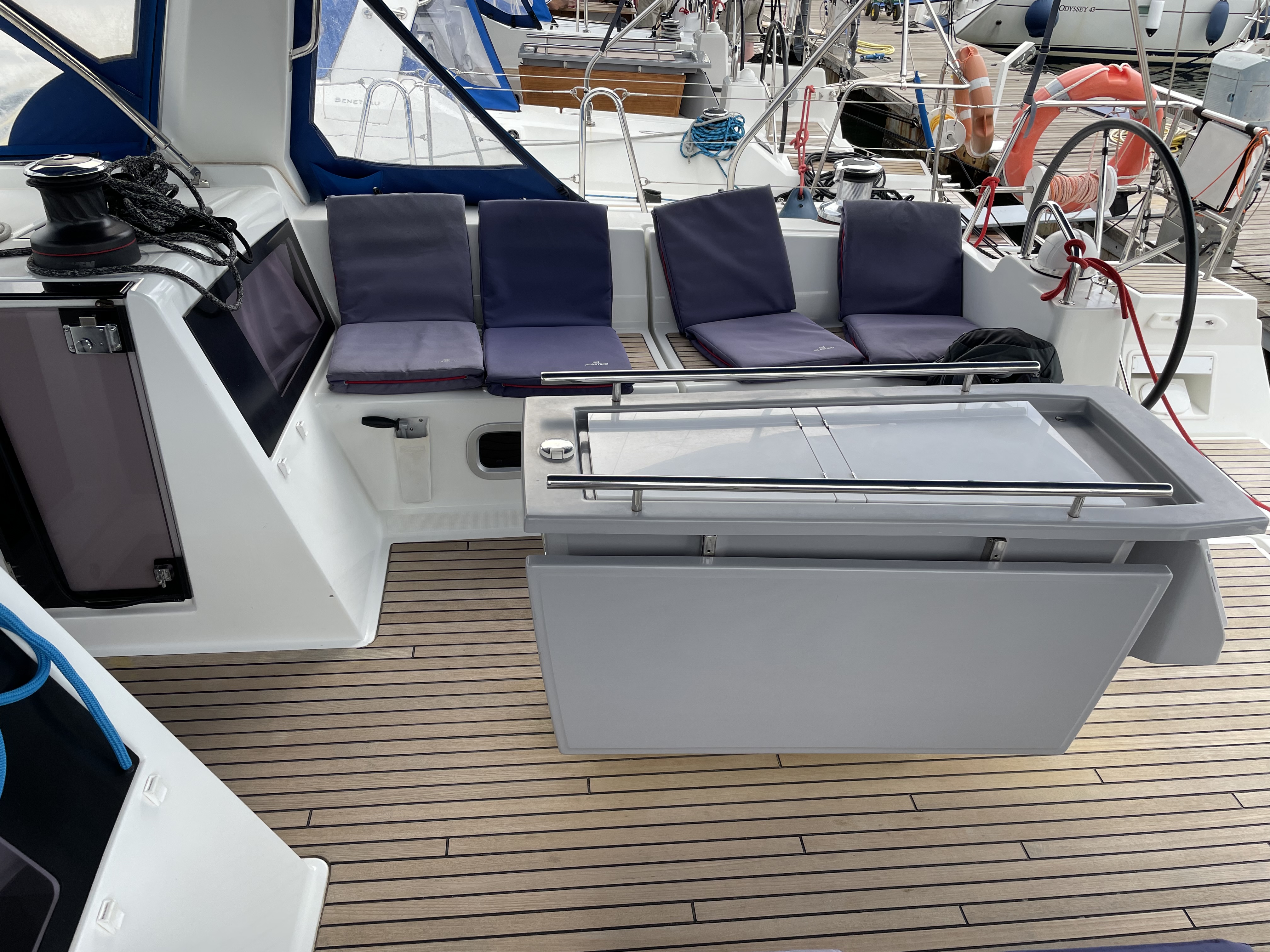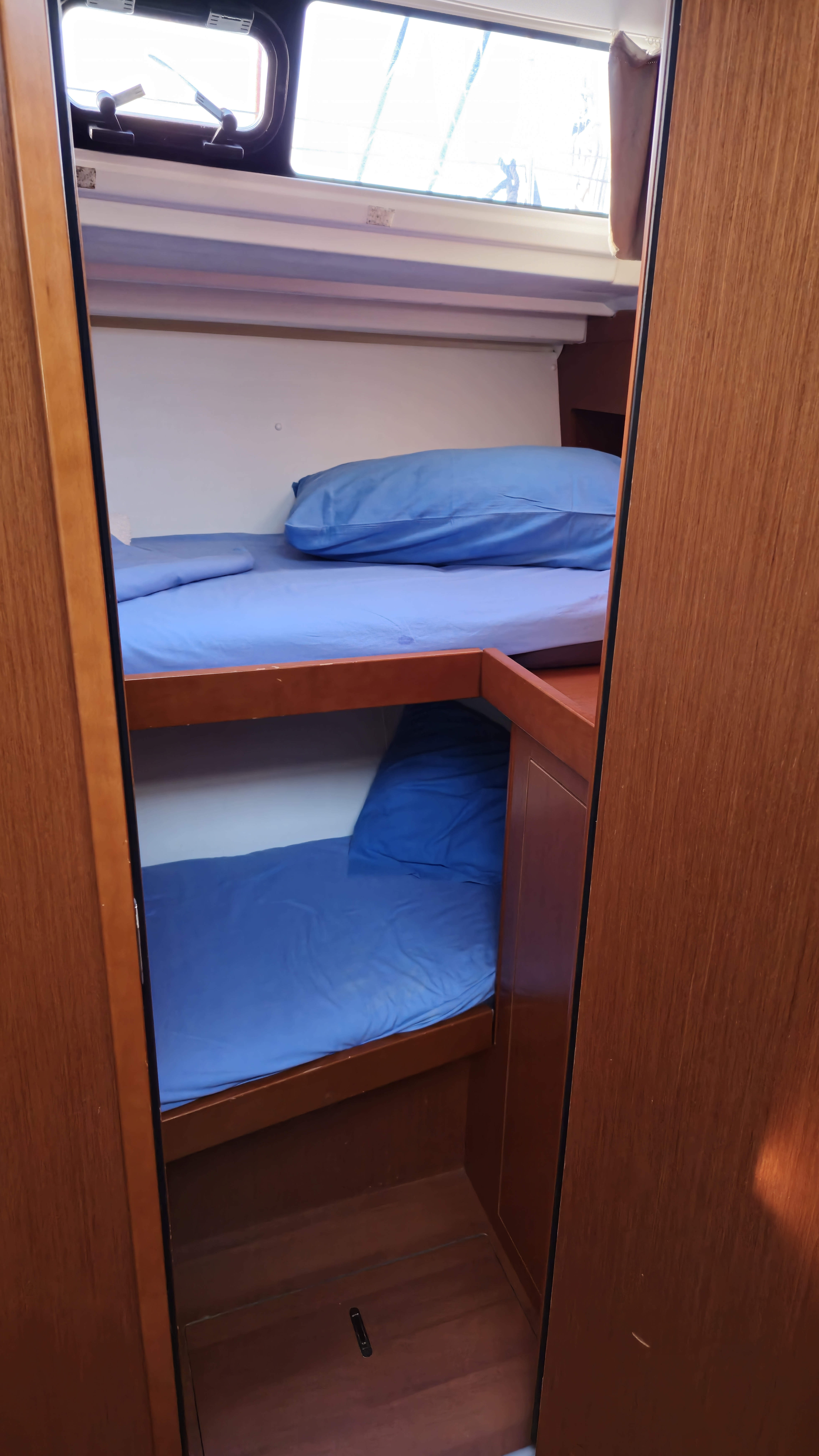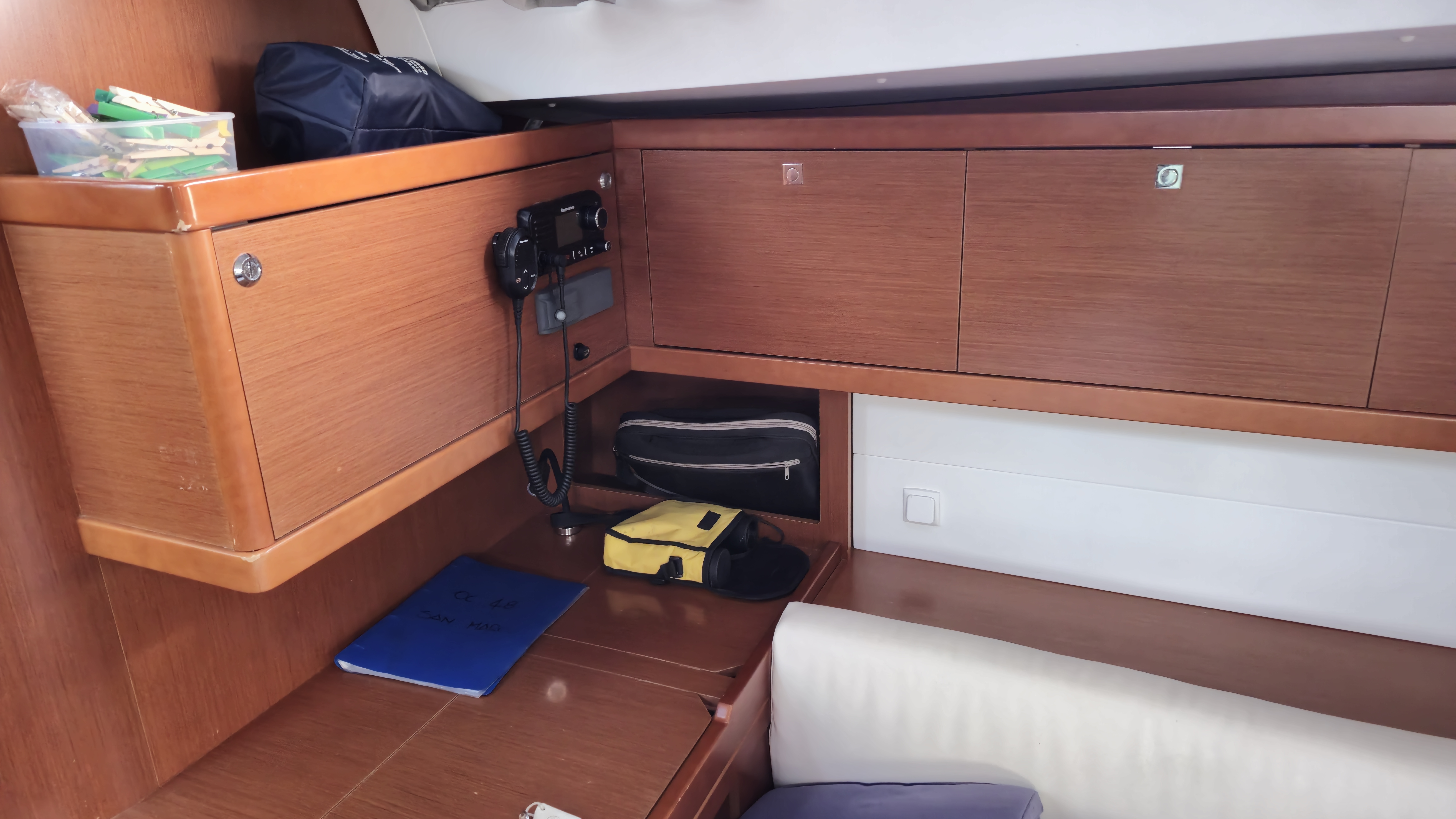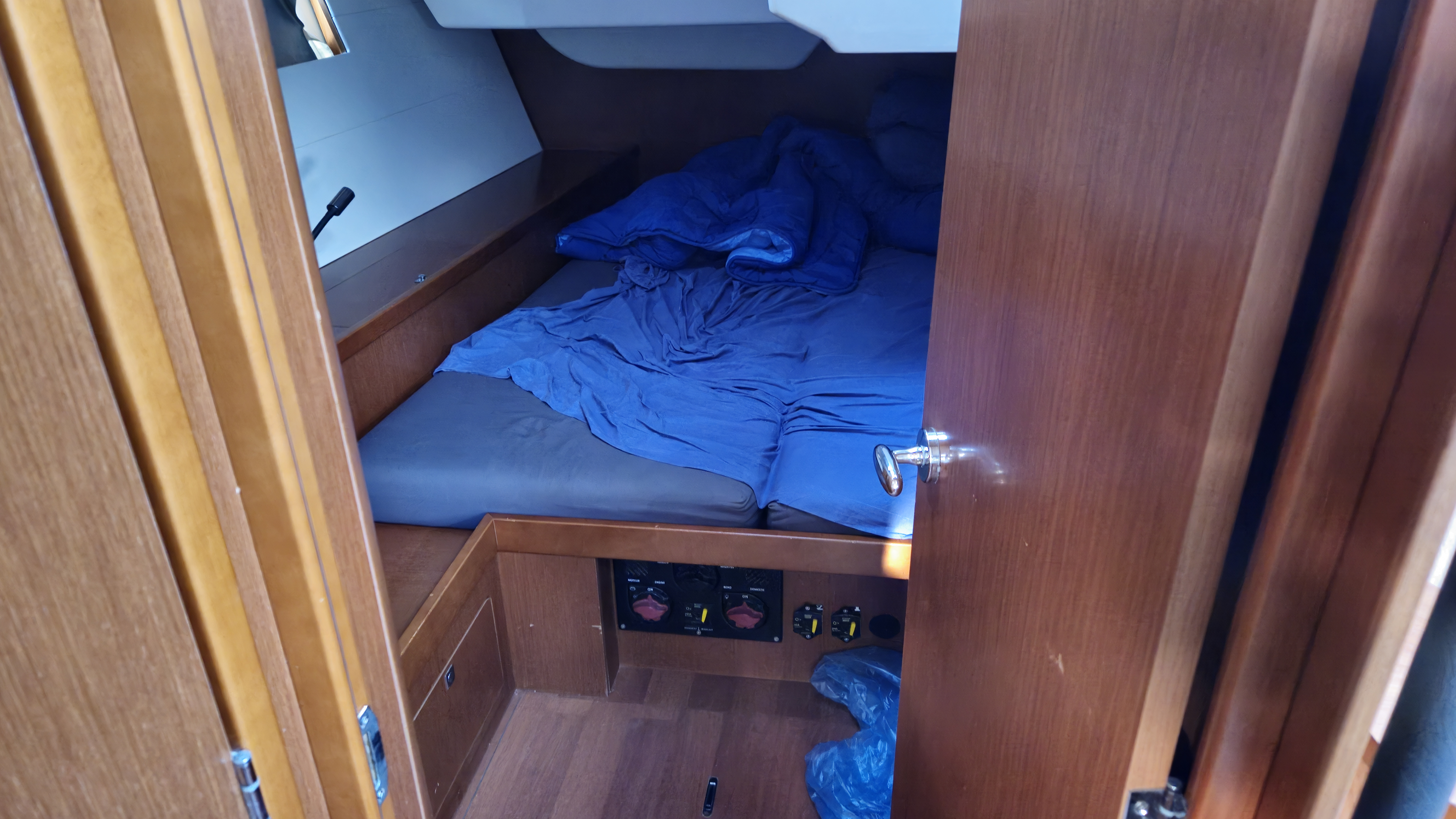 | Navigation | Barometer, Echolot, Fernglas, GPS mit Kartenplotter im Cockpit, Hafenhandbücher, Handpeilkompass, Kompass, Sumlog, Windmesser |