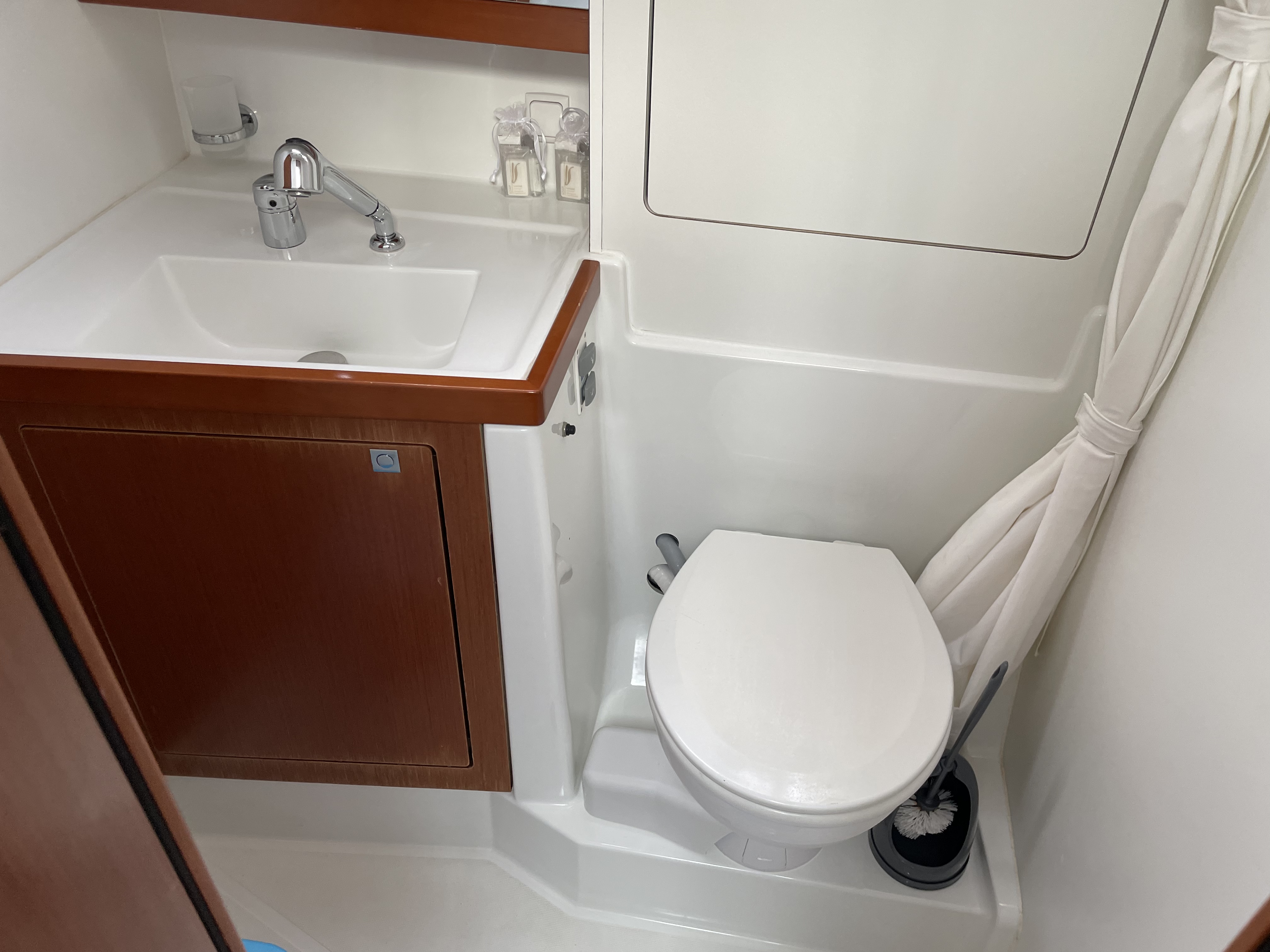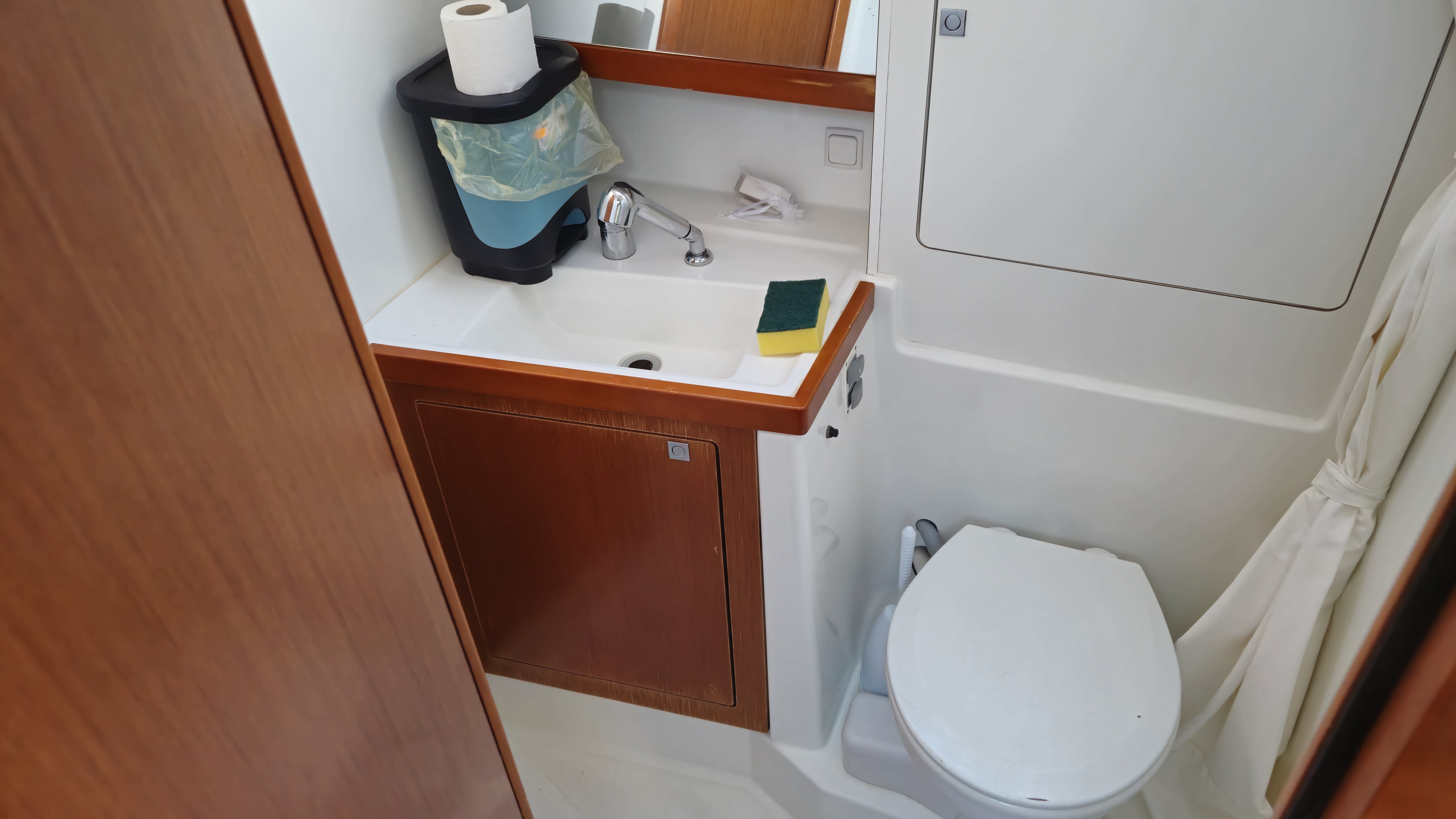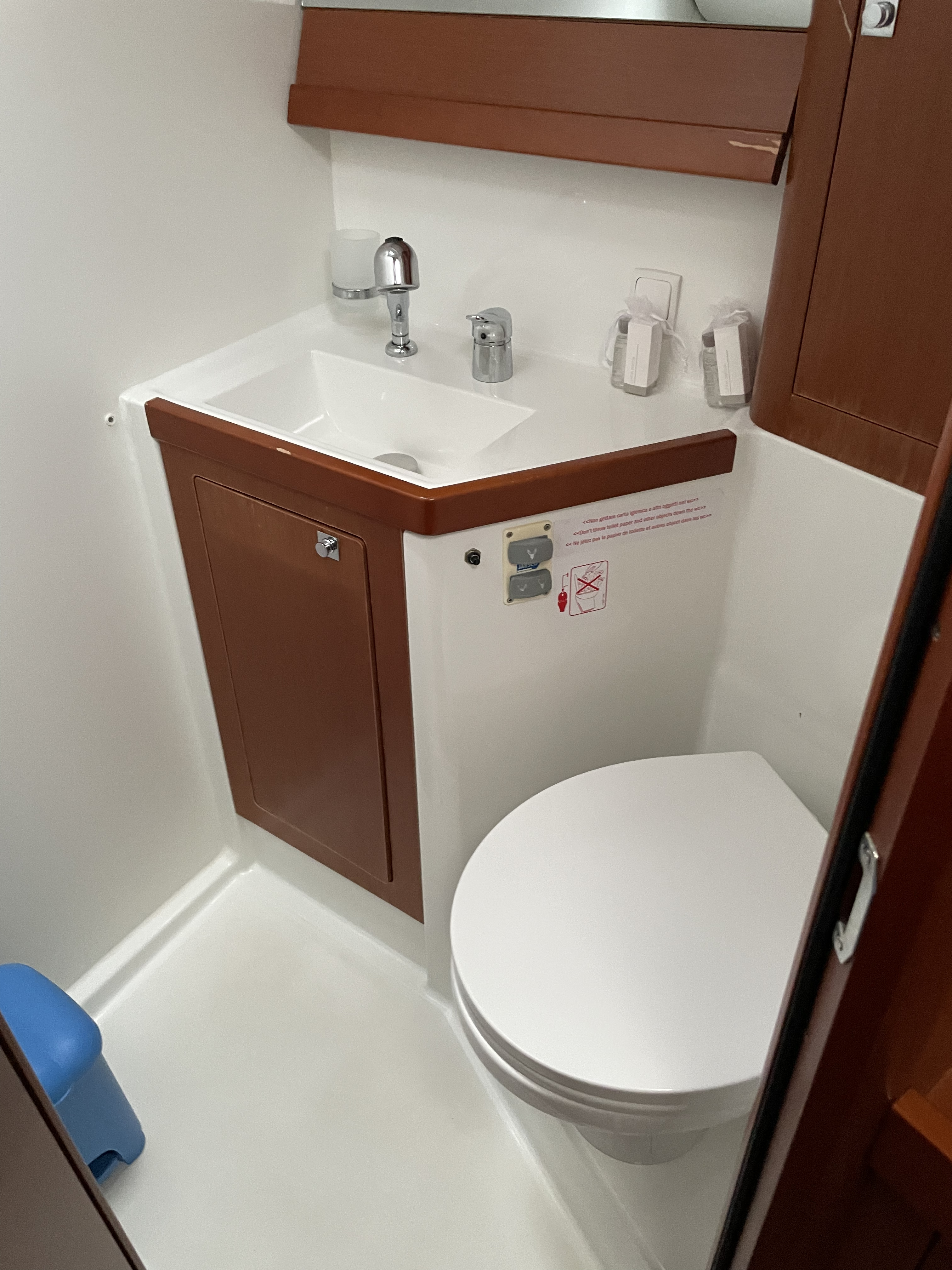 Nachdem wir die Jacht übernommen hatten, stellte sich nach 15 sm, dass zwei der 3 Rückhaltetanks verstopft waren. Nach Nutzung des WC viel trotz offener Ventile der Ausfluss durch den Überlauf auf. Nach Kontaktaufnahme mit der Basis. Kam man uns aber sofort zu Hilfe. Man fuhr uns die 15sm hinterher und kam nach einer Stunde. Das Problem wurde auf See zu unserer vollsten Zufriedenheit erledigt.