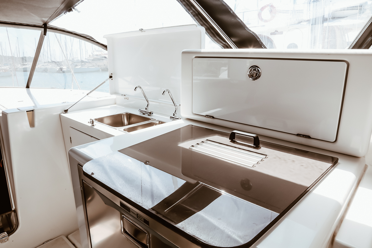 | Outside | Anker mit Kette, Biminitop, Deckbürste, elektr. Ankerwinsch, Fender, Kunststoff-Eimer (Pütz), Sprayhood |