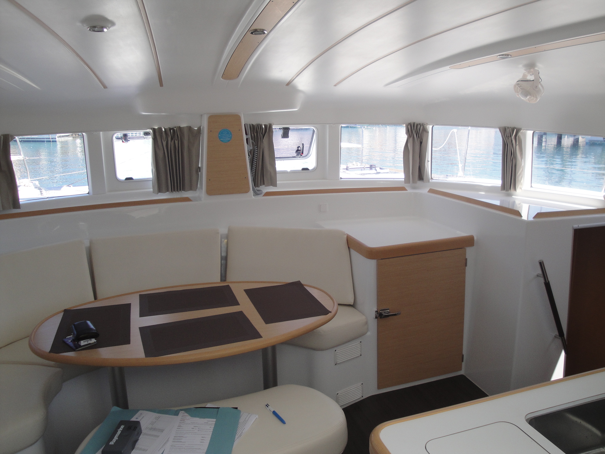 | Outside | Anker mit Kette, Badeleiter, Biminitop, Bootshaken, Cockpitdusche, Cockpittisch, Deckbürste, elektr. Ankerwinsch, Fender, Festmacherleinen, Gangway, Kunststoff-Eimer (Pütz), Wasserschlauch, Winschen |