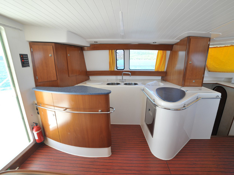| Outside | 220 V-Landanschluss, Anker mit Kette, Badeleiter, Cockpitlautsprecher, Cockpittisch, Deckpolster, elektr. Ankerwinsch, Heckdusche, Lifeline System, Treibanker |