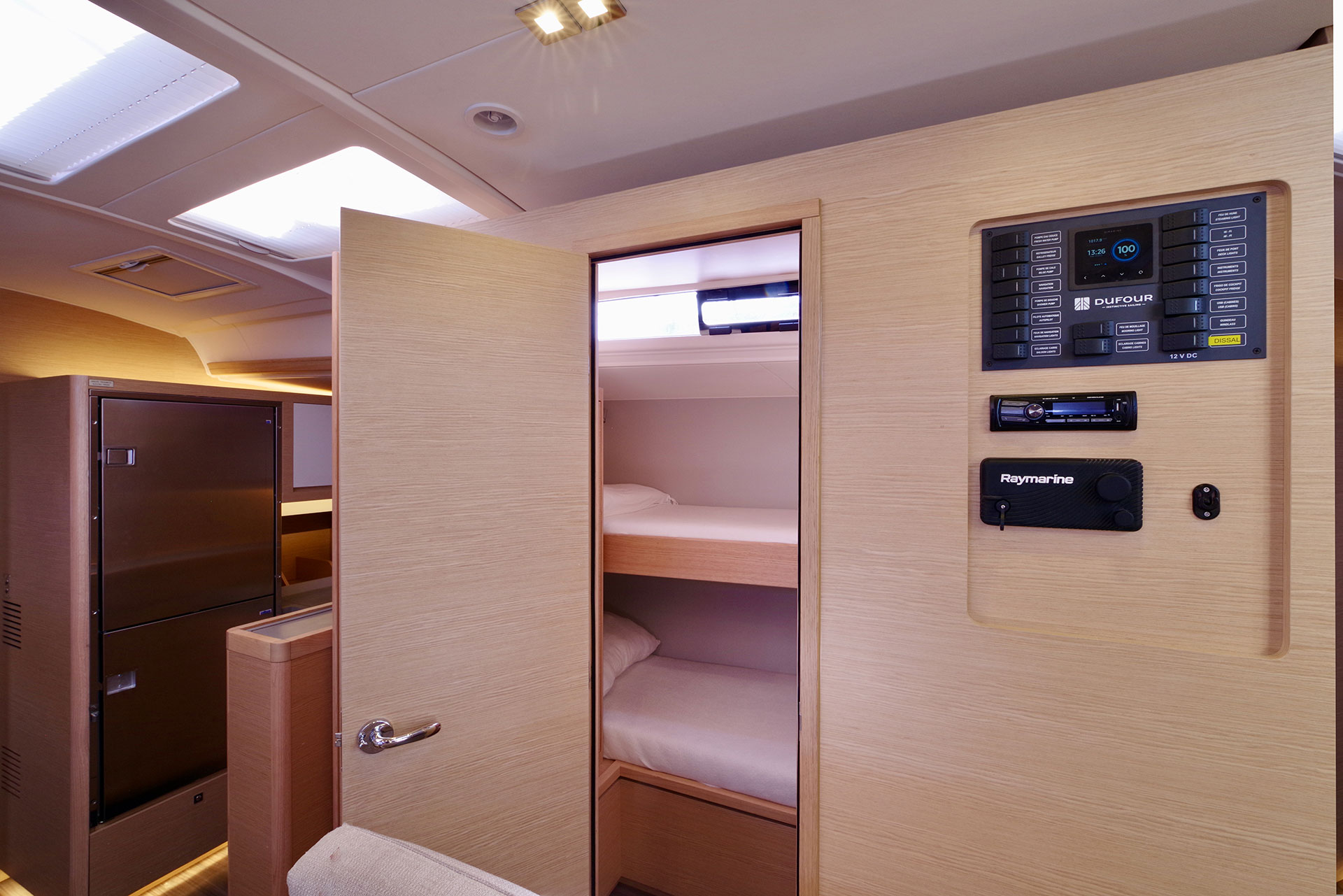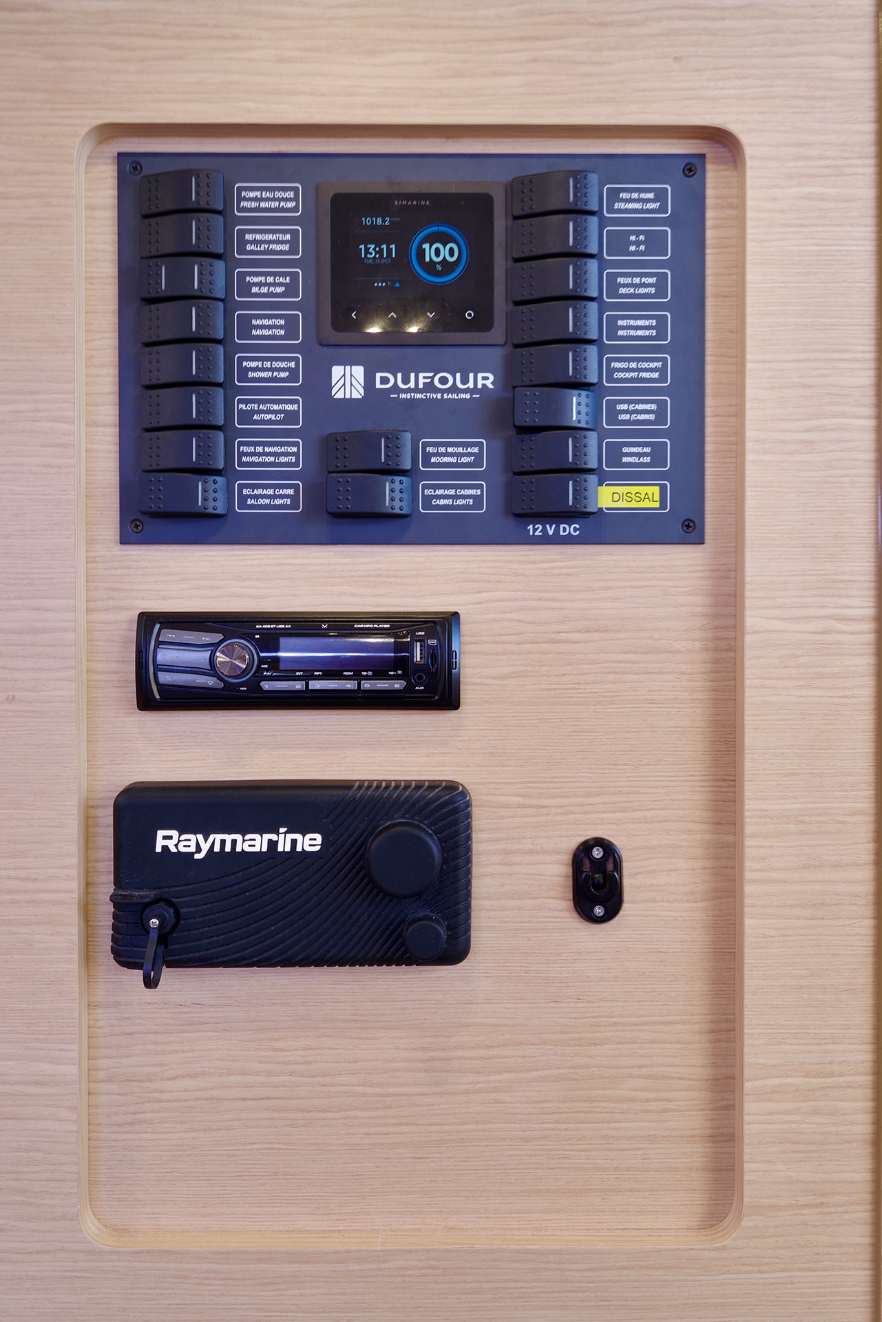| Inside | Inverter 12V/220V, Kühlschrank, Ladegerät, Landstromkabel, Radio, Ventilatoren in Kabinen, Warmwasser, Watermaker, WC (elektr.) |