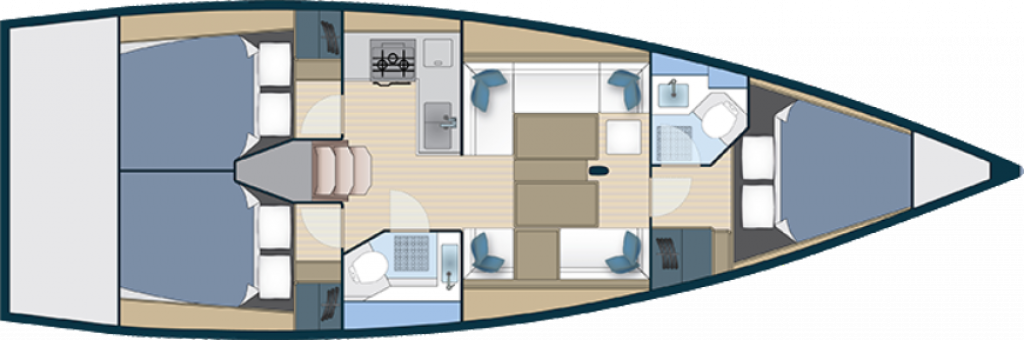 | Kabinen: | 3 | Kojen: | 6+1 |