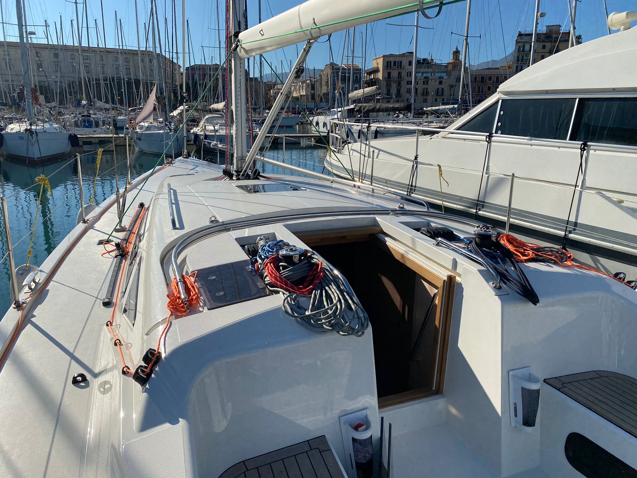 Alles gut, schönes Schiff. Ein Ausrüstungsmangel: dieses Schiff hat nur 2 Reffs im Grosssegel, das ist bei 5 und 6 Bft zu wenig, die Segellatte im Topp des Gross fehlte. Kartenmaterial bescheiden, Karte von Korsika fehlte, Kopie der Yachtpapiere war nicht beglaubigt.