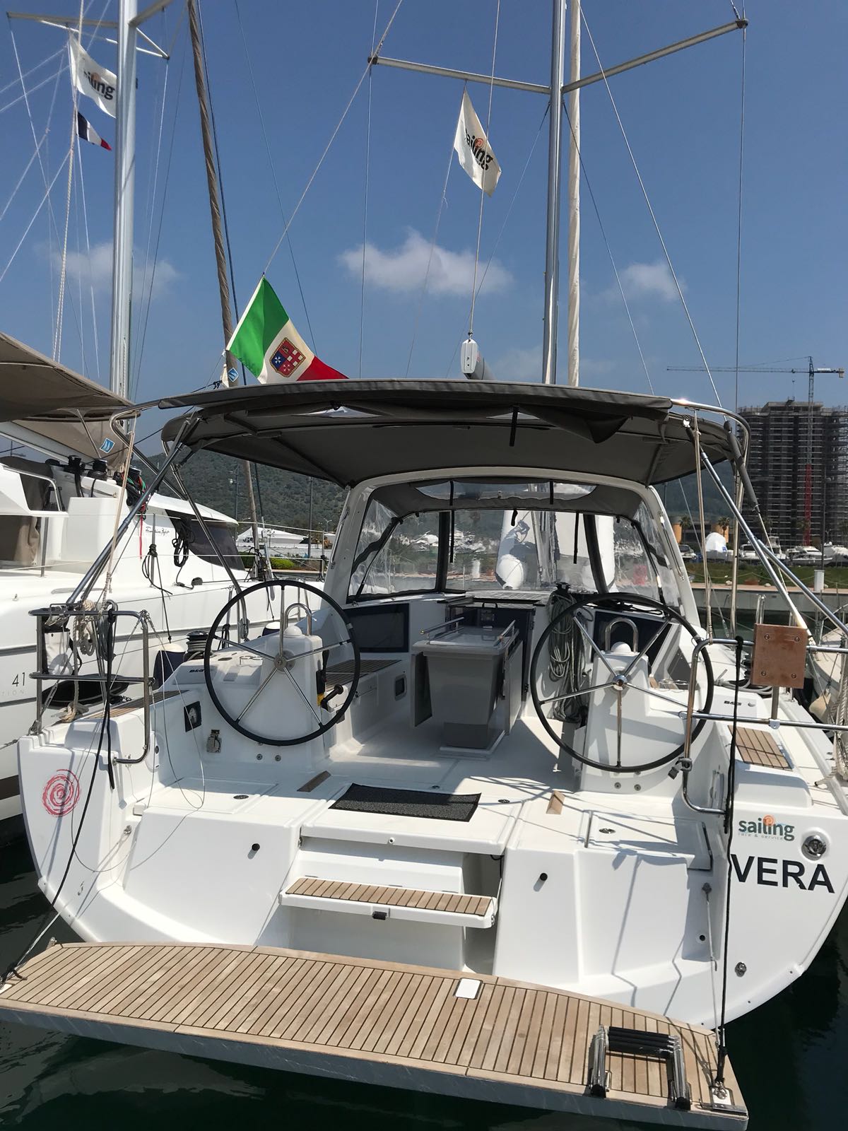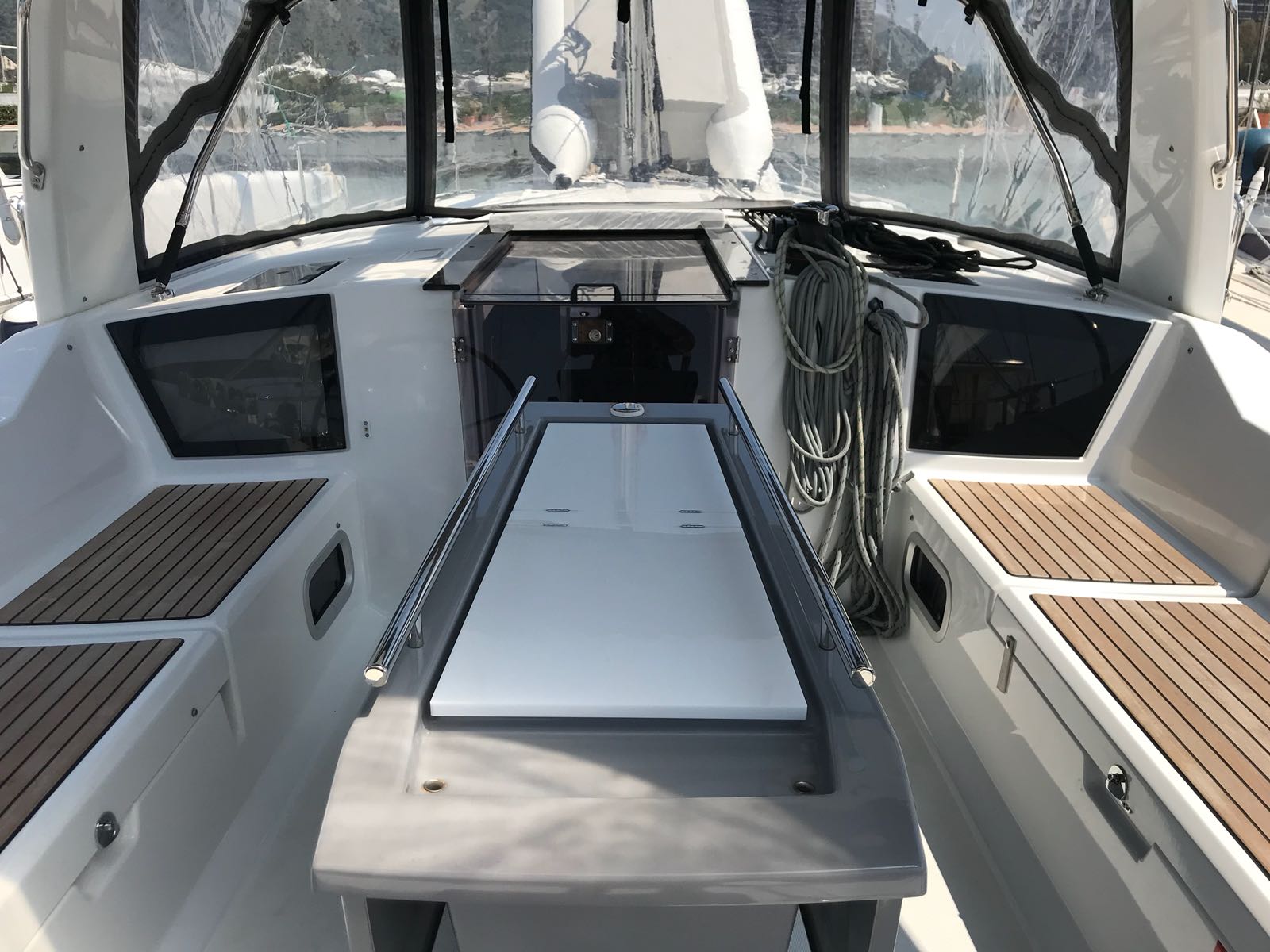| Outside | Biminitop, Bootshaken, Cockpittisch, Fender, Festmacherleinen, Sprayhood, Teak im Cockpit |