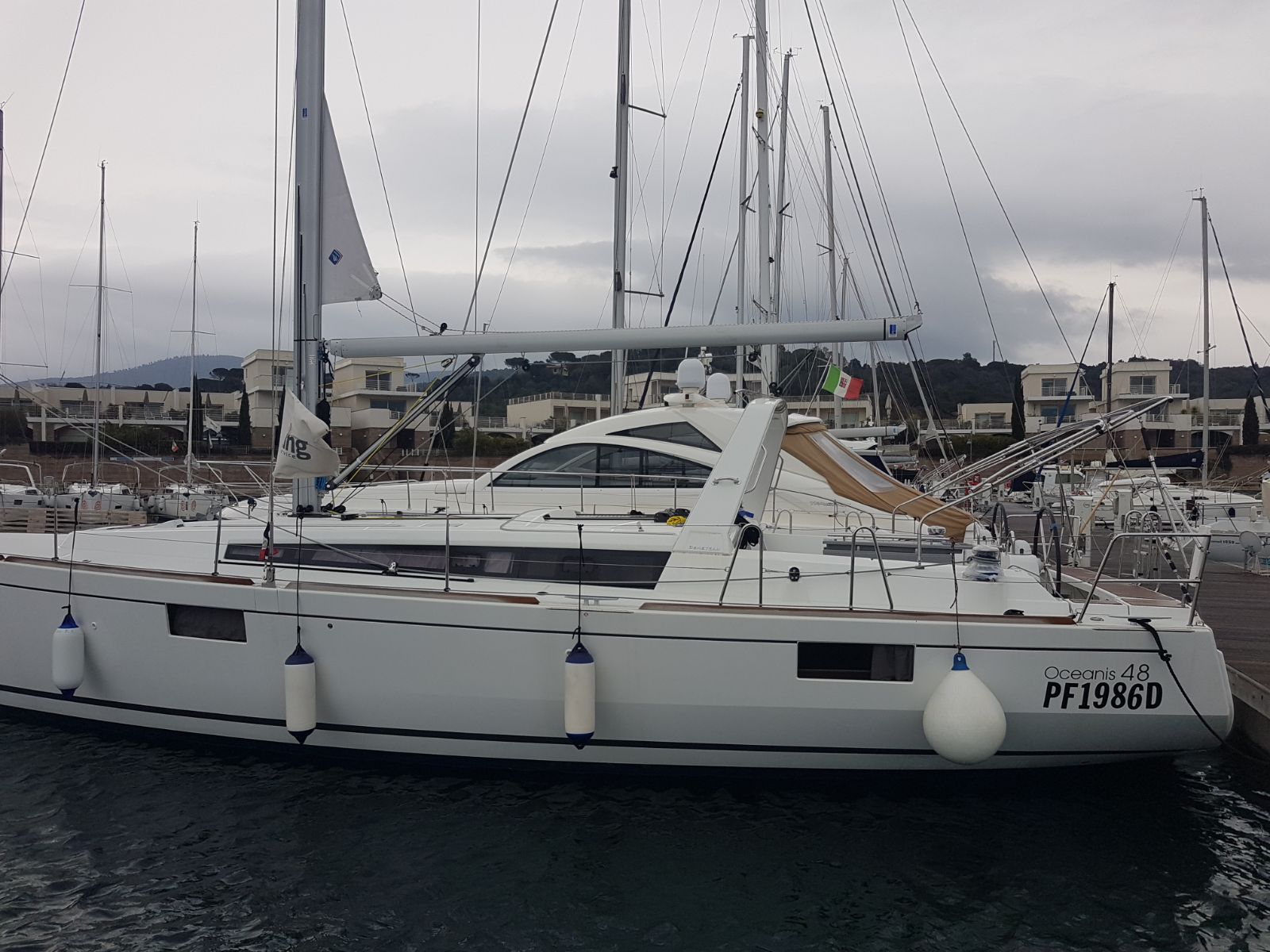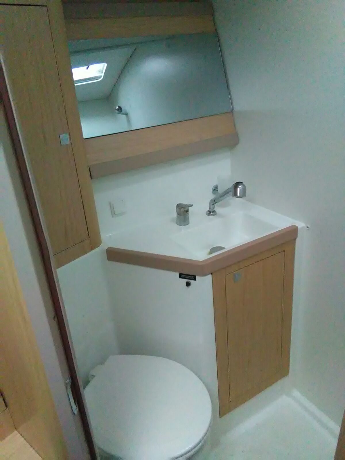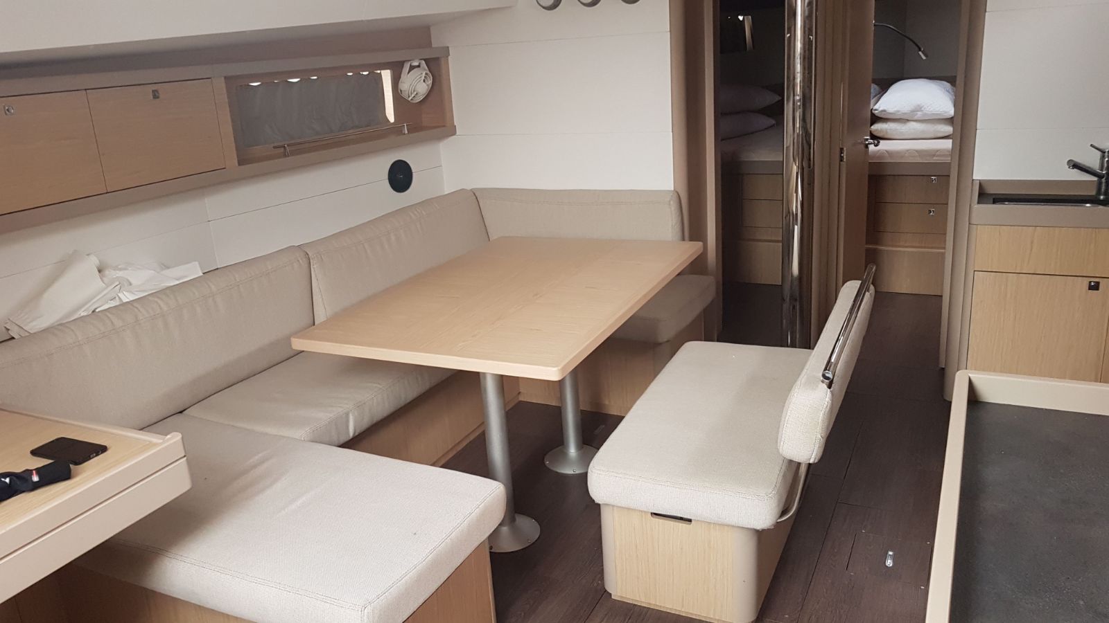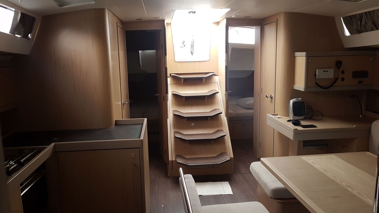 | Outside | Anker mit Kette, Badeleiter, Biminitop, Bootshaken, Cockpitdusche, Cockpitlautsprecher, Cockpittisch, elektr. Ankerwinsch, Festmacherleinen, Sprayhood, Teak im Cockpit, Winschen |