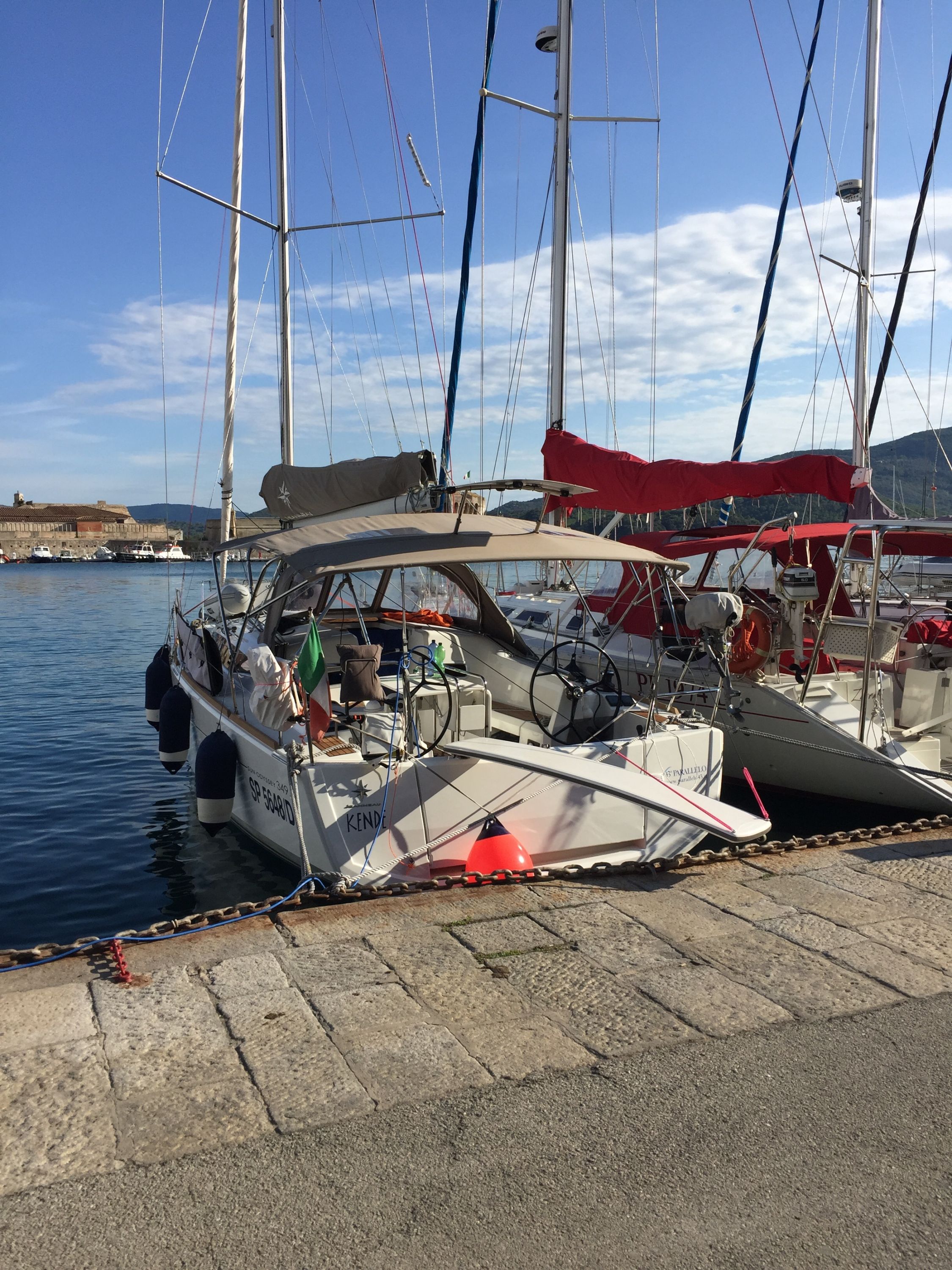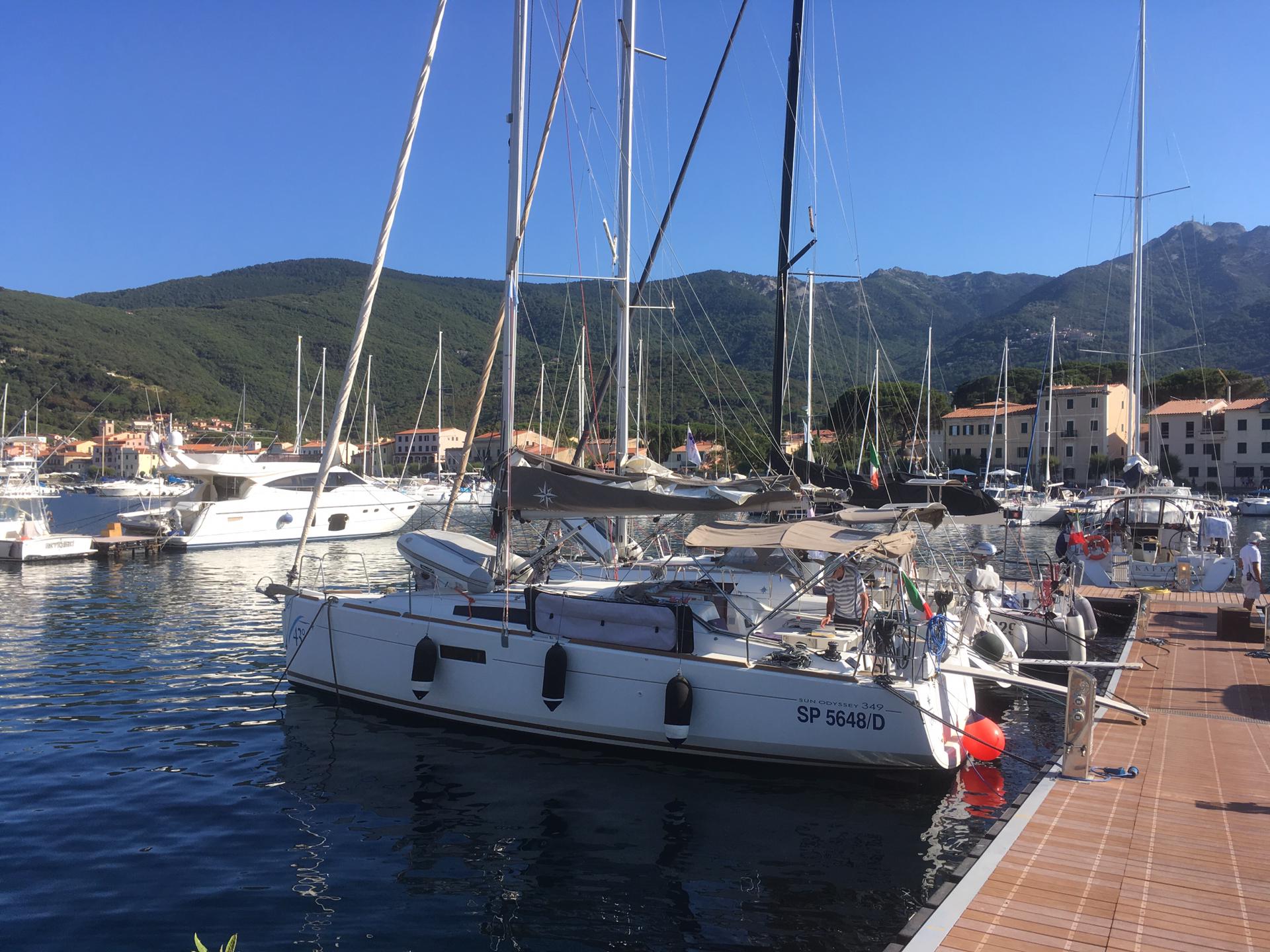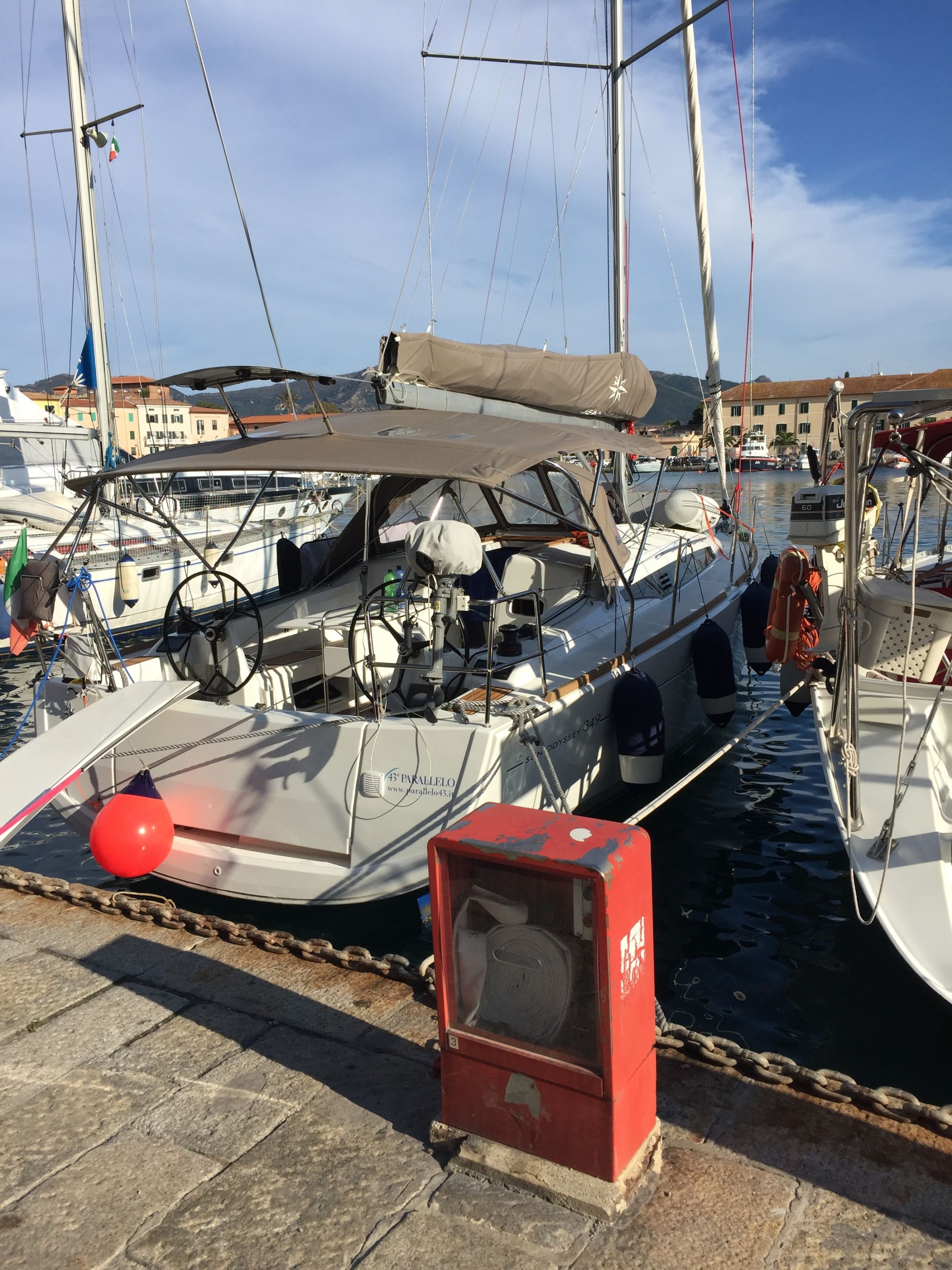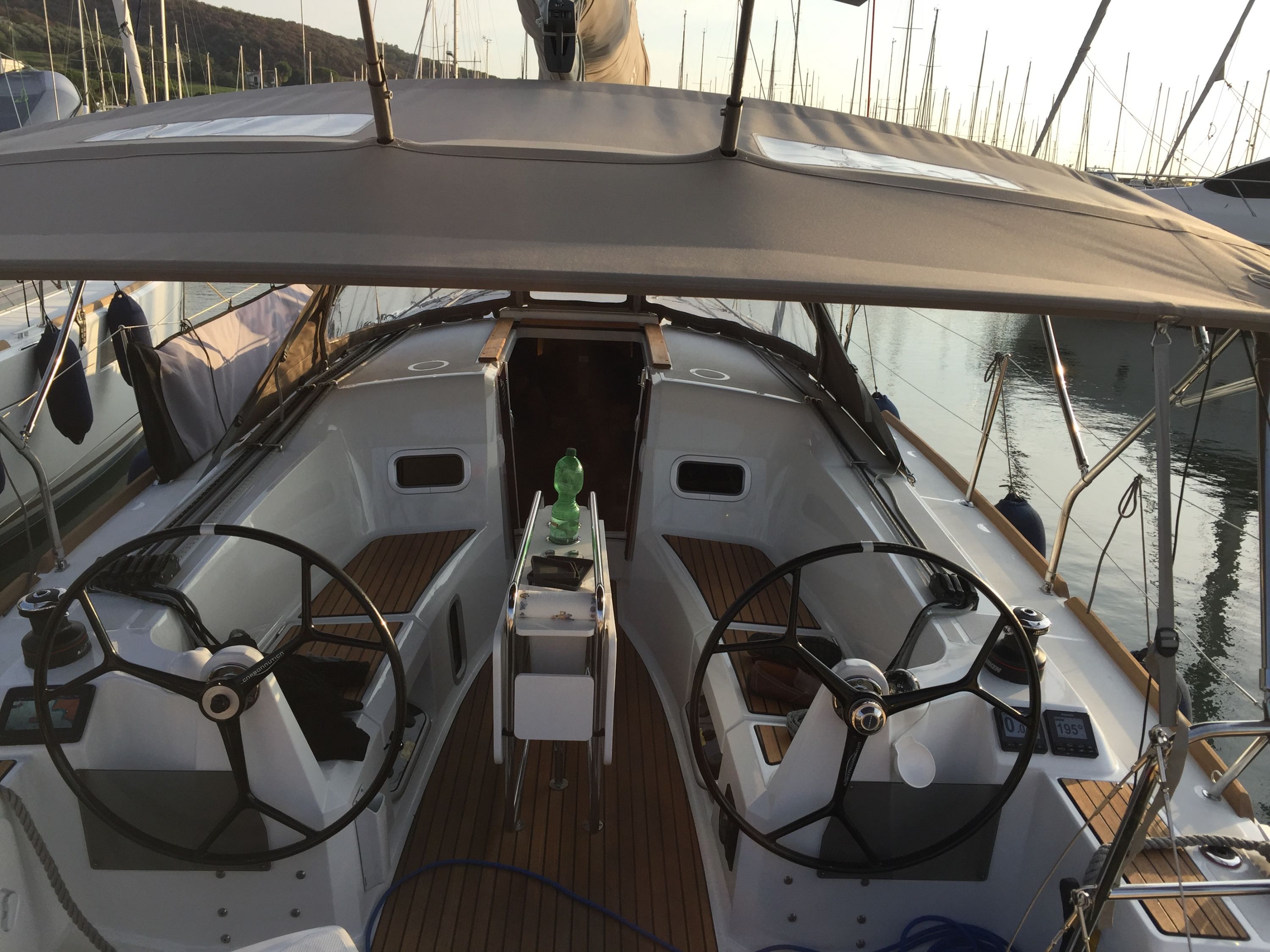 | Outside | 220 V-Landanschluss, Baro-/Hygro-/Thermometer, Biminitop, Cockpitdusche, Cockpitpolster, Cockpittisch, elektr. Ankerwinsch, Gangway, Heckdusche, Solaranlage, Sprayhood, Teak im Cockpit, Windex |