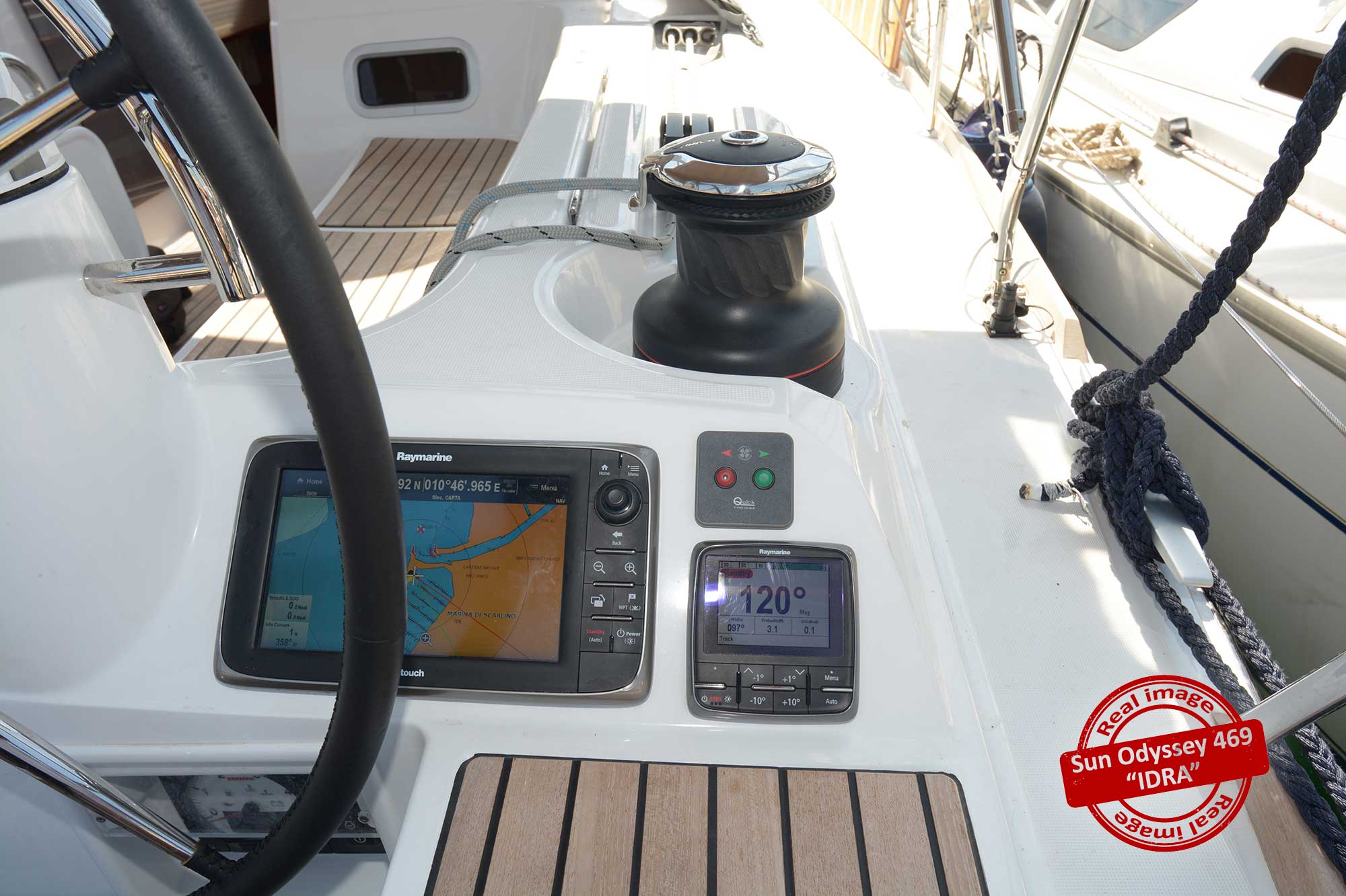 | Navigation | Echolot, GPS mit Kartenplotter im Cockpit, Sumlog, Windmesser |