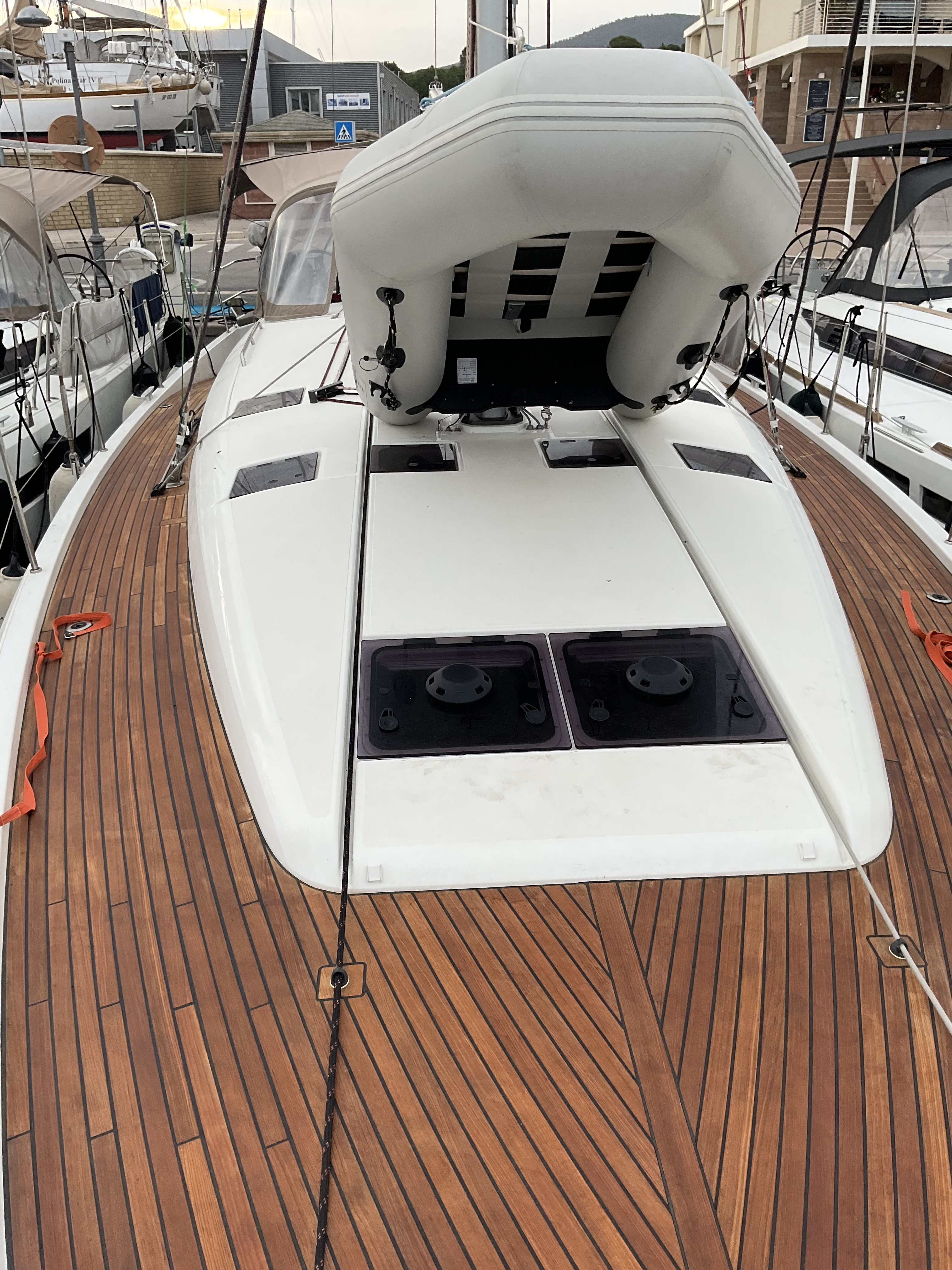 | Safety | Automatikwesten, Autopilot, Bootsmannstuhl, Bordwerkzeug, Bugstrahlruder, Feuerlöscher, Nebelhorn, Notpinne, Notsignale, Radarreflektor, Rettungsinsel, UKW-Funk m. DSC |