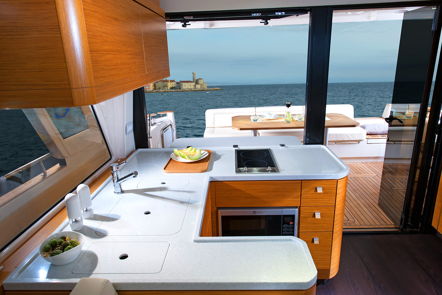 | Outside | Anker mit Kette, Badeplattform, Biminitop, Cockpitkühlschrank, Cockpittisch, elektr. Ankerwinsch, Festmacherleinen, hydraul. Gangway |