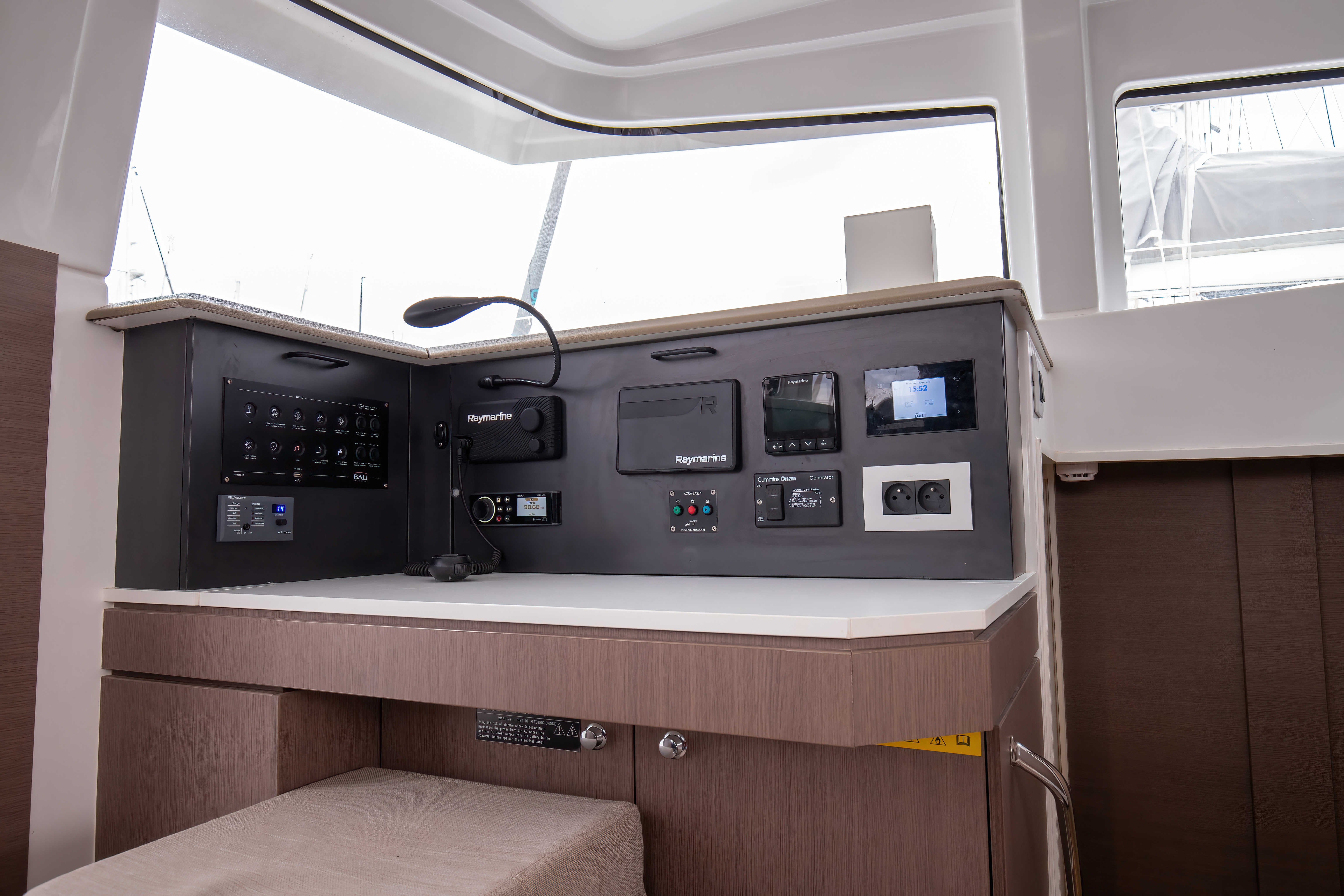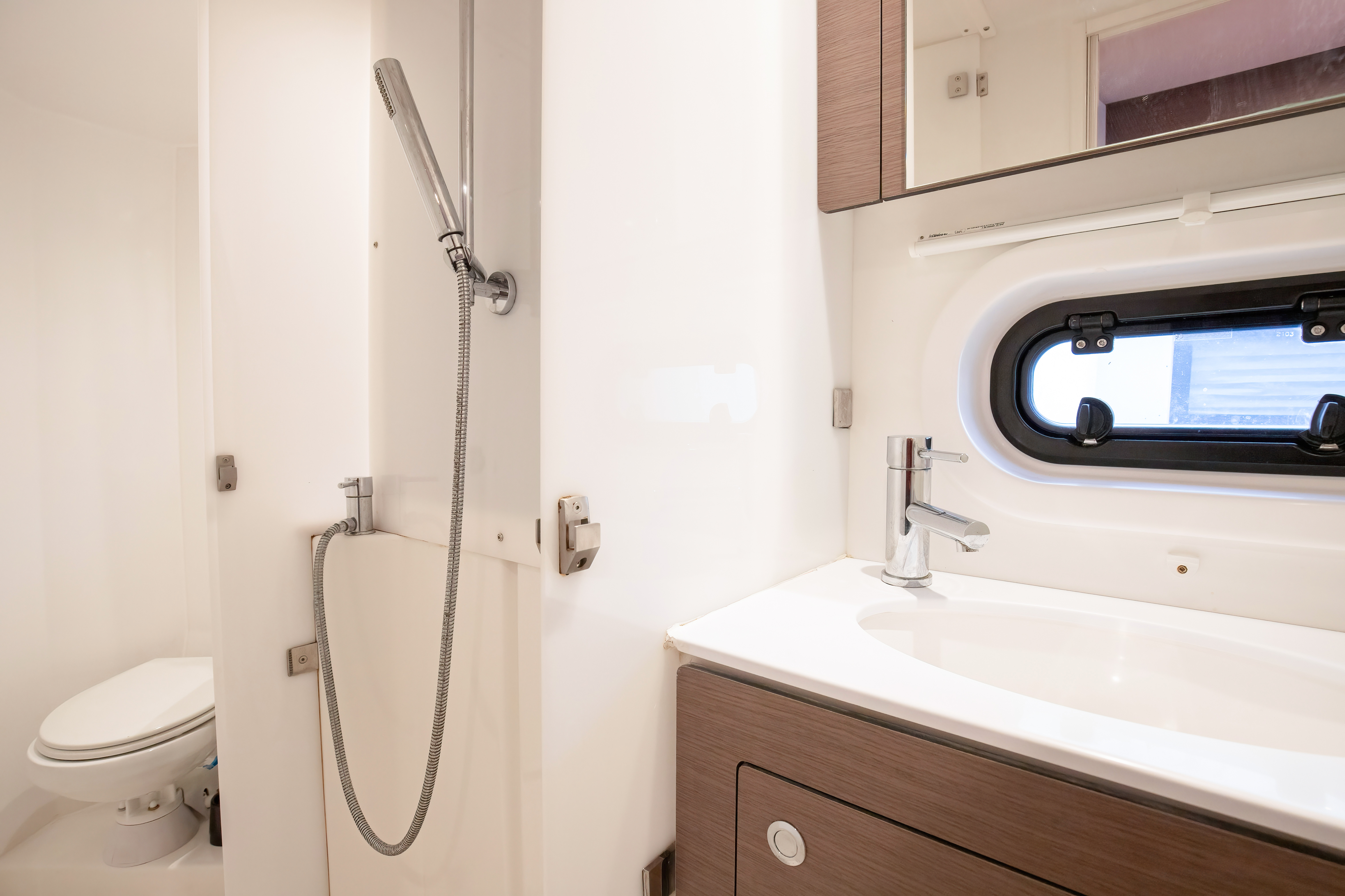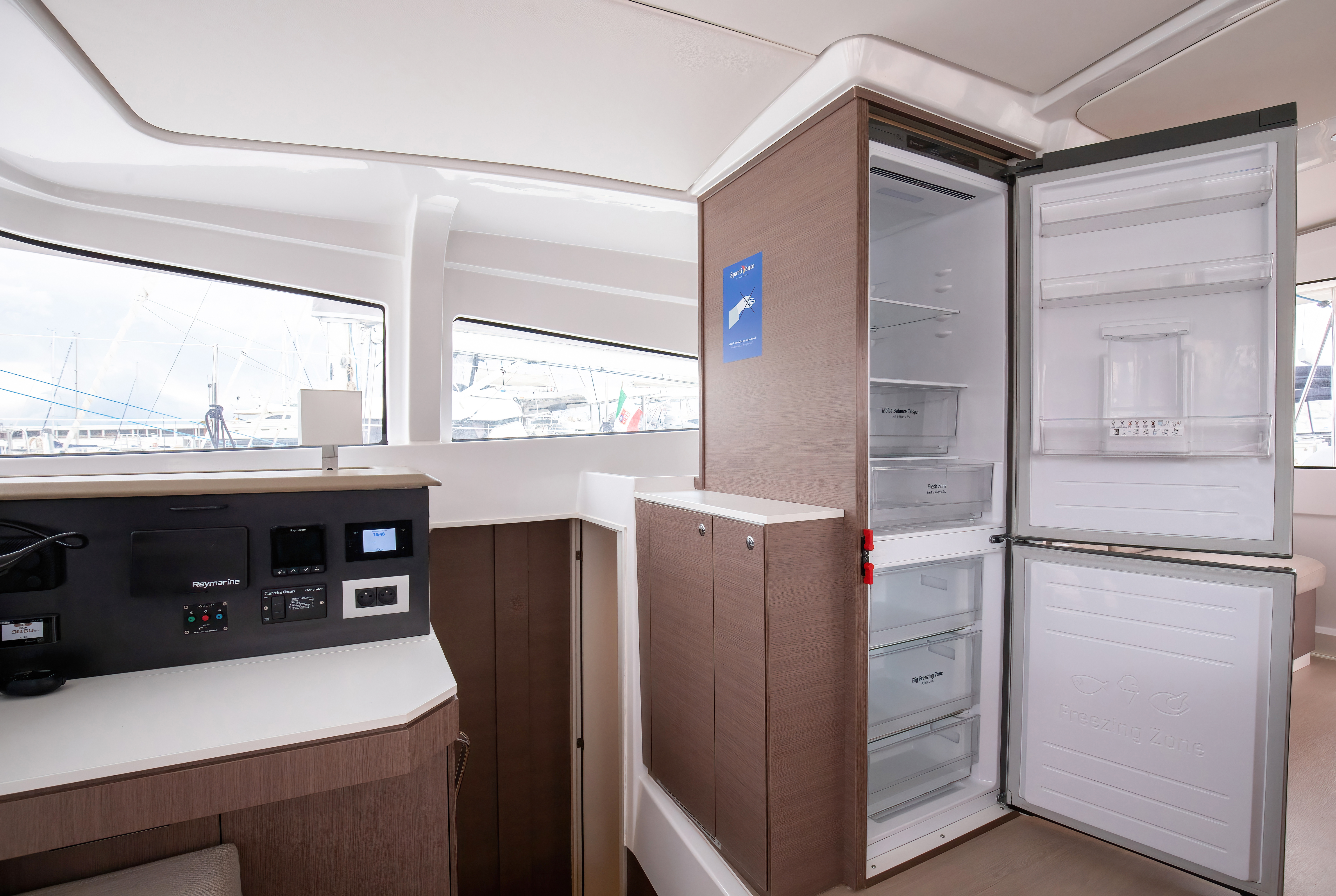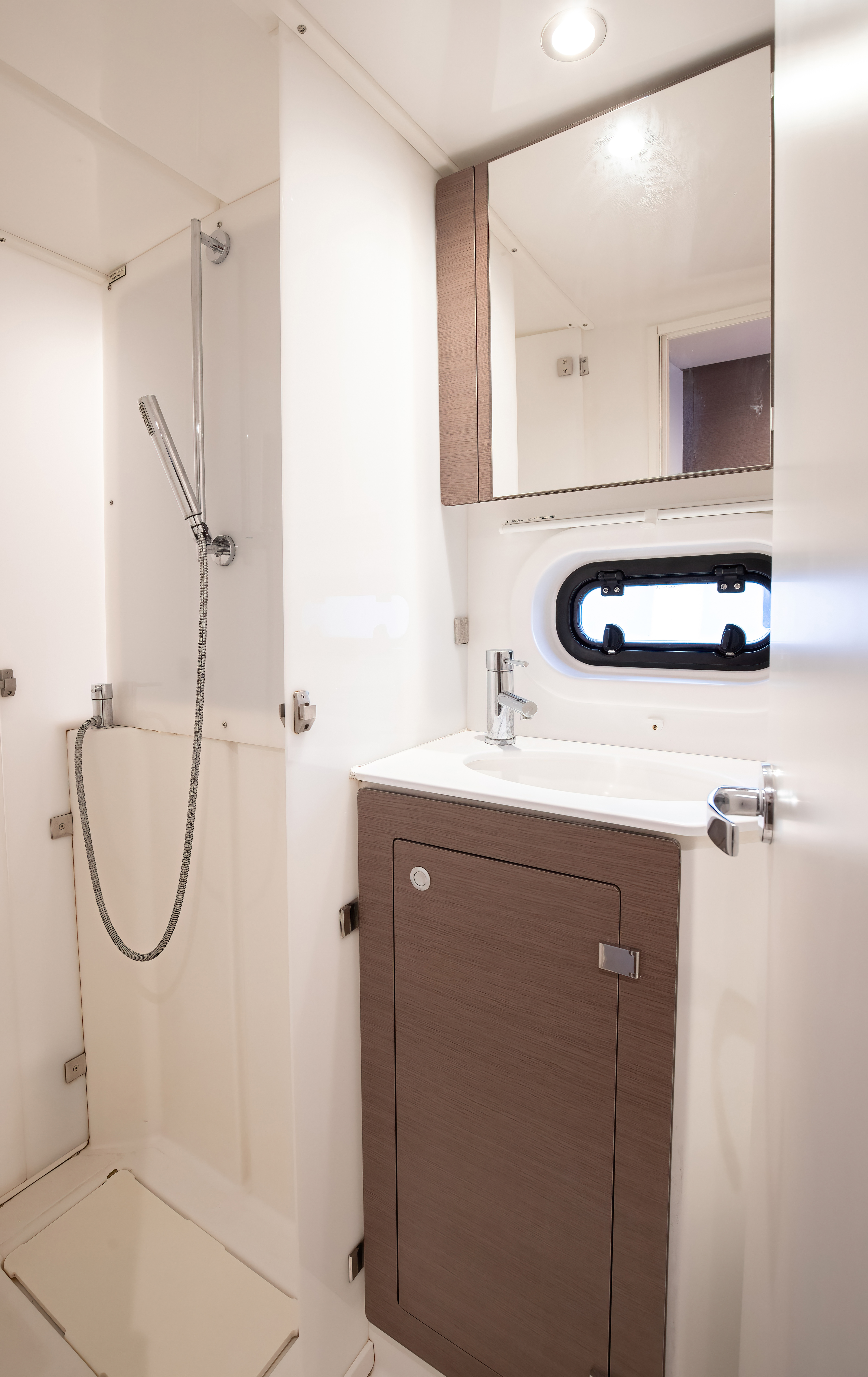 Inside Gasherd mit Backofen, Generator, Inverter 12V/220V, Klimaanlage (ohne Landstrombedarf), Kühlschrank, Landstromkabel, Luftpumpe für Beiboot, Ventilator, Watermaker, WC (elektr.)