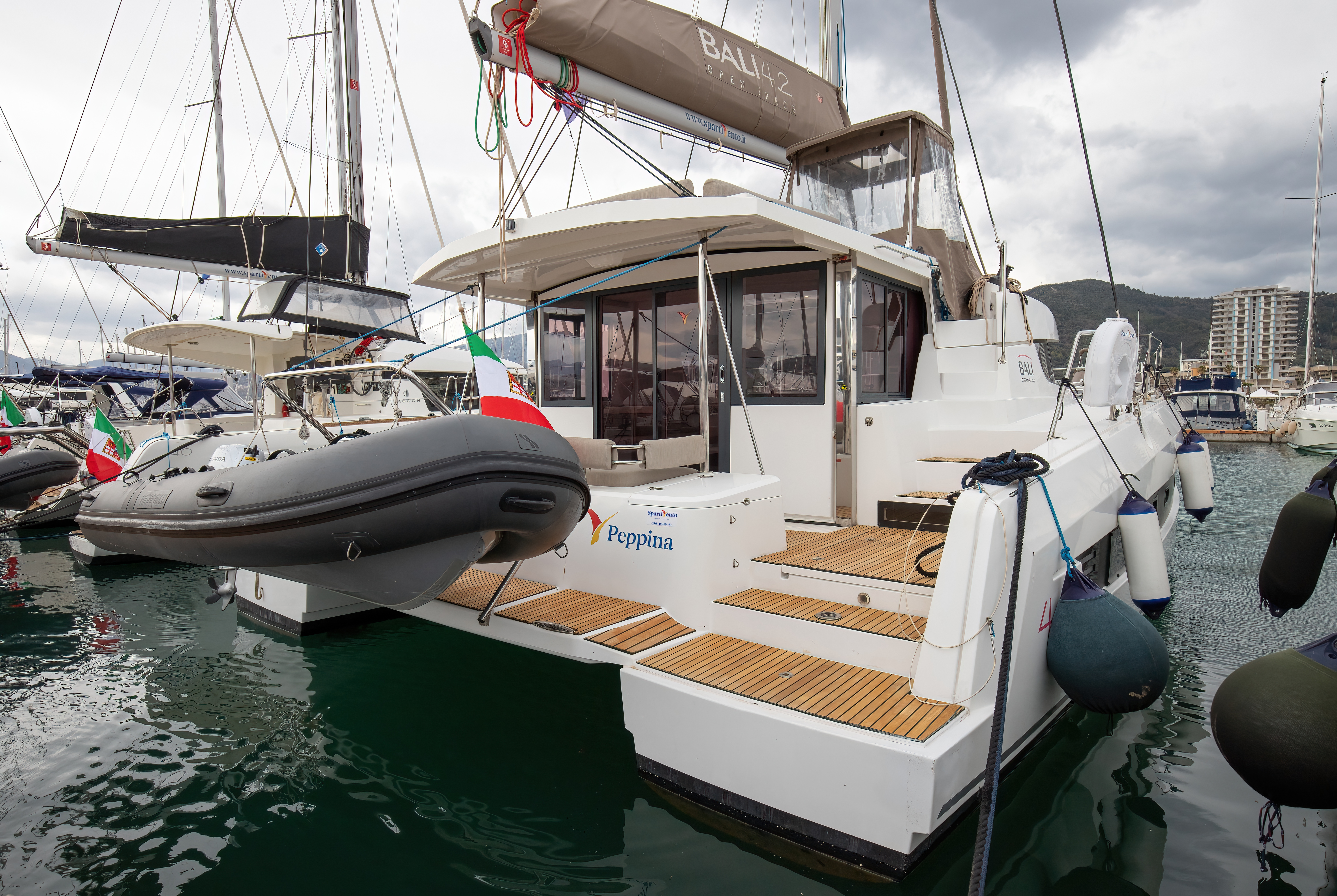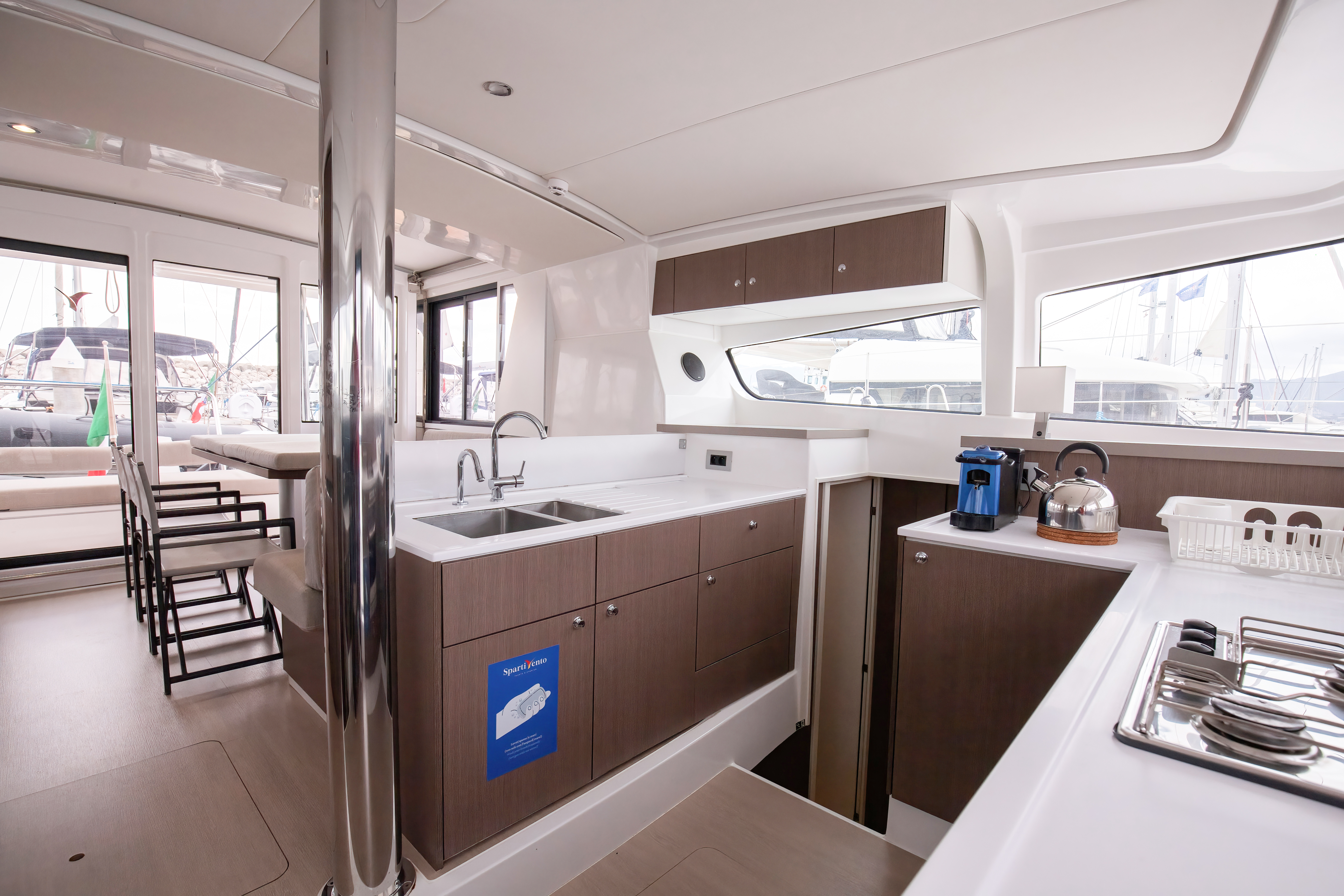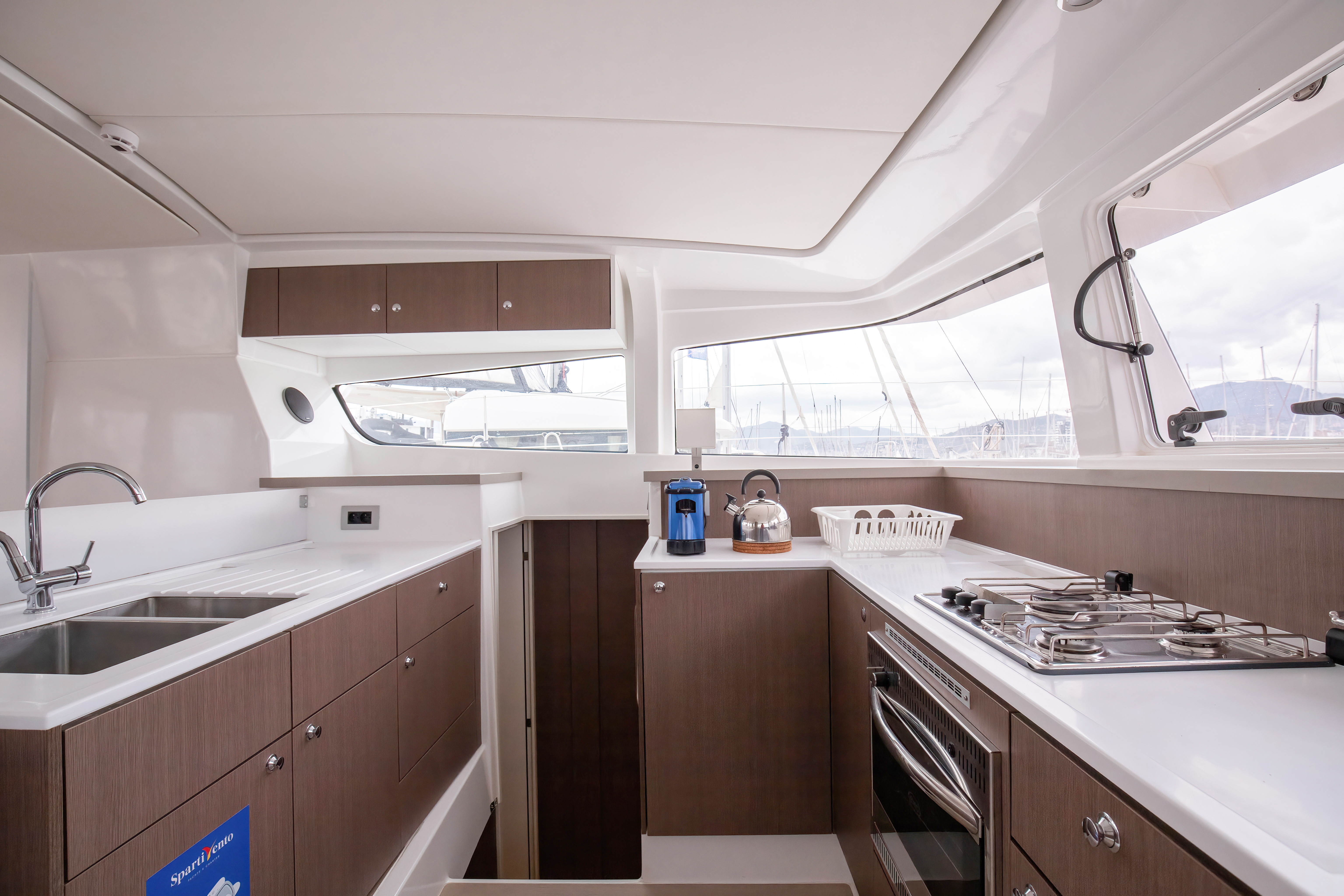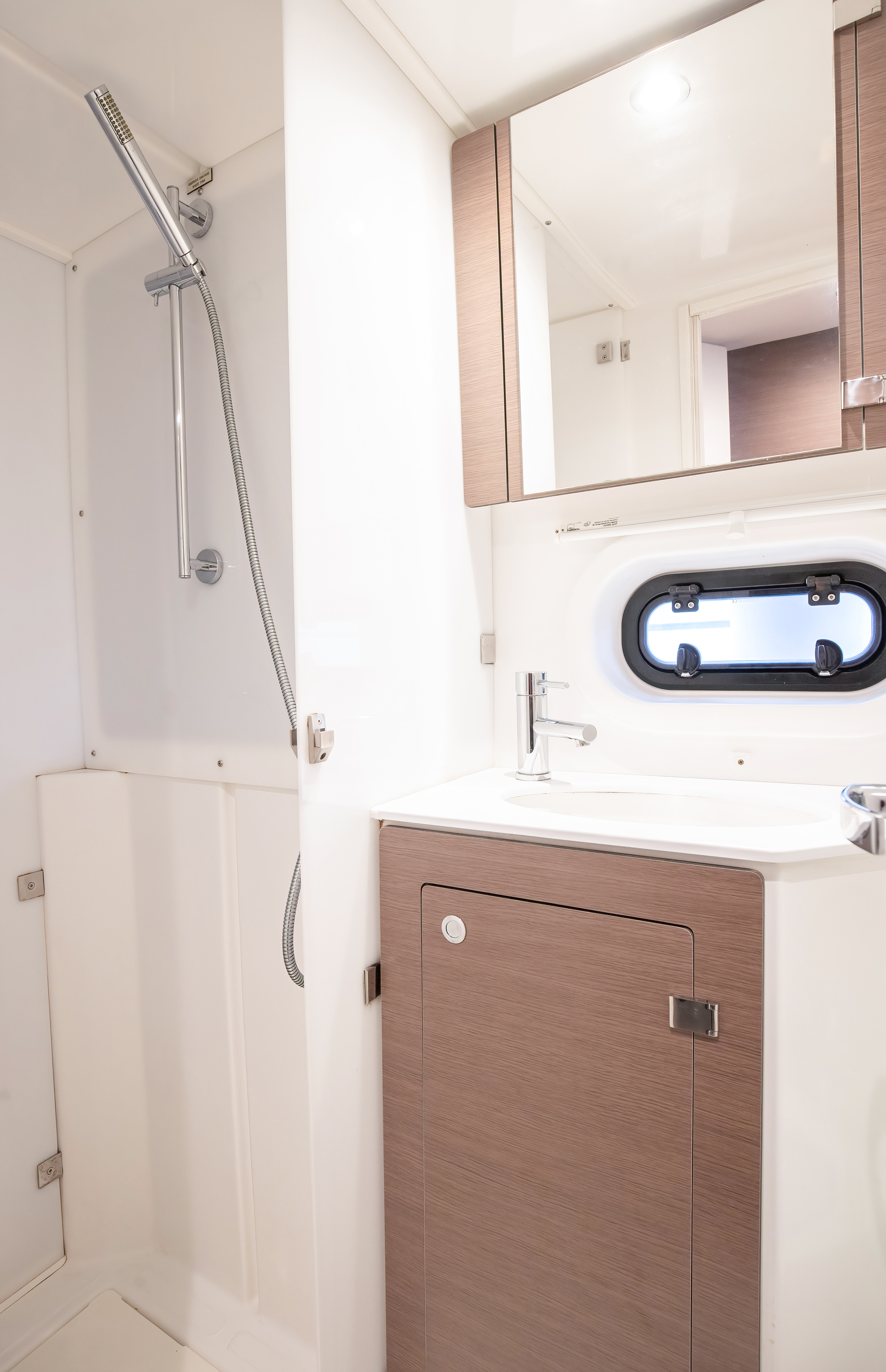 Inside Gasherd mit Backofen, Generator, Inverter 12V/220V, Klimaanlage (ohne Landstrombedarf), Kühlschrank, Landstromkabel, Luftpumpe für Beiboot, Ventilator, Watermaker, WC (elektr.)
