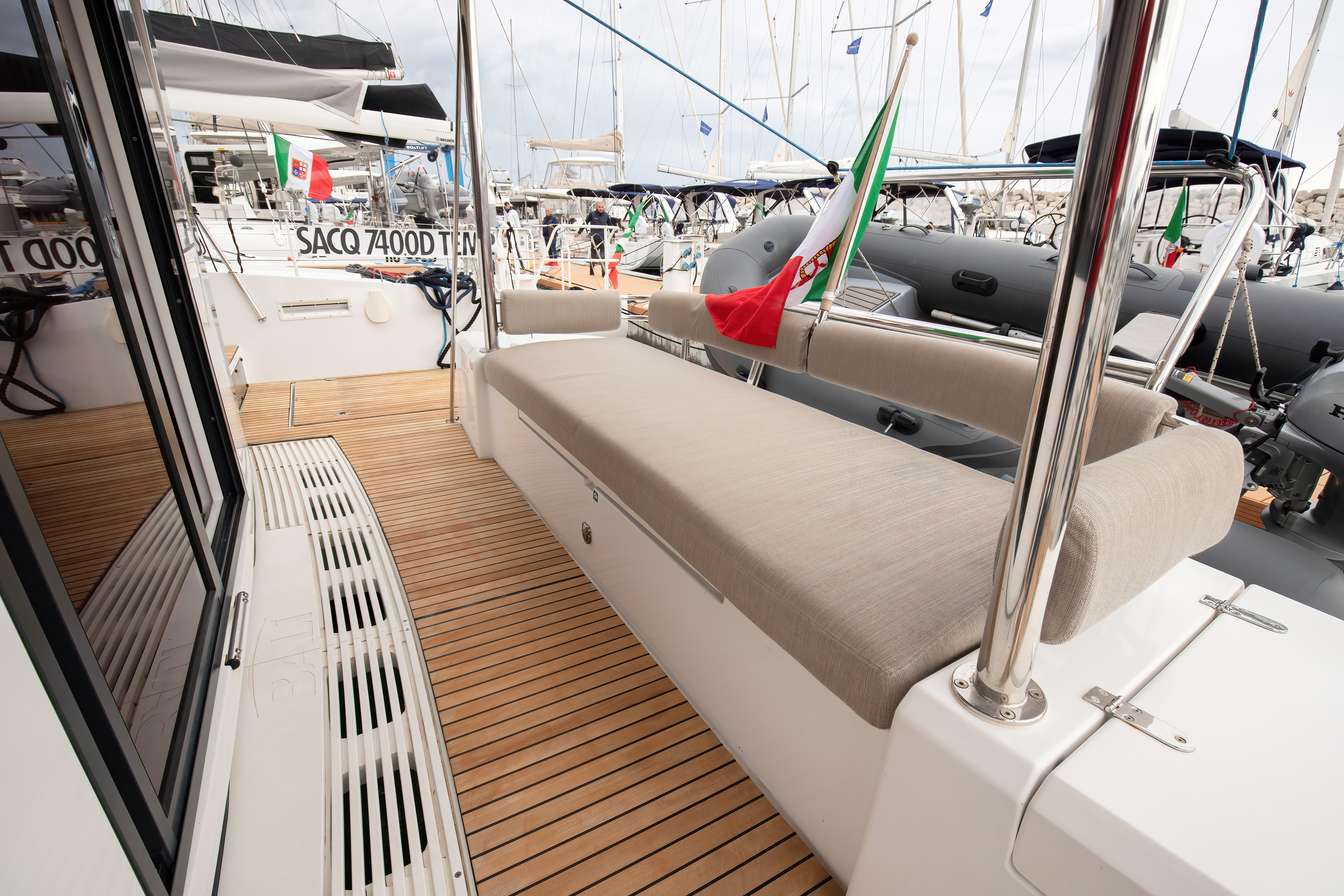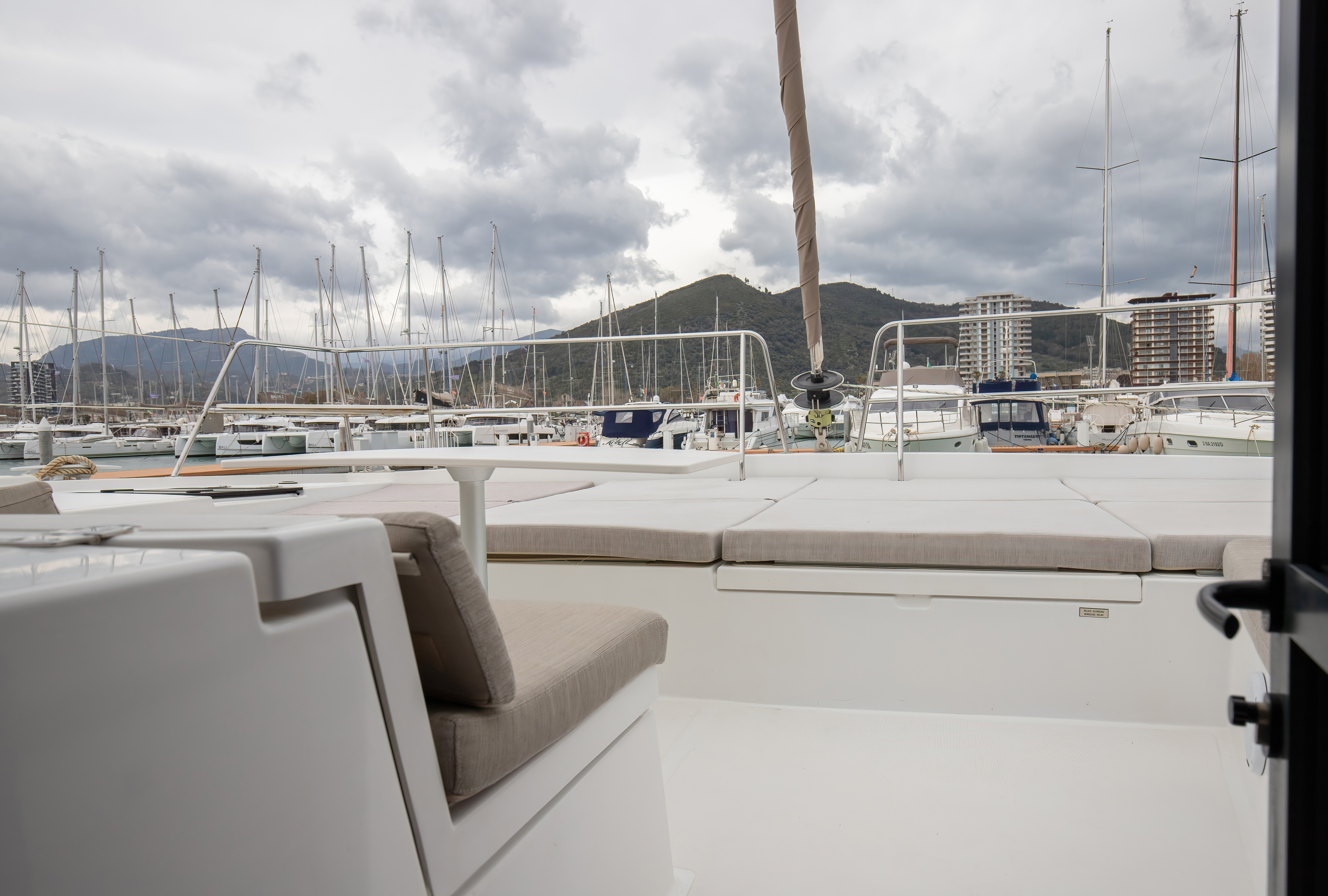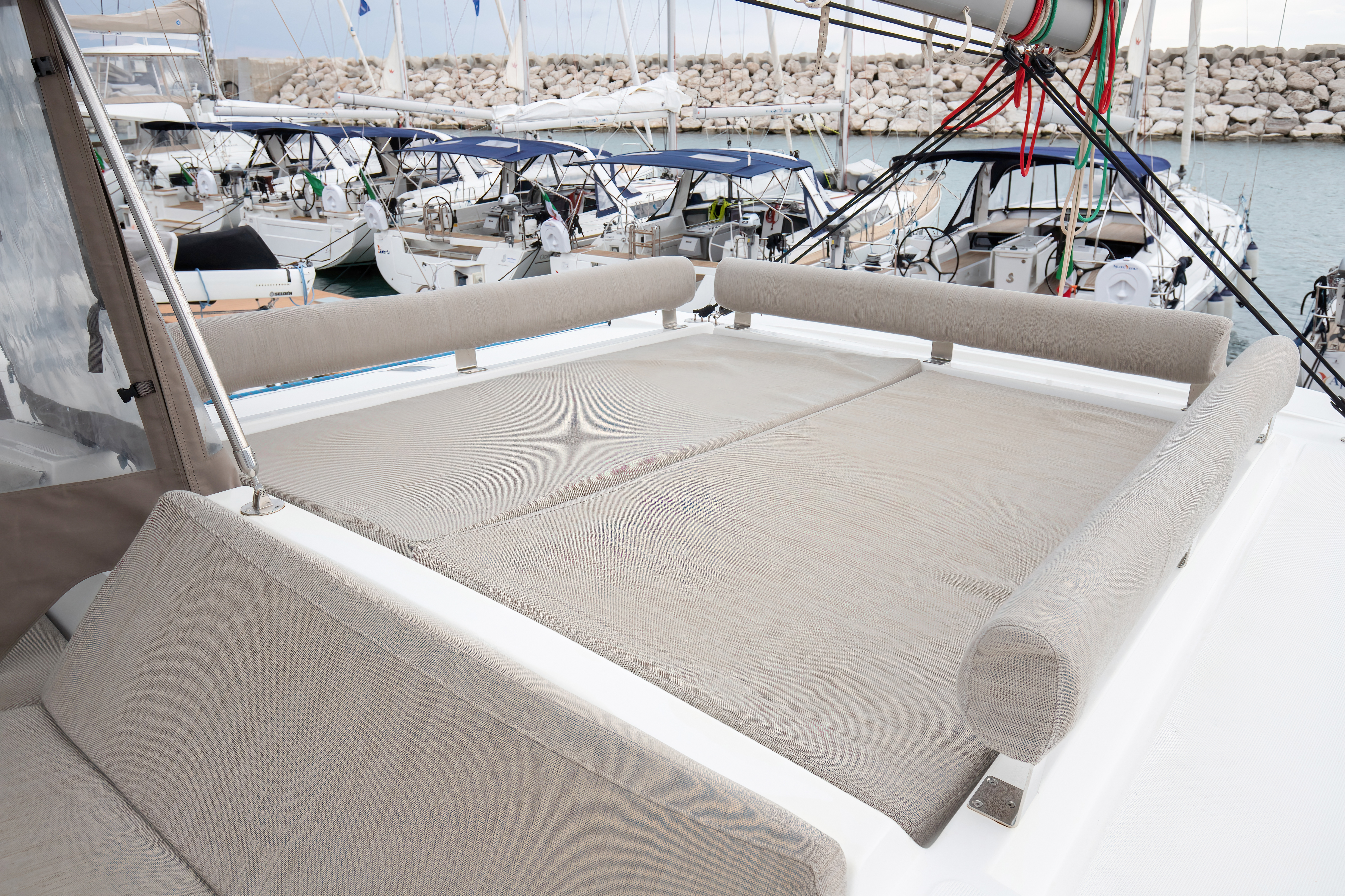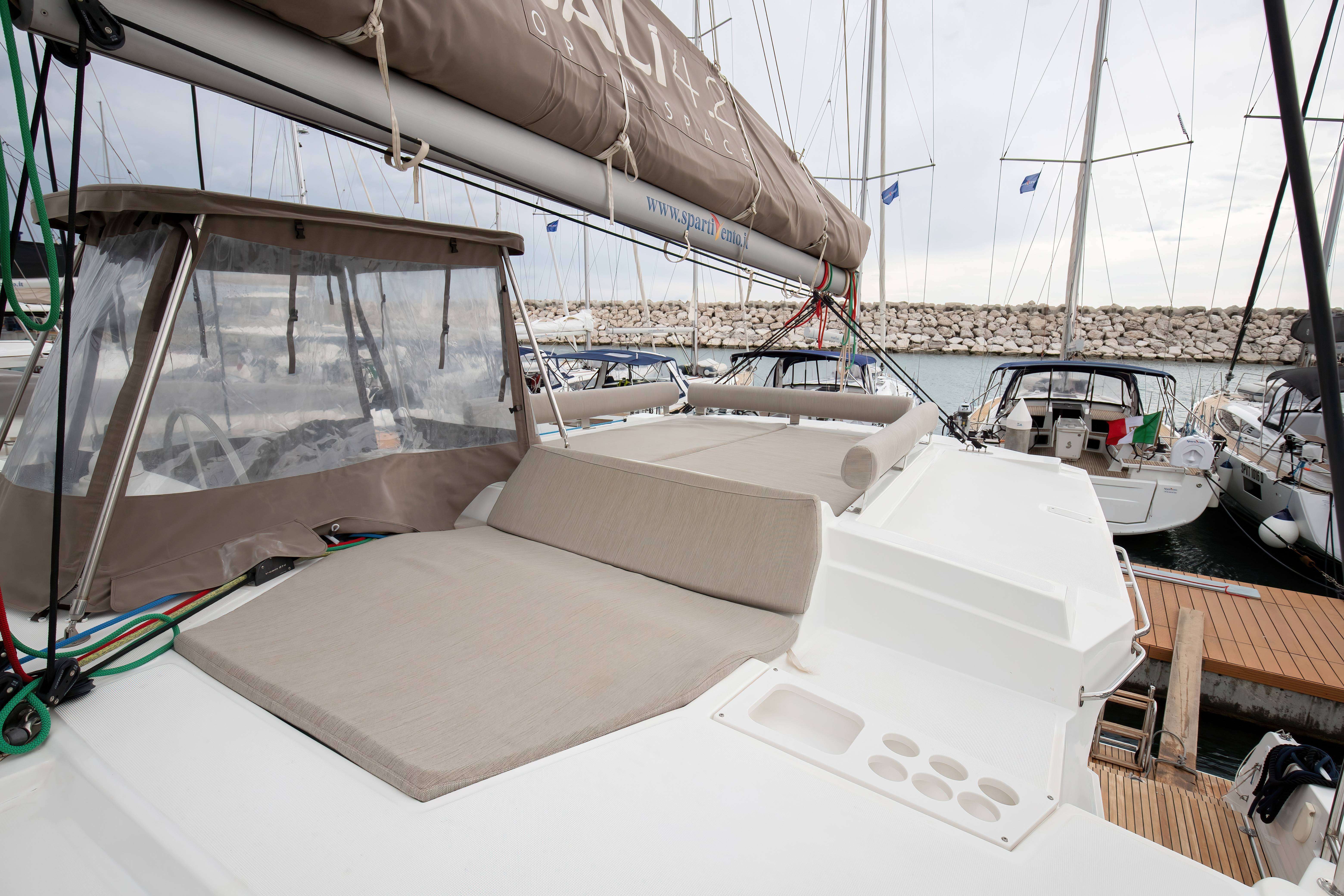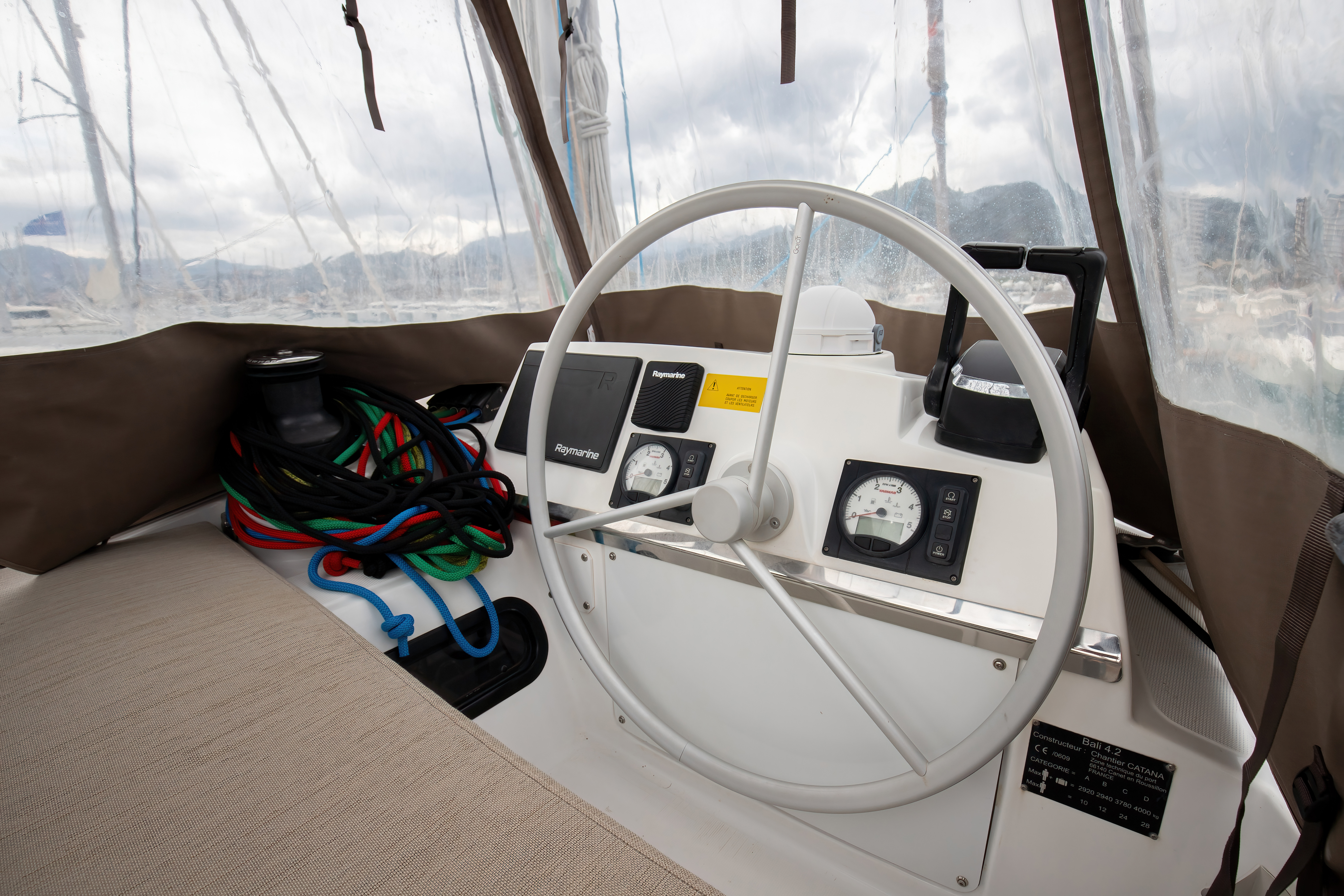 Outside Anker mit Kette, Cockpitdusche, Cockpitlautsprecher, Cockpitpolster, elektr. Ankerwinsch, elektr. Winsch, Flybridge, Gangway, Teak im Cockpit
