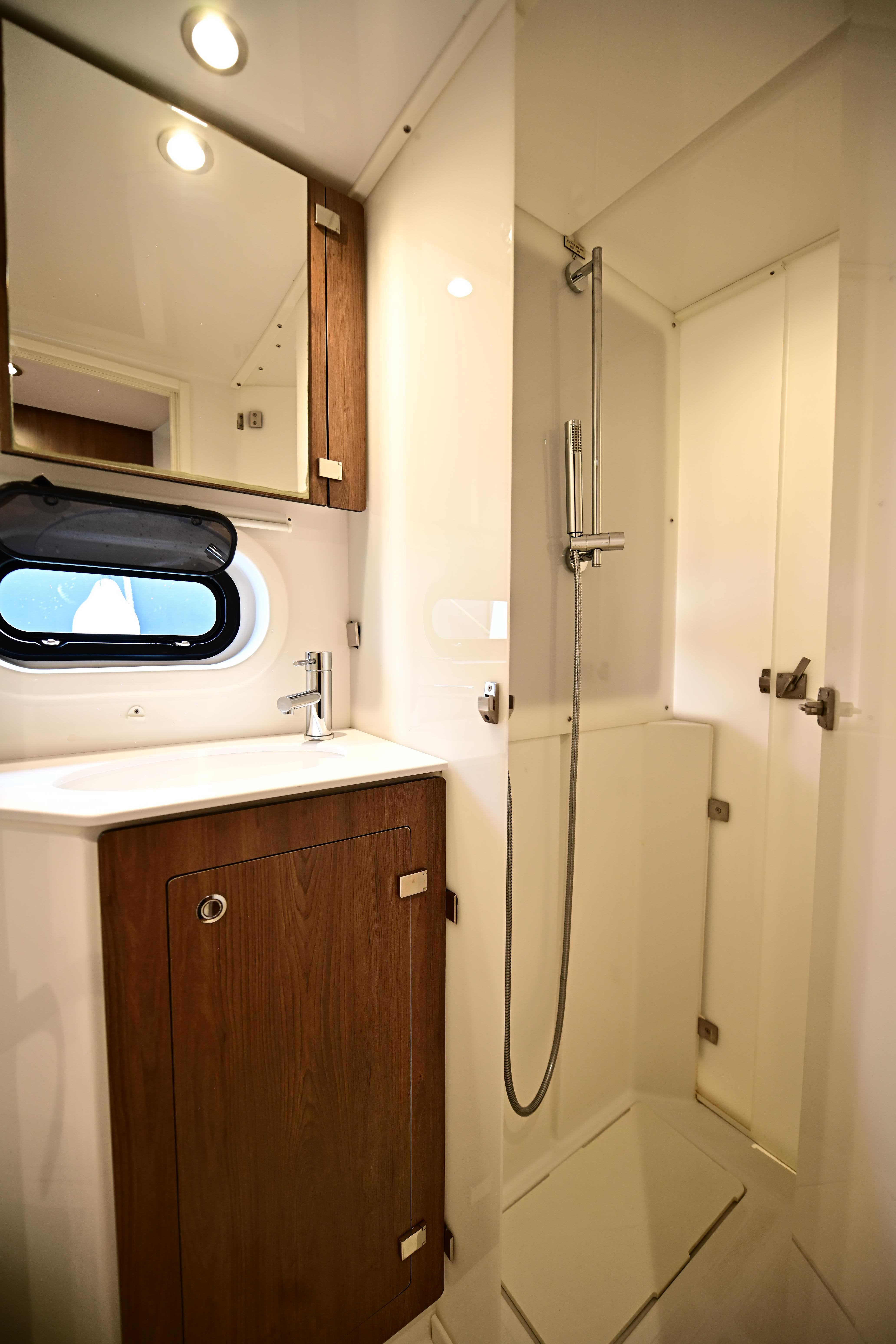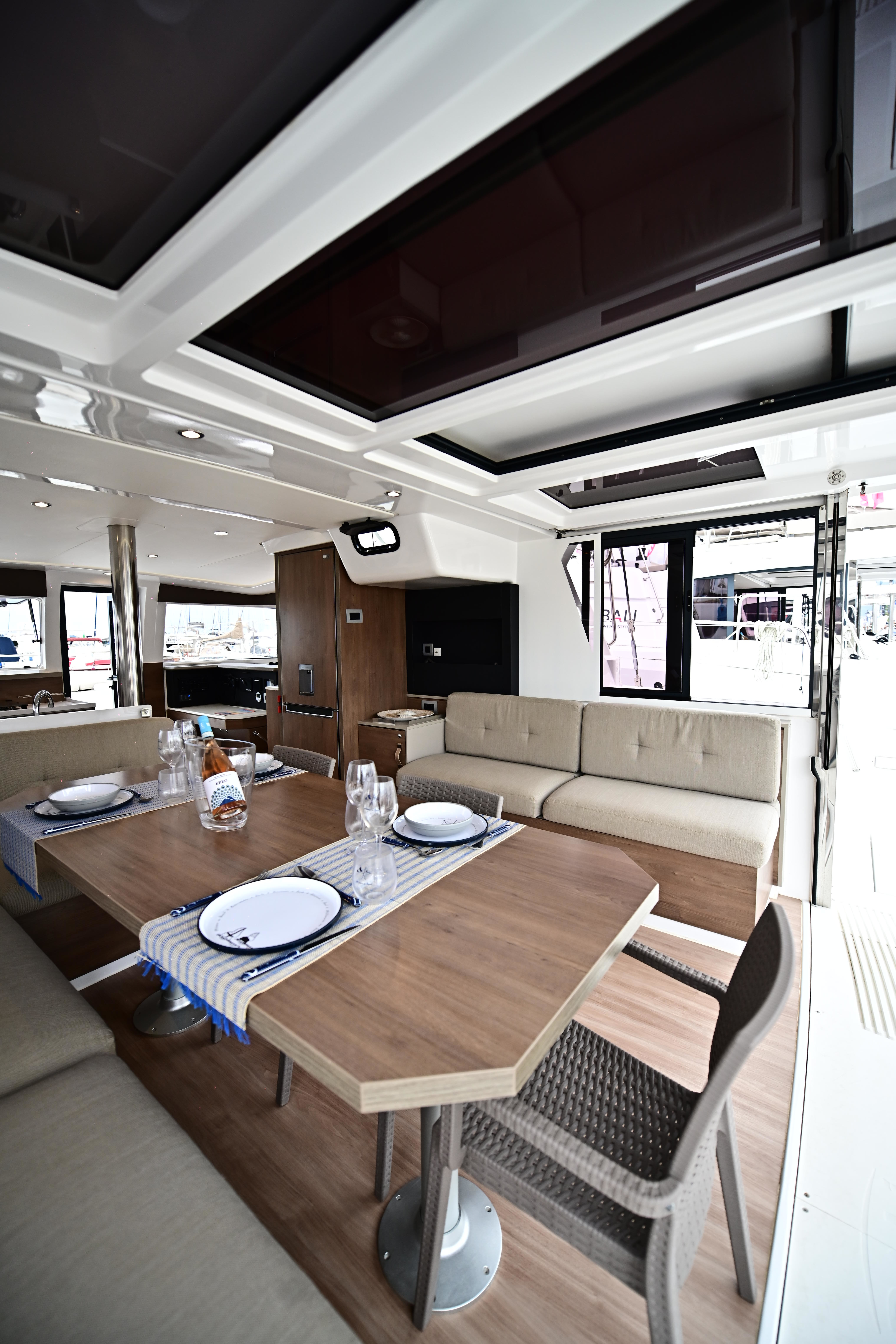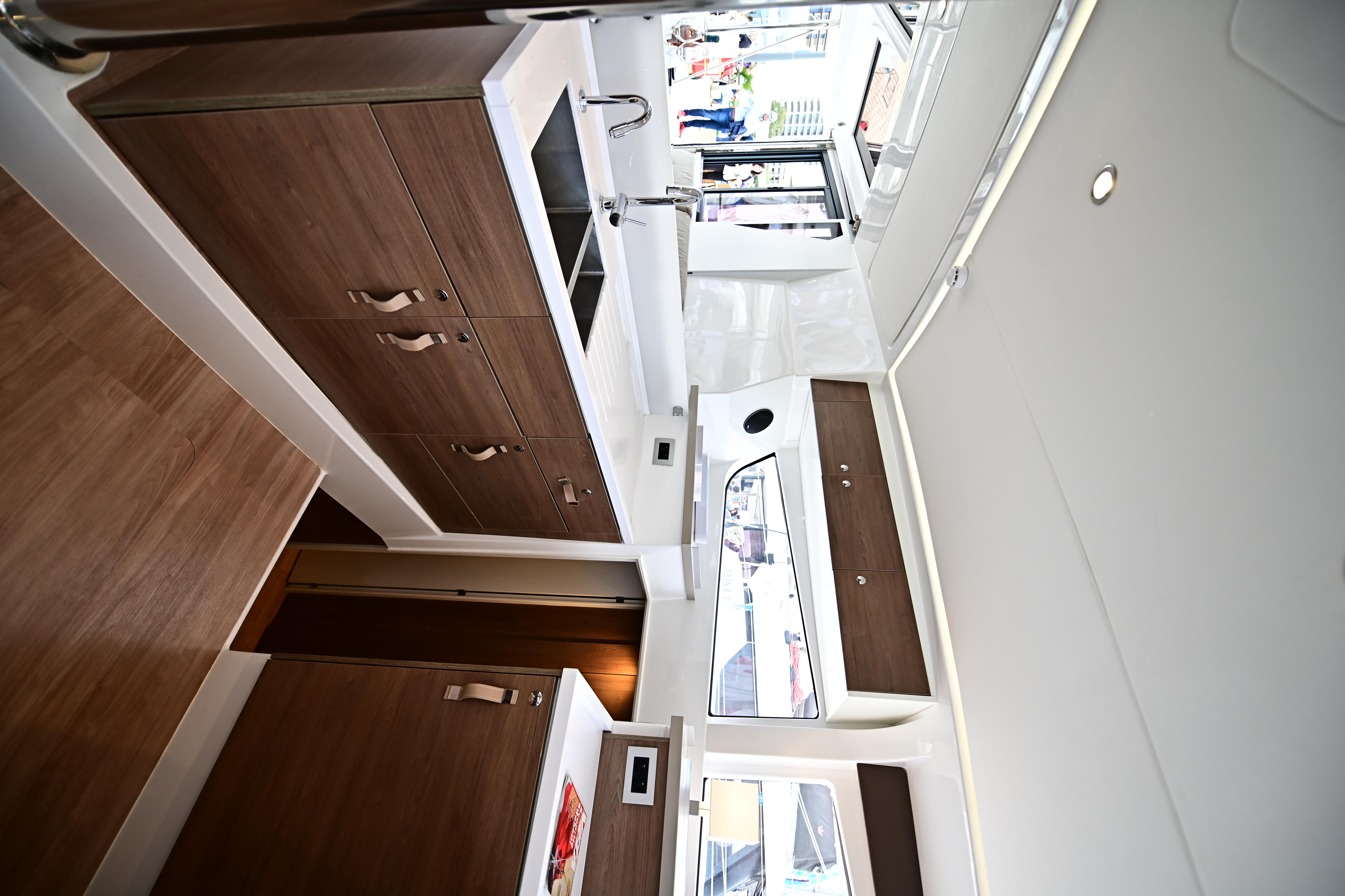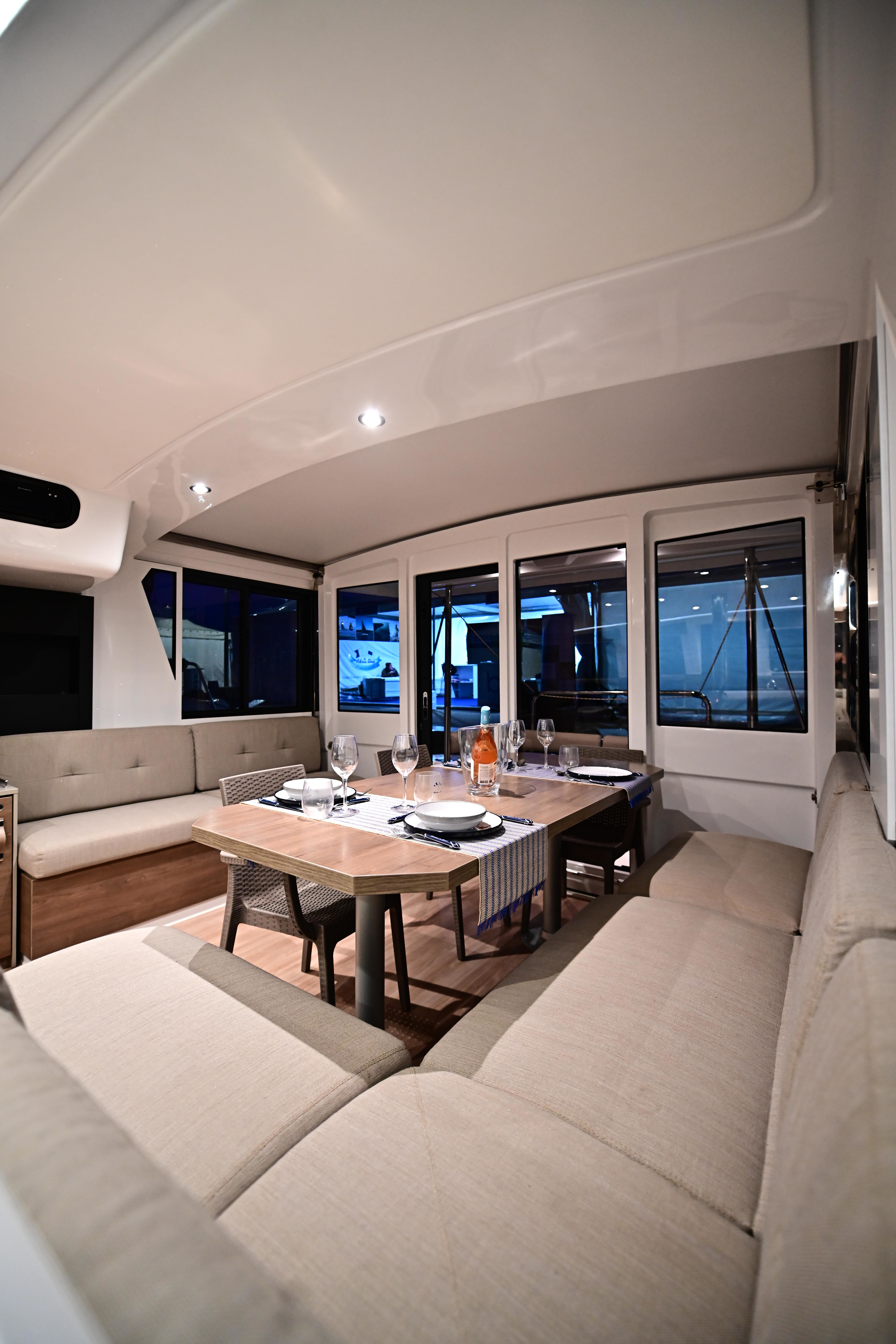 | Inside | Bluetooth Player, Gasherd mit Backofen, Gefrierschrank, Generator, Inverter 12V/220V, Klimaanlage (ohne Landstrombedarf), Kühlschrank, Mikrowelle, Salontisch absenkbar, Ventilatoren in Kabinen, Watermaker, WC (elektr.) |