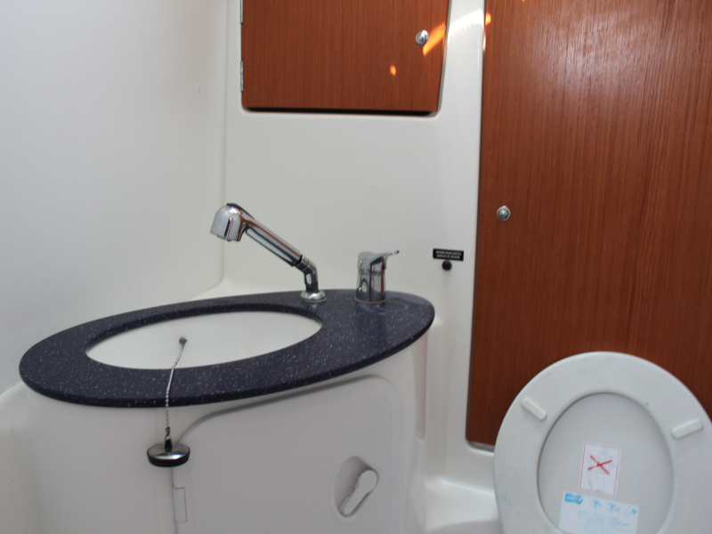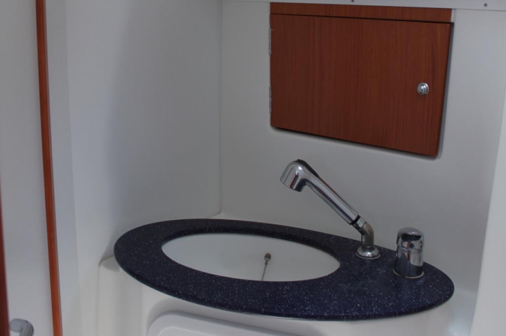 | Outside | Anker mit Kette, Badeleiter, Biminitop, Cockpitdusche, Cockpitlautsprecher, Cockpittisch, Deckbürste, elektr. Ankerwinsch, Fender, Festmacherleinen, Gangway, Kunststoff-Eimer (Pütz), Sprayhood, Treibanker, Wasserschlauch, Windex, Winschen |