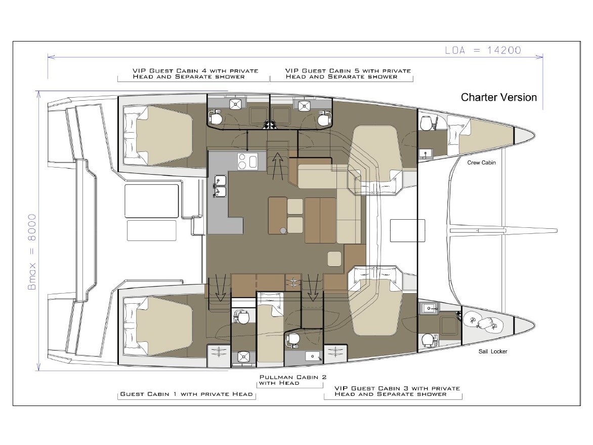 | Kabinen: | 5+1 | Kojen: | 10+2 |
