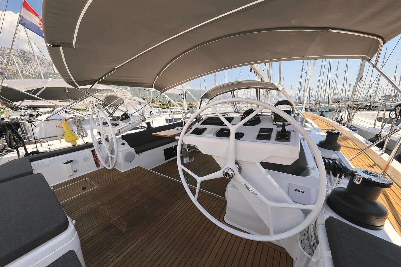 | Outside | Badeplattform, Biminitop, Cockpitlautsprecher, Cockpitpolster, Cockpittisch, Deckpolster, elektr. Ankerwinsch, Grill, Sprayhood |
