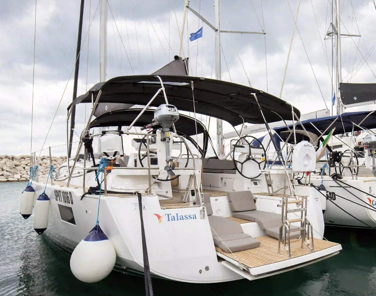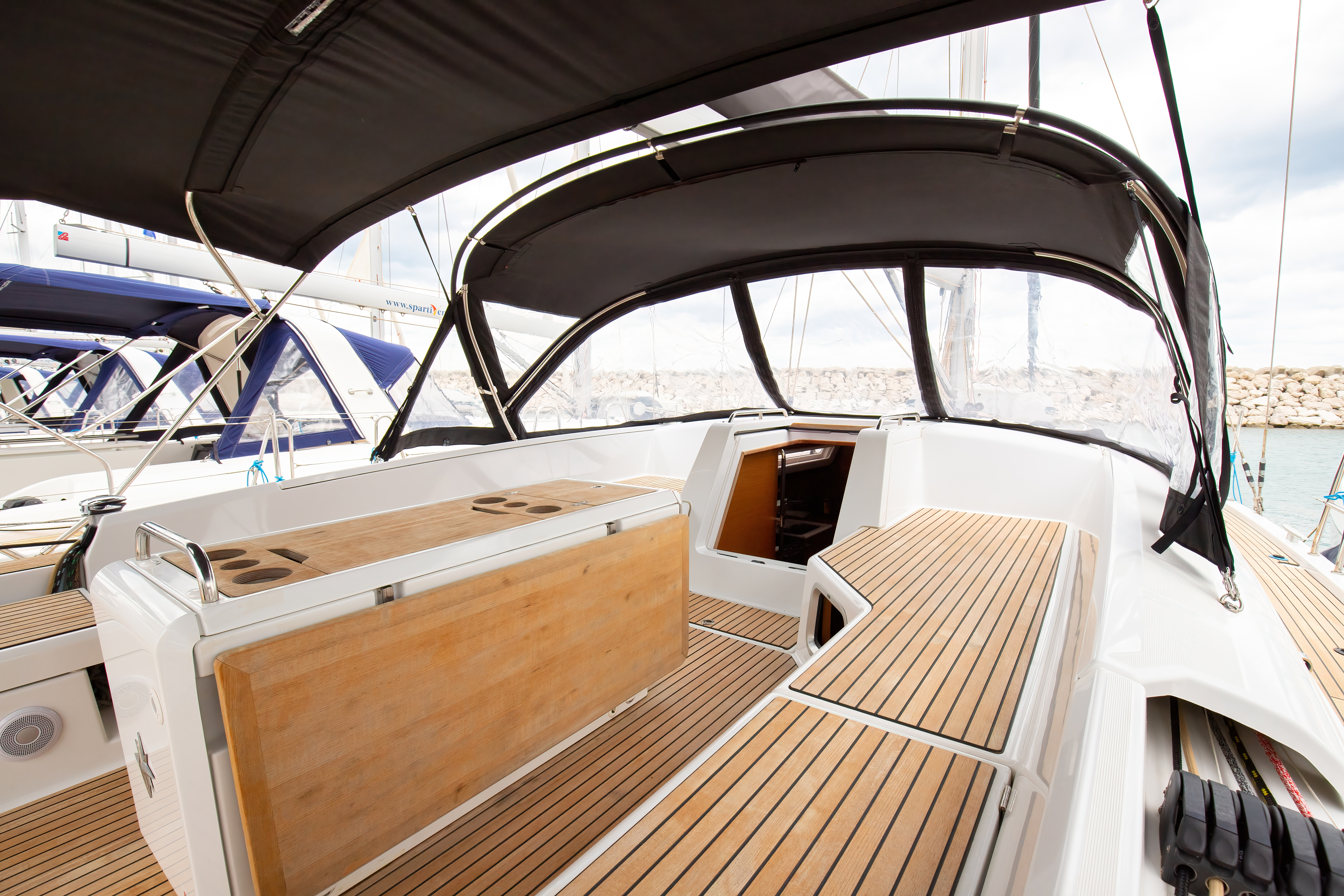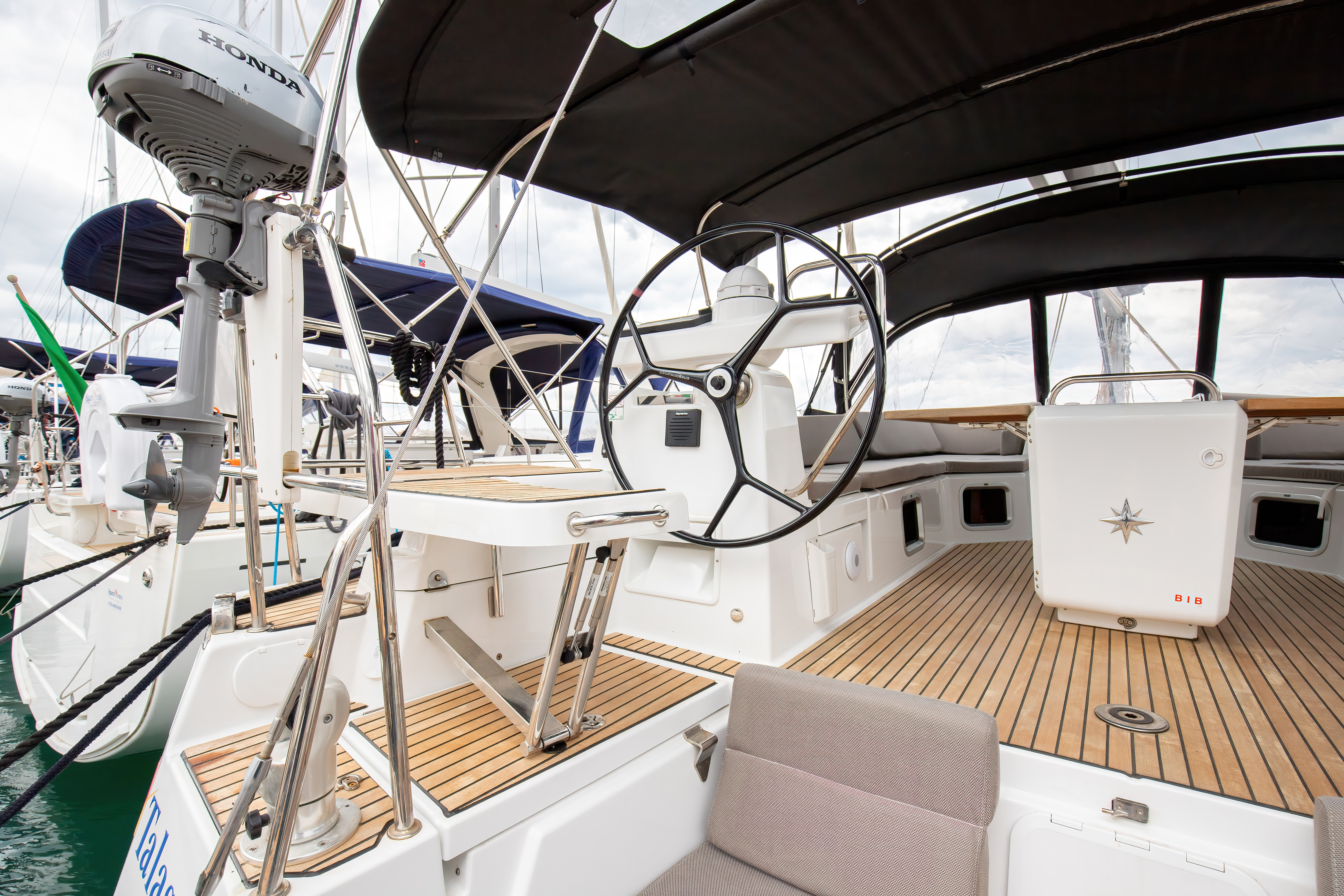 | Outside | Anker mit Kette, Cockpitdusche, Cockpitkühlschrank, Cockpitpolster, elektr. Genuawinsch, elektr. Winsch, Gangway, Teakdeck |