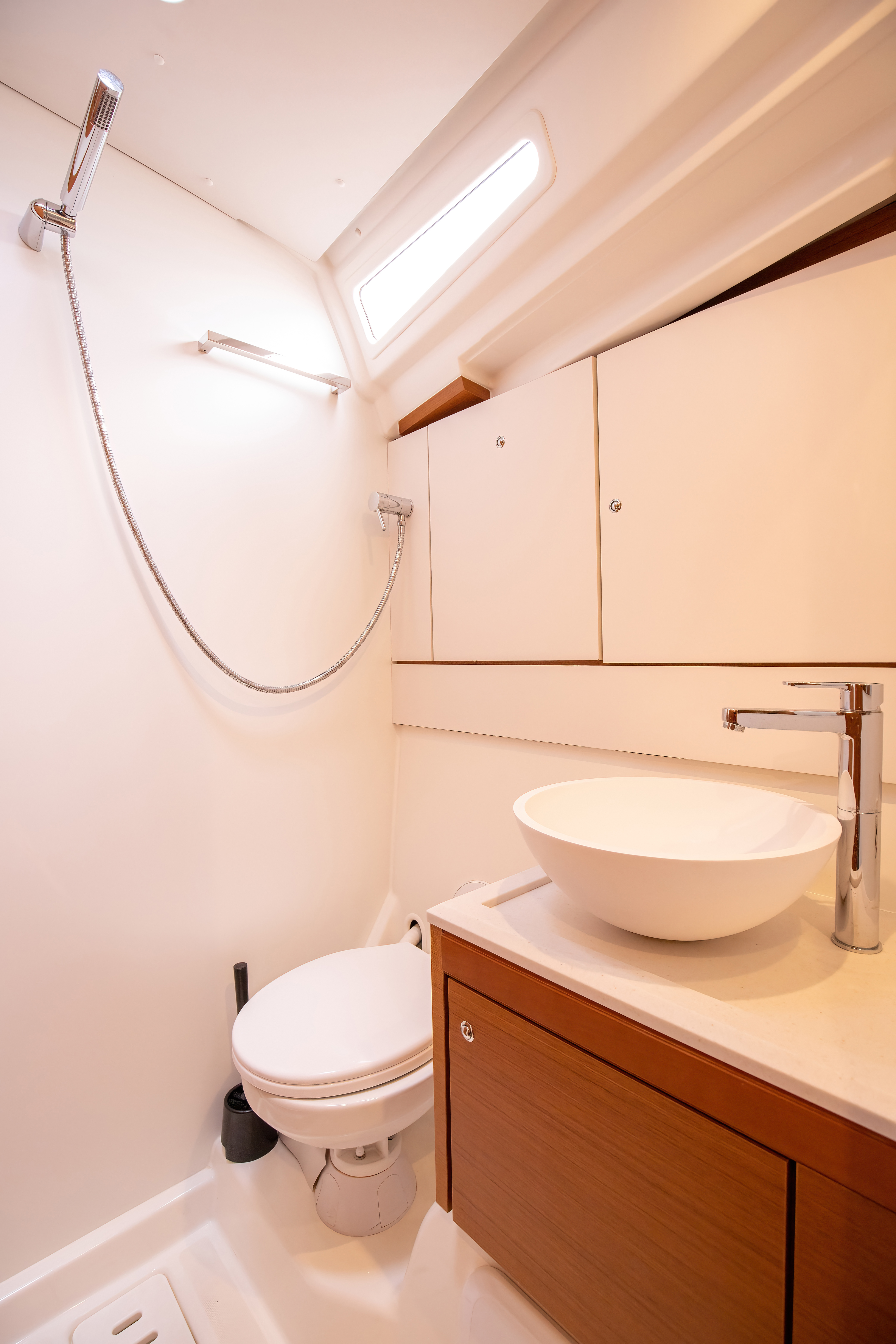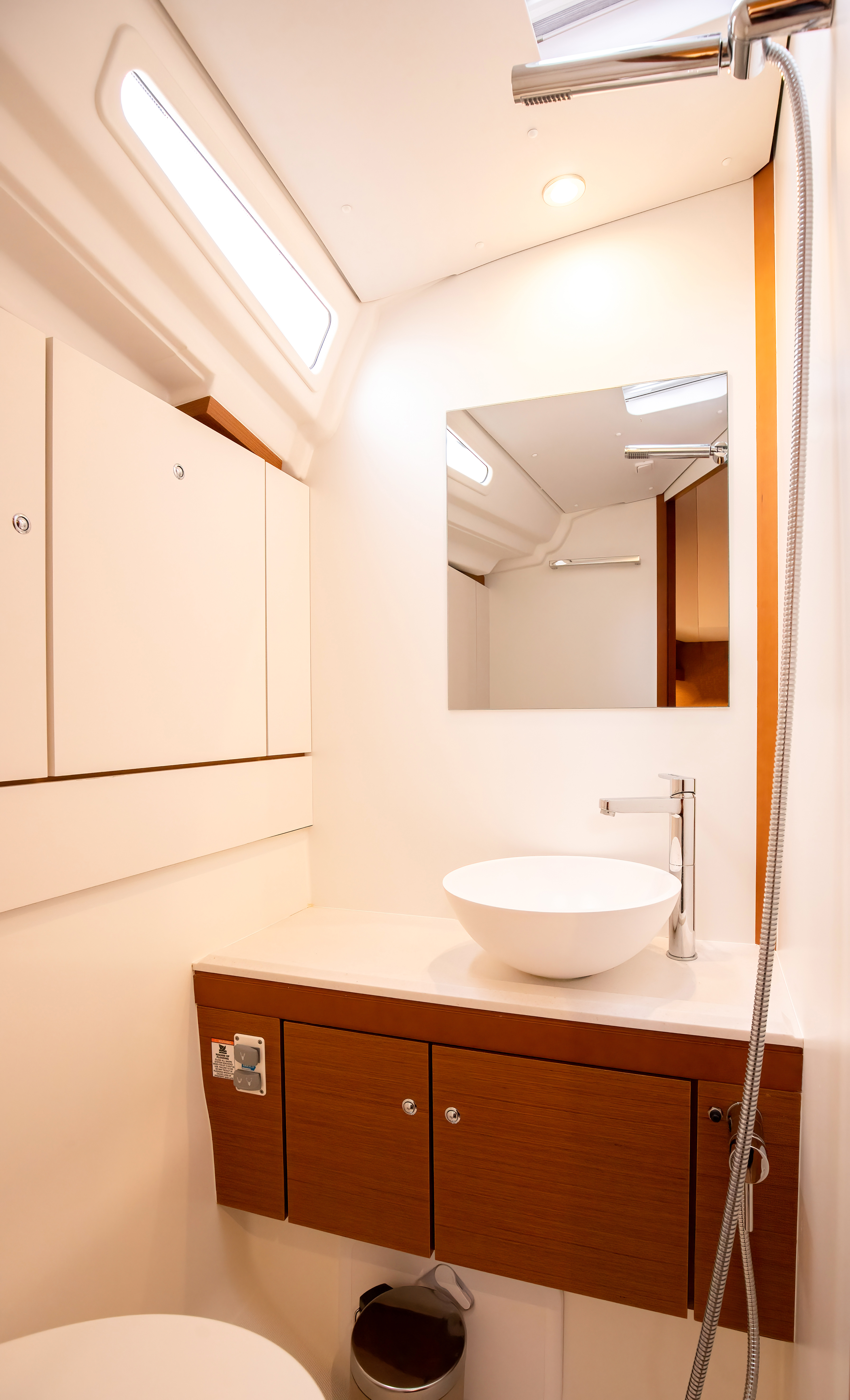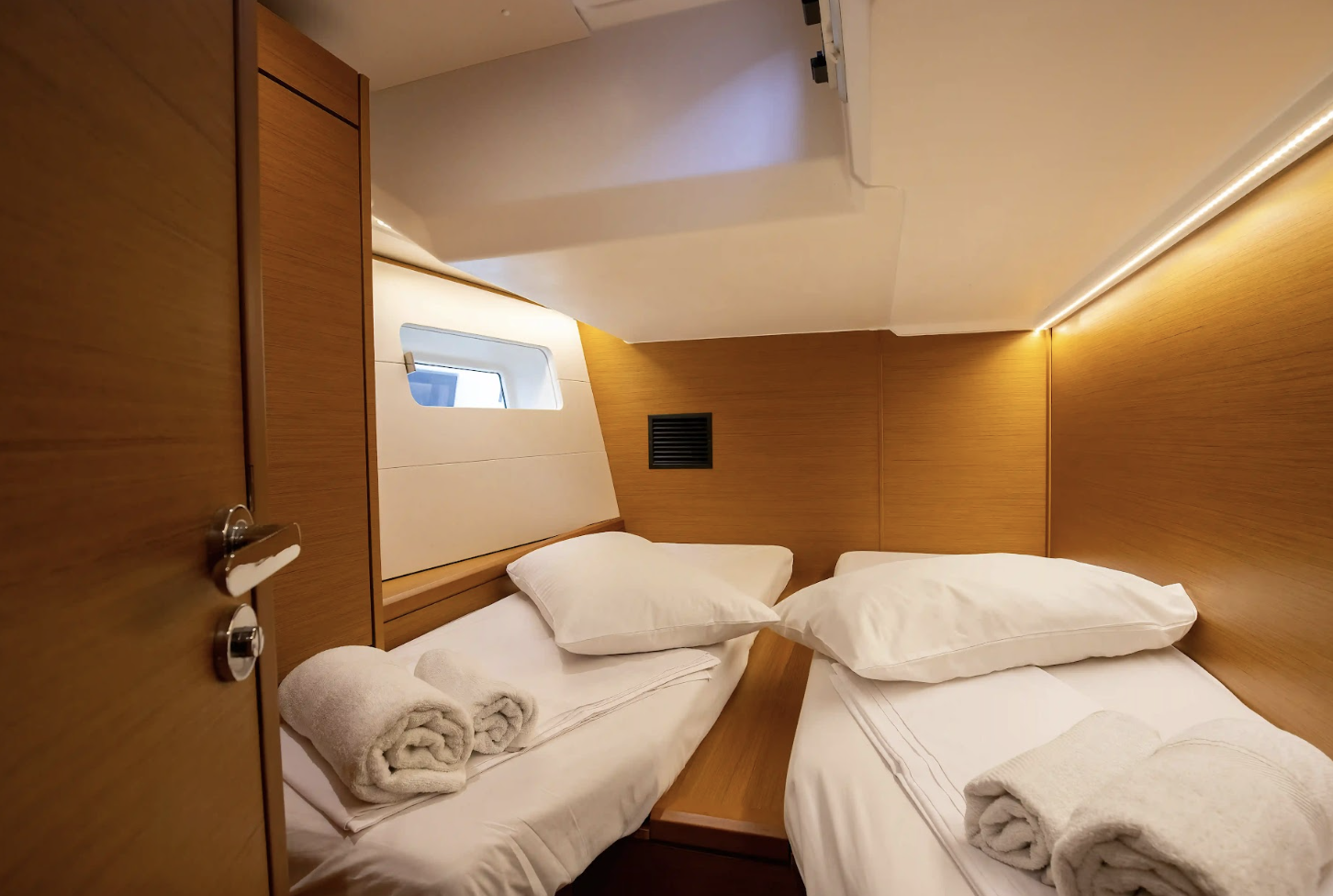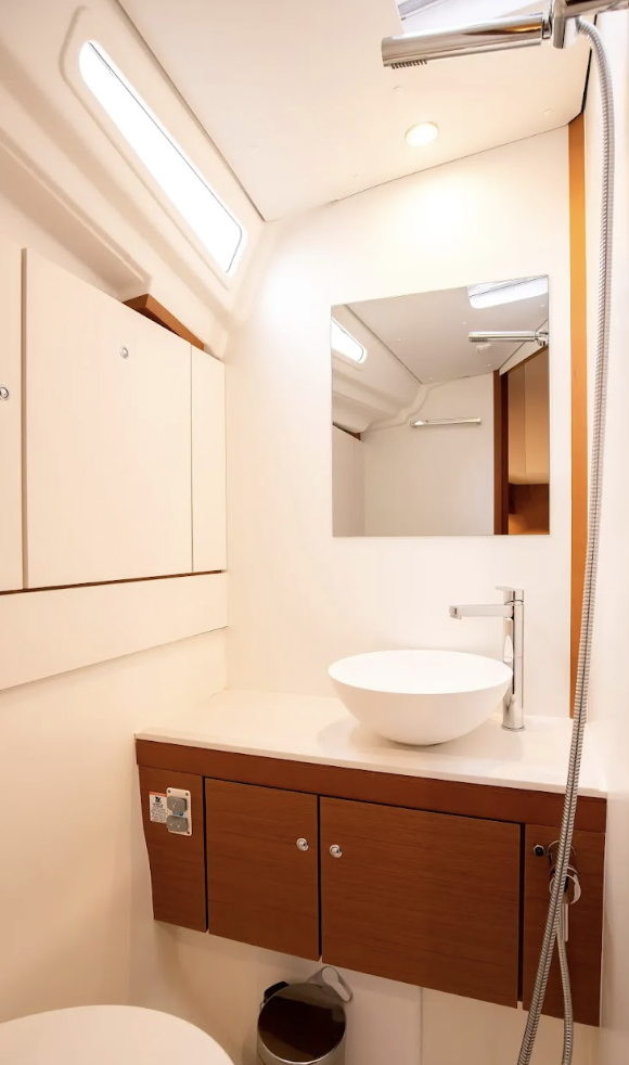 | Inside | Gasherd mit Backofen, Generator, Geschirrspüler, Hi-Fi System, Inverter 12V/220V, Kaffeemaschine, Klimaanlage (ohne Landstrombedarf), Kühlschrank, Landstromkabel, Luftpumpe für Beiboot, USB Steckdosen in den Kabinen |
