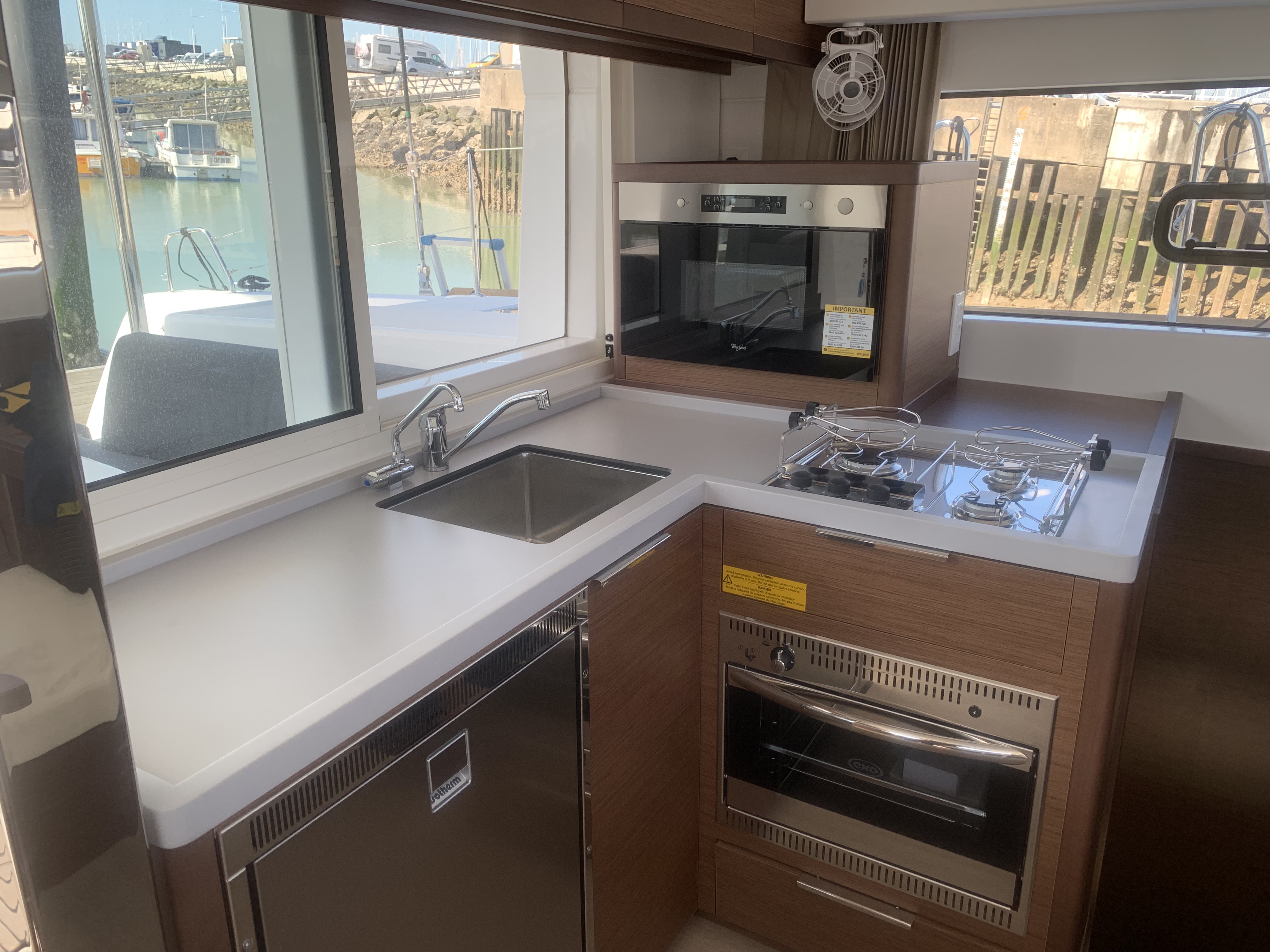 | Inside | Gasherd mit Backofen, Inverter 12V/220V, Kaffeemaschine, Kühlschrank, Landstromkabel, Luftpumpe für Beiboot, Mikrowelle, USB Steckdosen in den Kabinen, Warmwasser, WC (elektr.) |