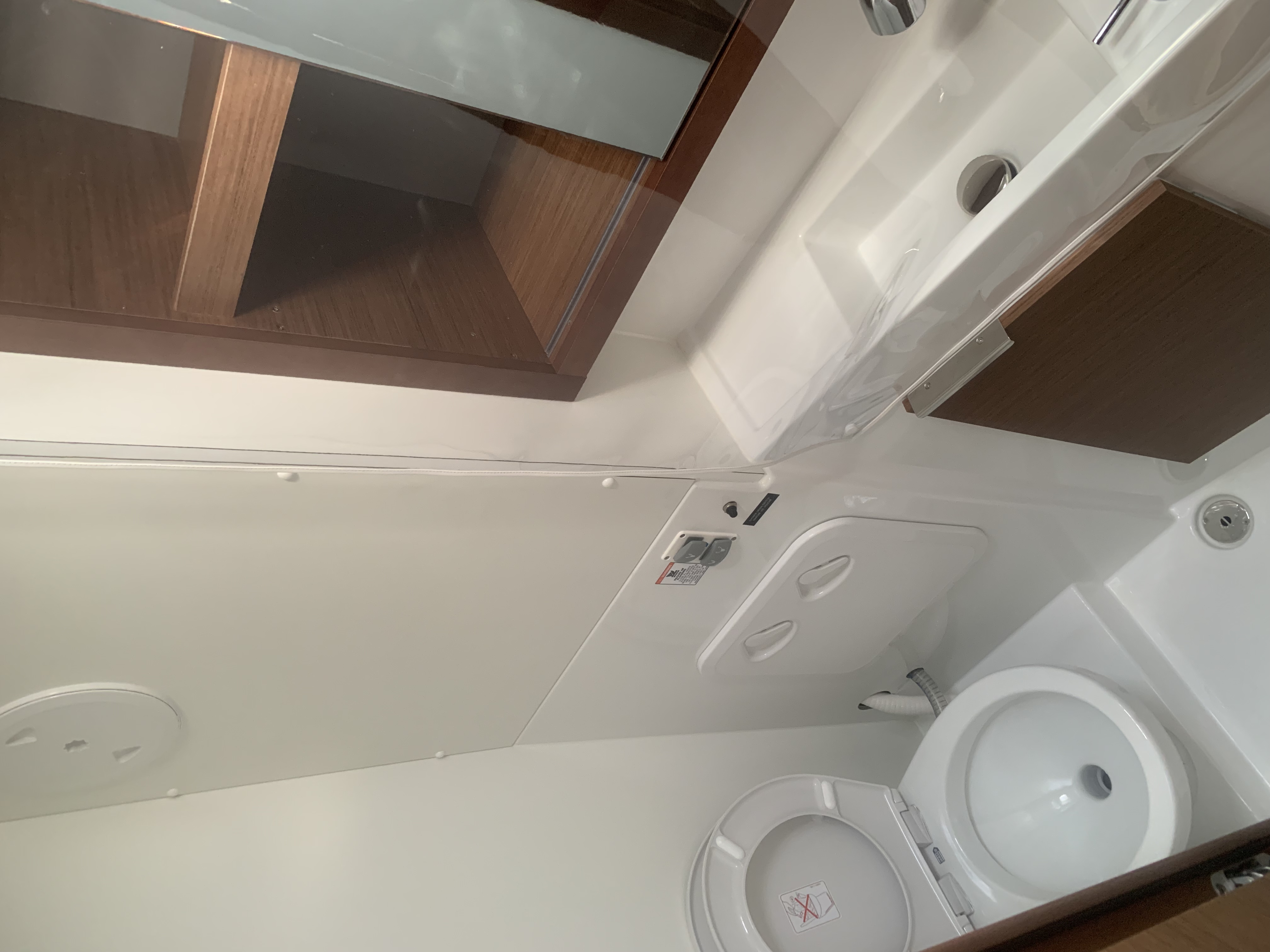 | Outside | 220 V-Landanschluss, Anker mit Kette, Cockpitdusche, Cockpitlautsprecher, Cockpitpolster, elektr. Ankerwinsch, elektr. Winsch, Gangway, Teak im Cockpit |