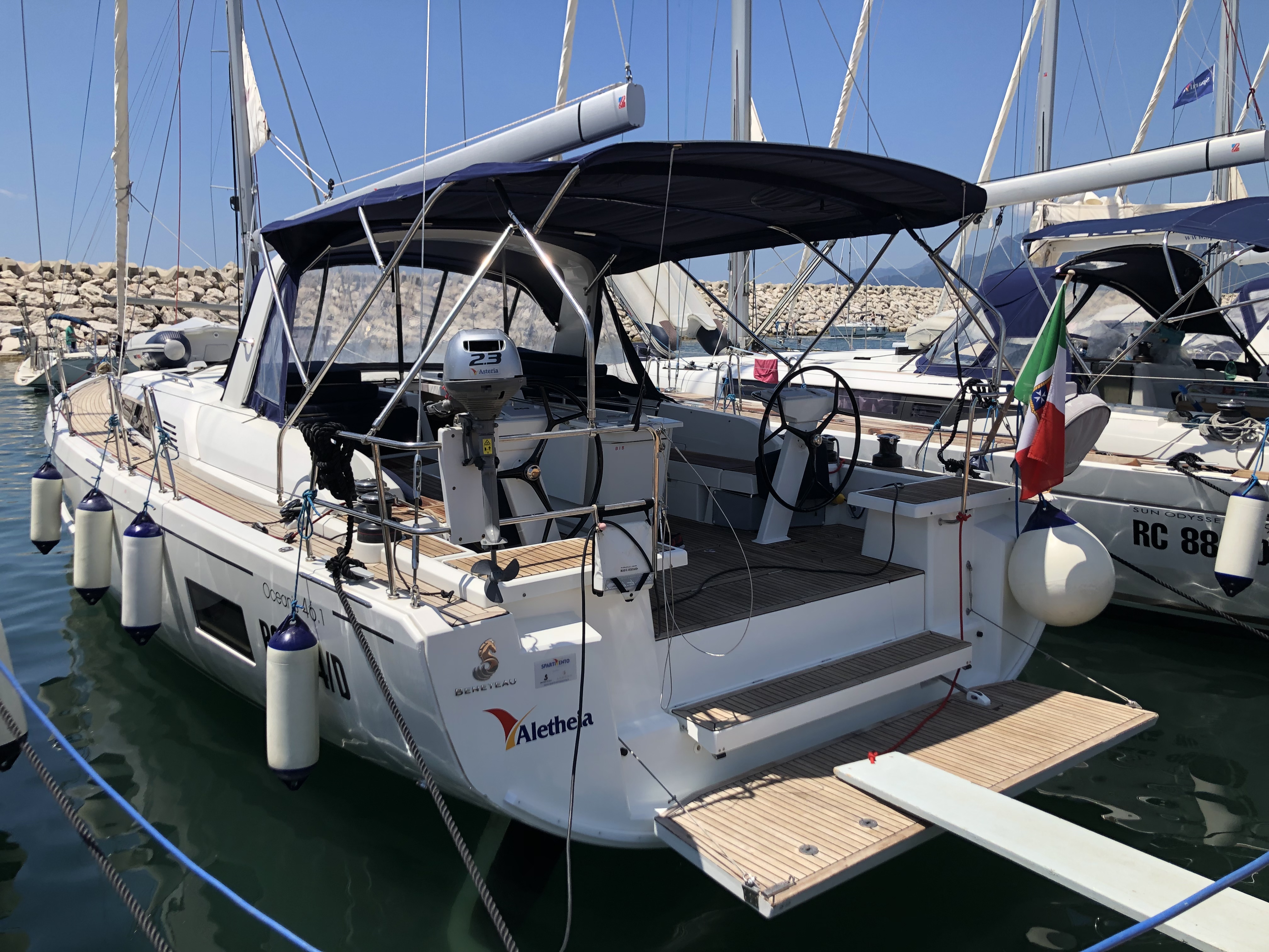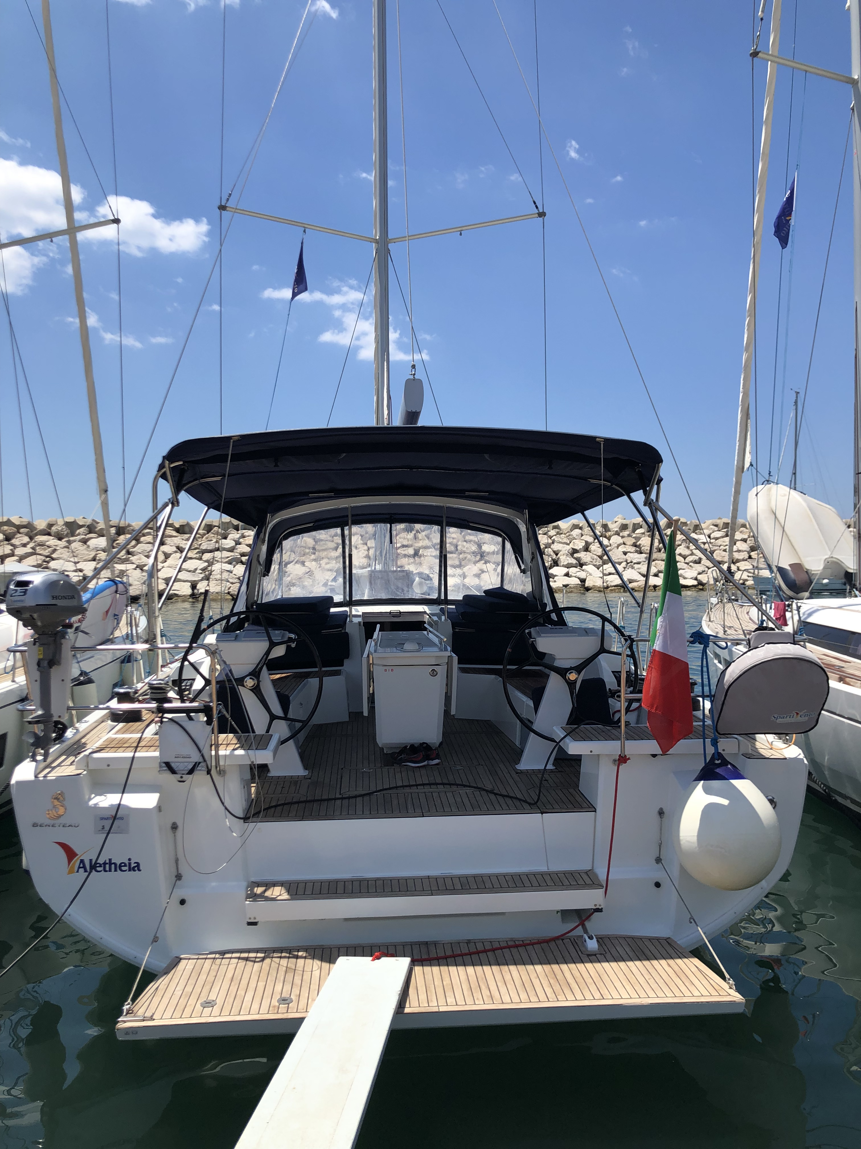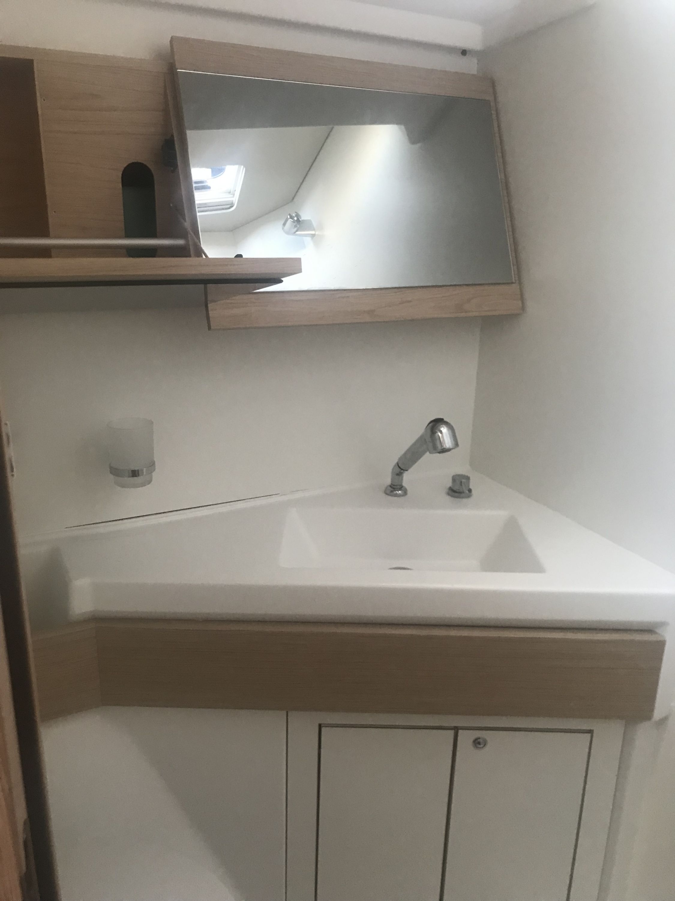 | Outside | 220 V-Landanschluss, Anker mit Kette, Badeplattform, Biminitop, Cockpitdusche, Cockpitkühlschrank, Cockpitlautsprecher, Cockpitpolster, elektr. Ankerwinsch, elektr. Winsch, Gangway, Sprayhood, Teakdeck |